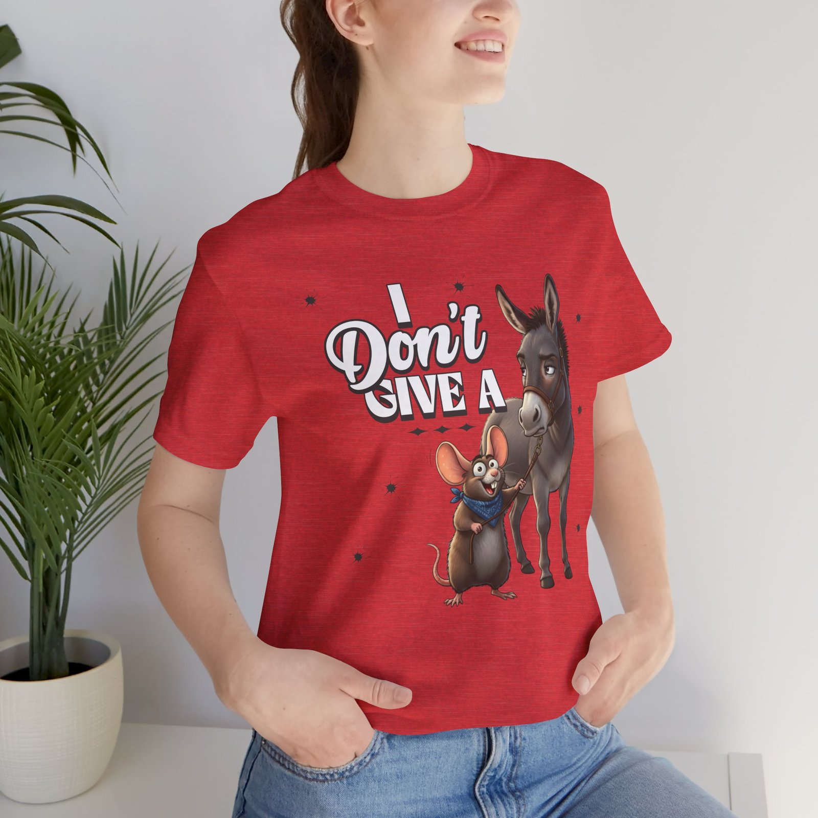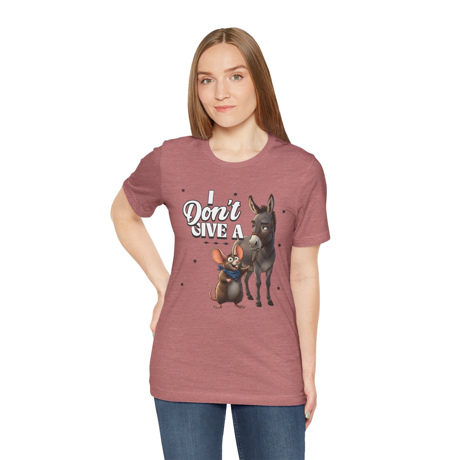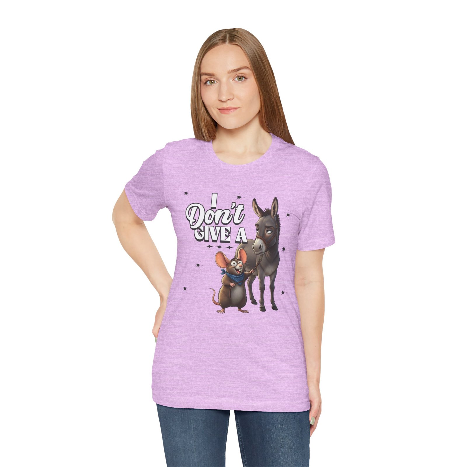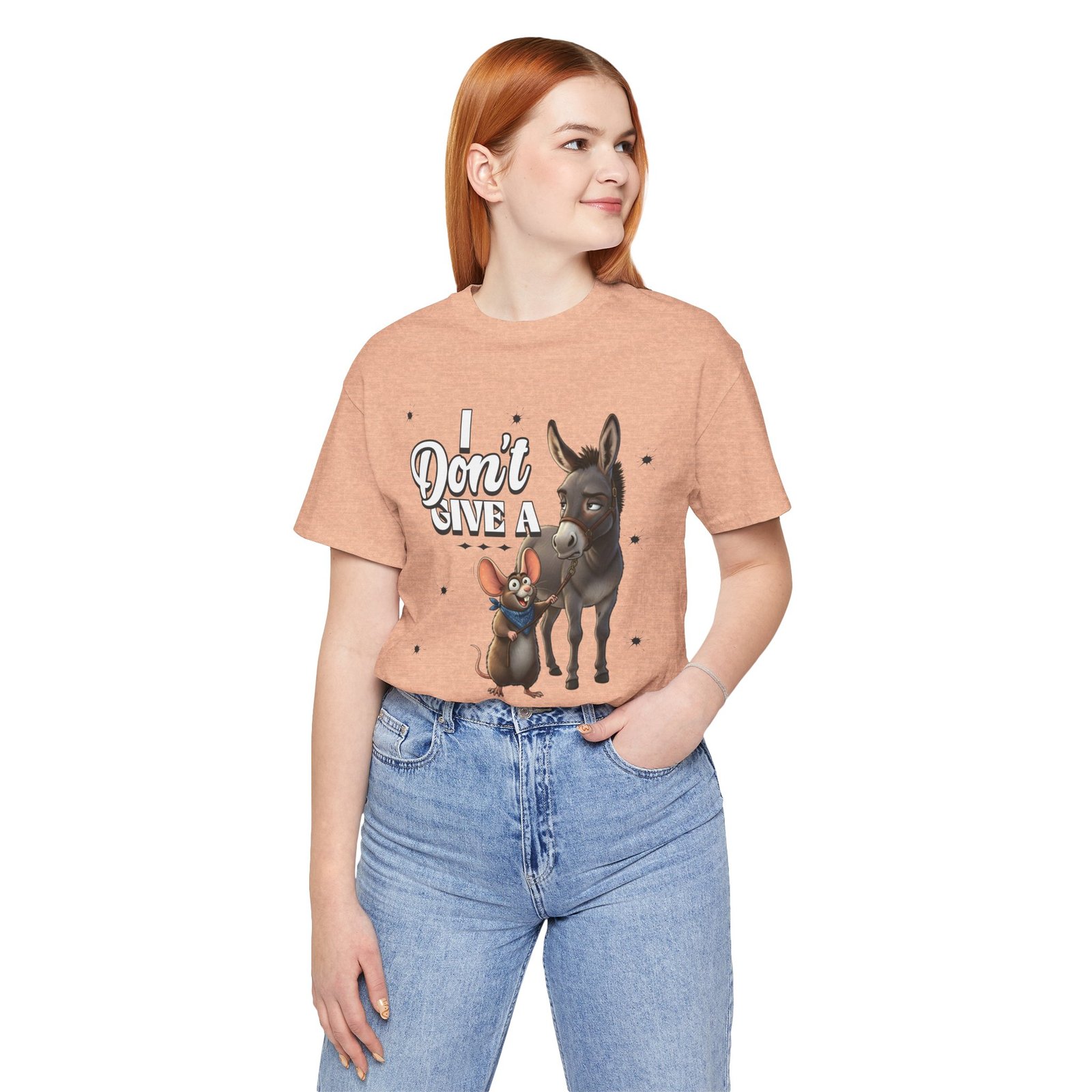 This Tee showcases a hilarious and charming graphic of a rat walking a donkey, perfect for animal lovers and those with a sense of humor. It offers a soft and comfortable fit, making it ideal for farm visits, pet errands, or casual wear. Relevant for animal lovers, farm enthusiasts, and those who appreciate absurd humor. Perfect for casual outings, farm visits, and animal-themed occasions.