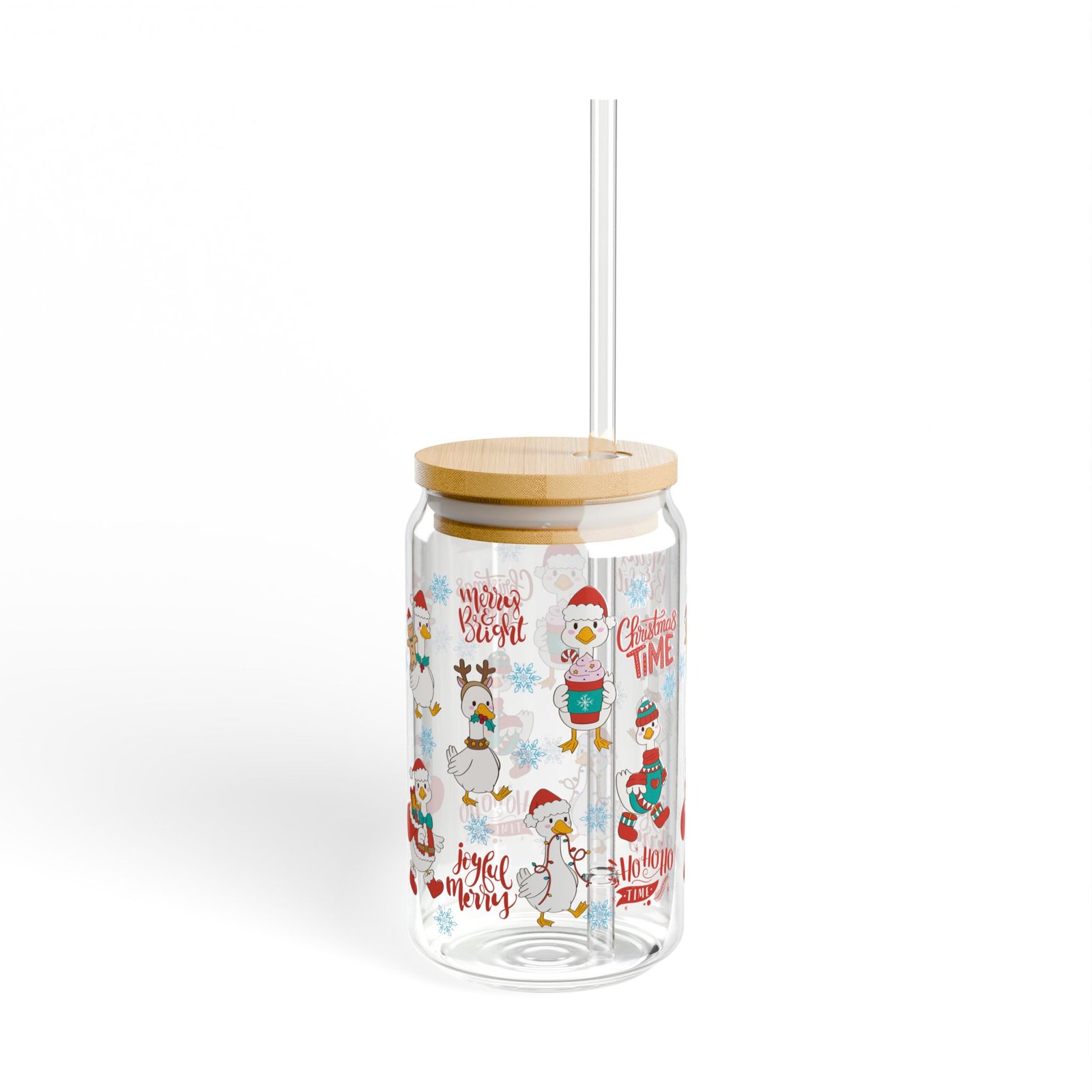 Add a touch of festive fun to your drinkware collection with this Christmas Goose Glass Tumbler. Featuring a whimsical design of geese in holiday attire, this 16oz glass tumbler is perfect for enjoying your favorite cold beverages during the holiday season. It’s a cheerful addition to your Christmas celebrations and a great gift for those who love cute and quirky holiday-themed items.
