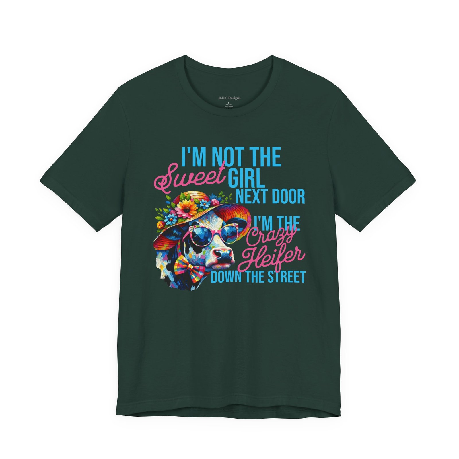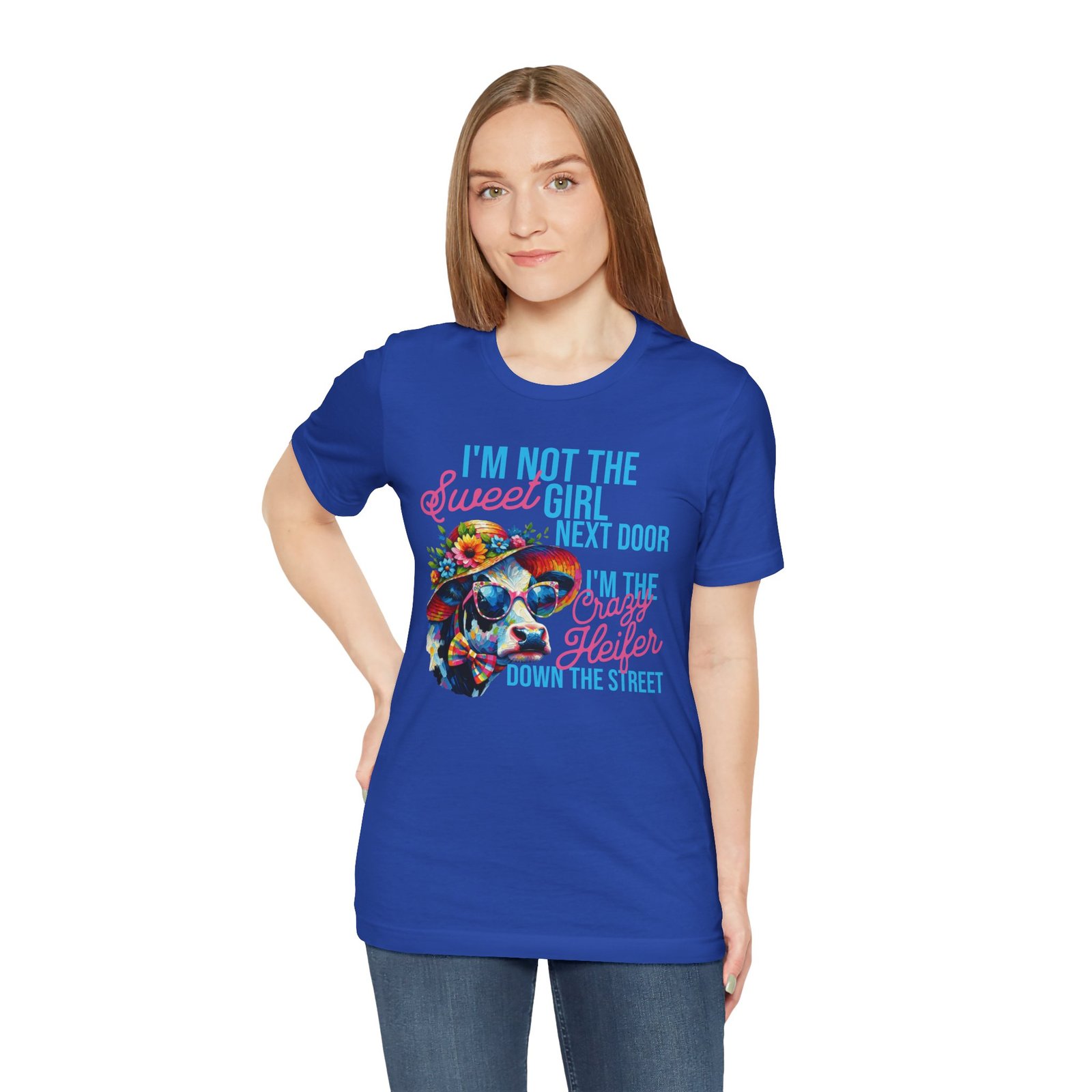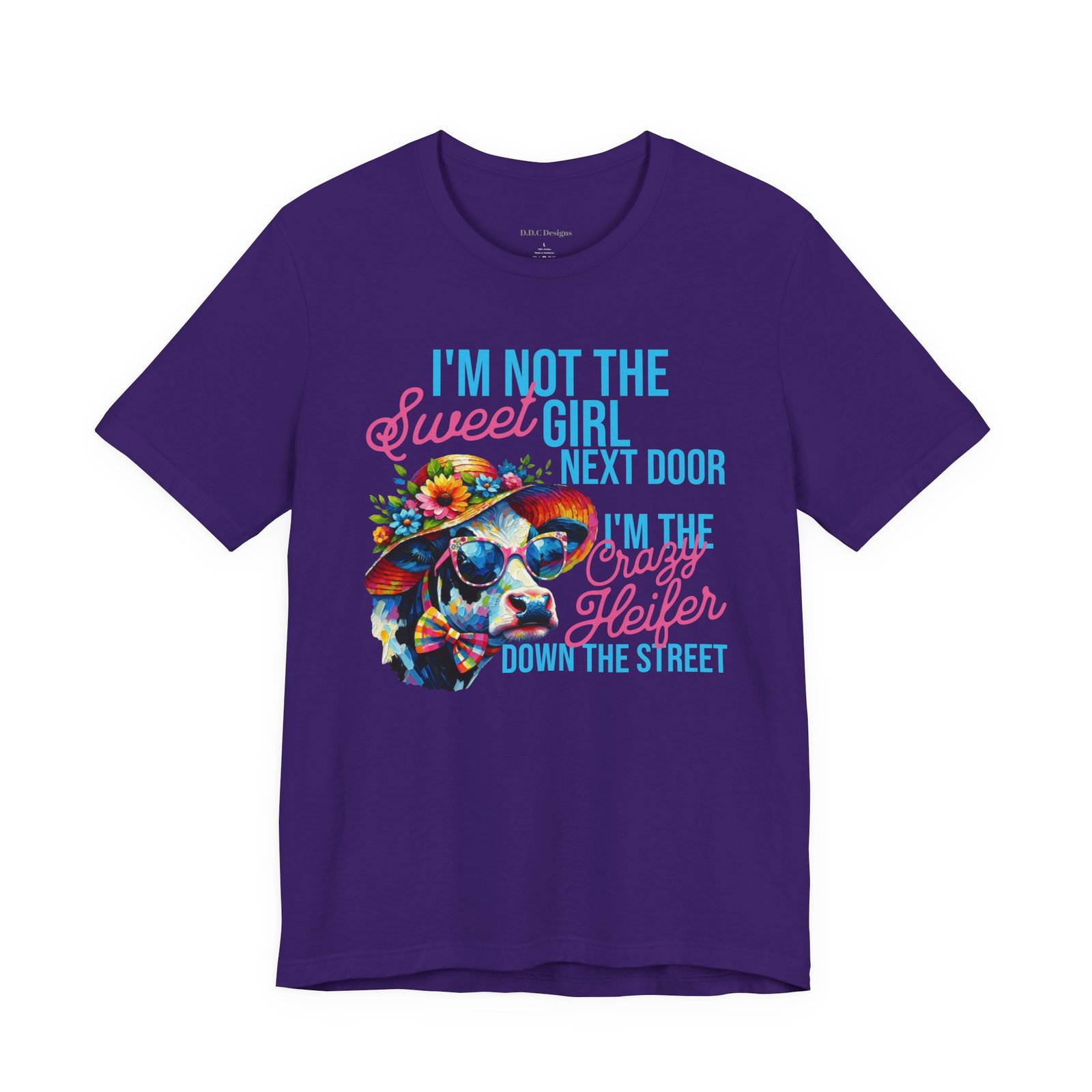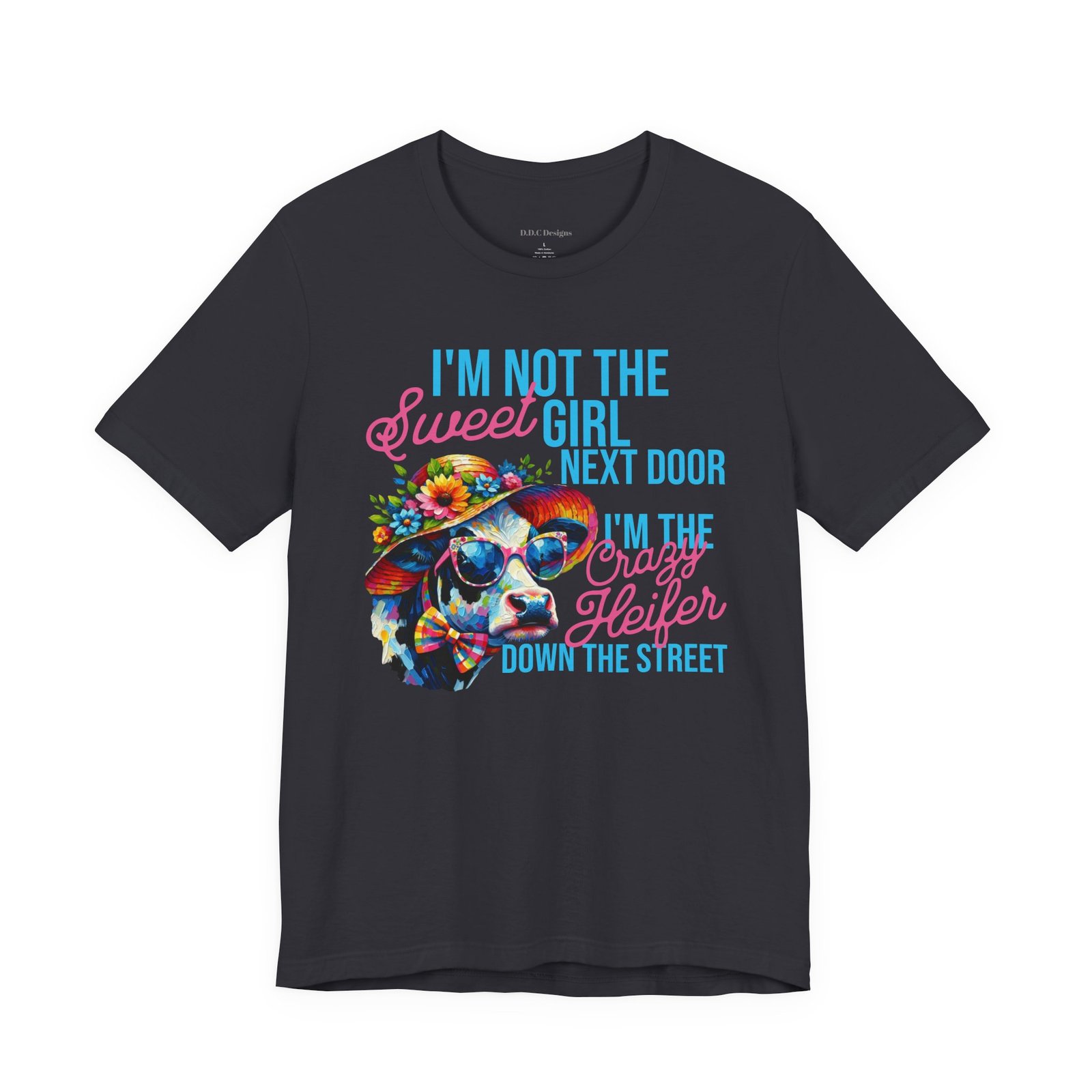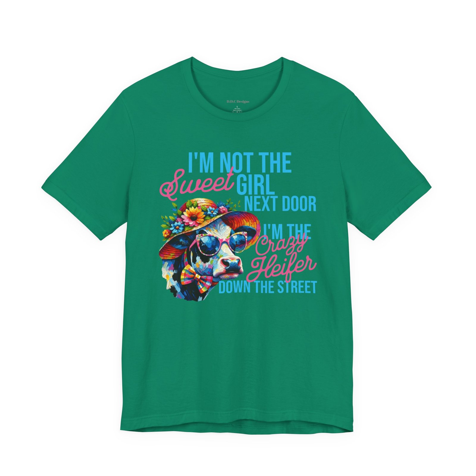 Embrace your bold, humorous, and non-traditional side with this sassy and colorful graphic tee featuring a vibrant, artistic cow wearing a sun hat, flowers, and sunglasses. Perfect for the woman who is unapologetically herself, loves farm life, or simply enjoys a good, confident laugh. This tee is ideal for casual and semi-formal settings and is made with premium quality Bella+Canvas 100% Airlume combed and ring-spun cotton.