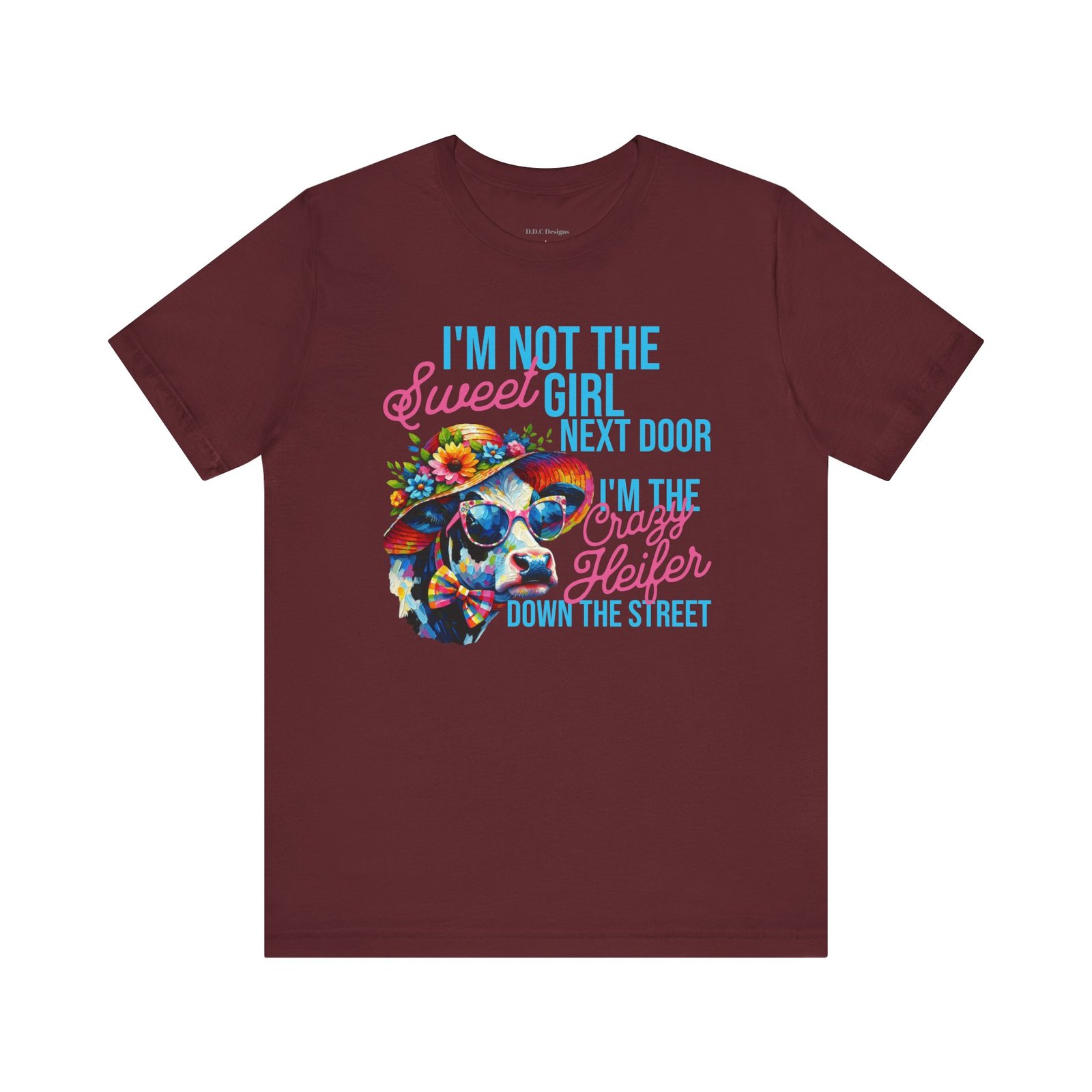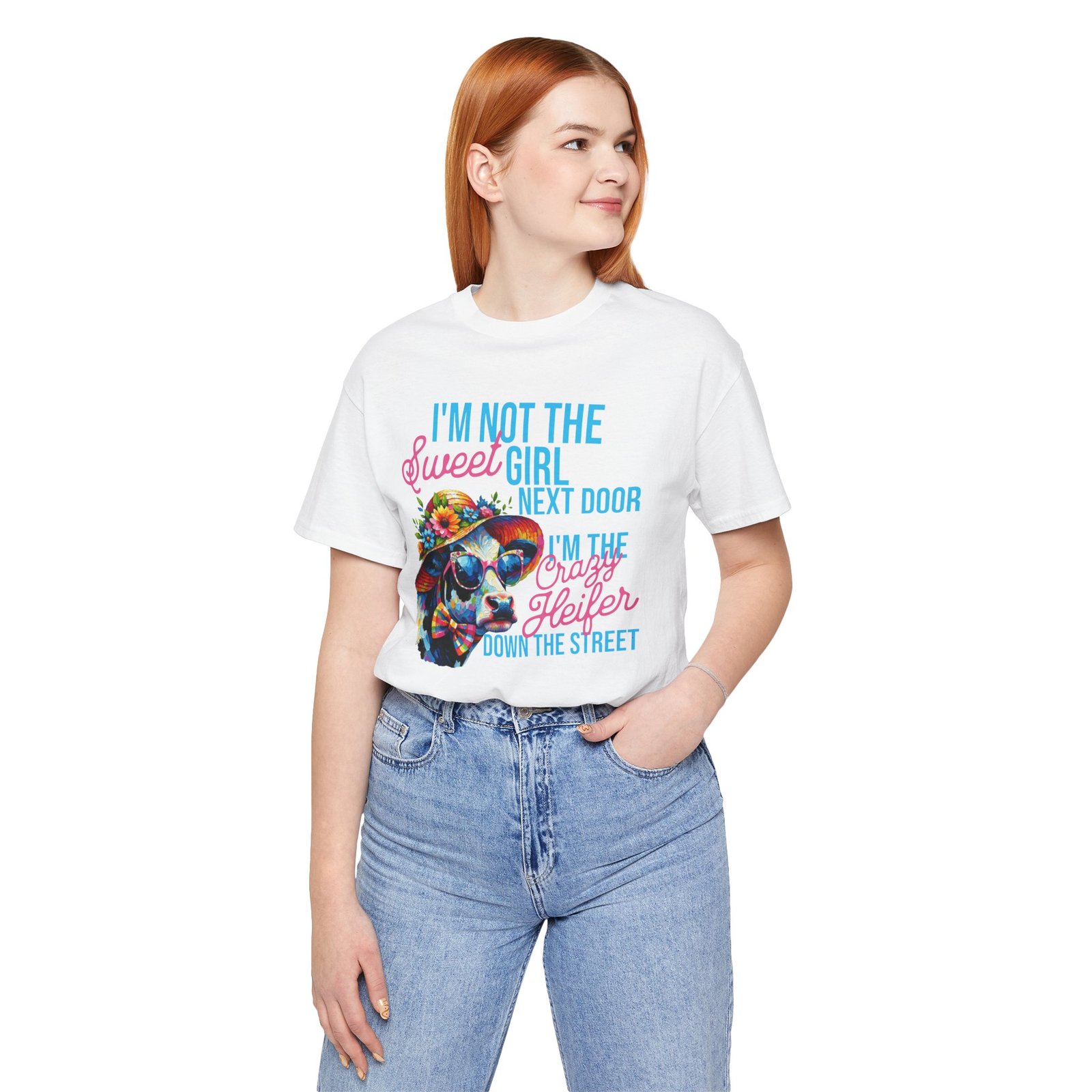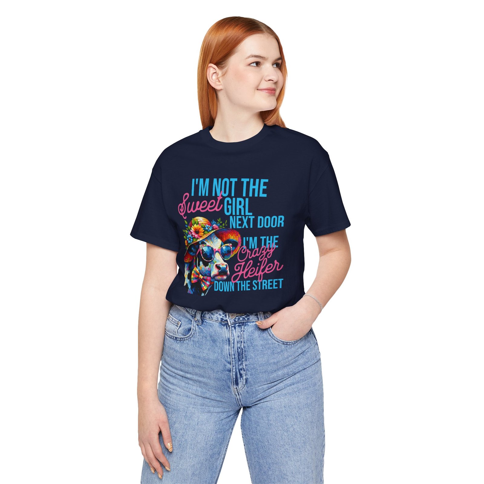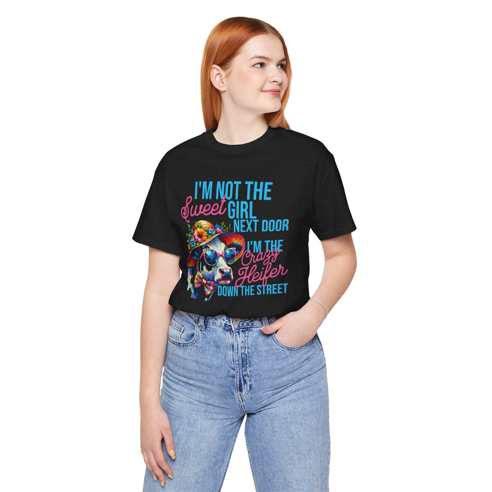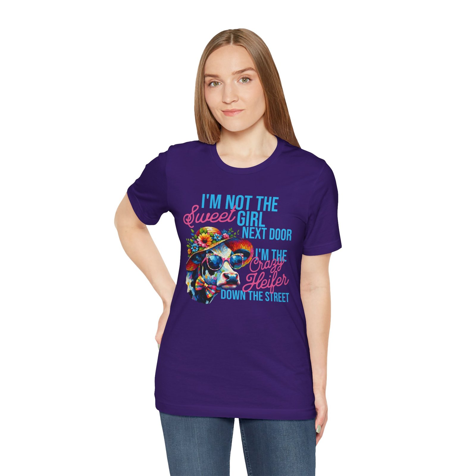 Embrace your bold, humorous, and non-traditional side with this sassy and colorful graphic tee featuring a vibrant, artistic cow wearing a sun hat, flowers, and sunglasses. Perfect for the woman who is unapologetically herself, loves farm life, or simply enjoys a good, confident laugh. This tee is ideal for casual and semi-formal settings and is made with premium quality Bella+Canvas 100% Airlume combed and ring-spun cotton.