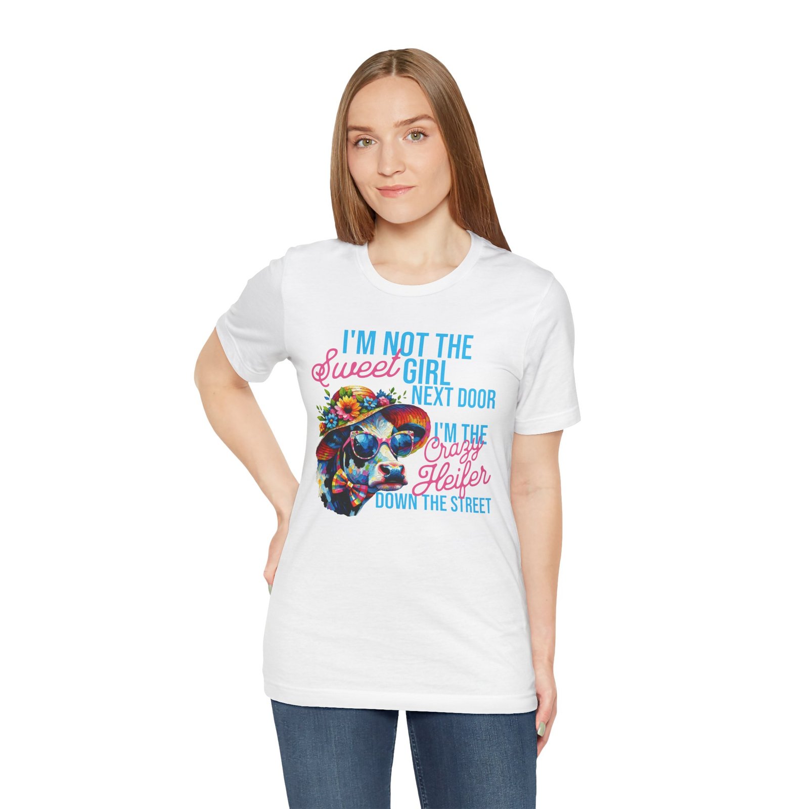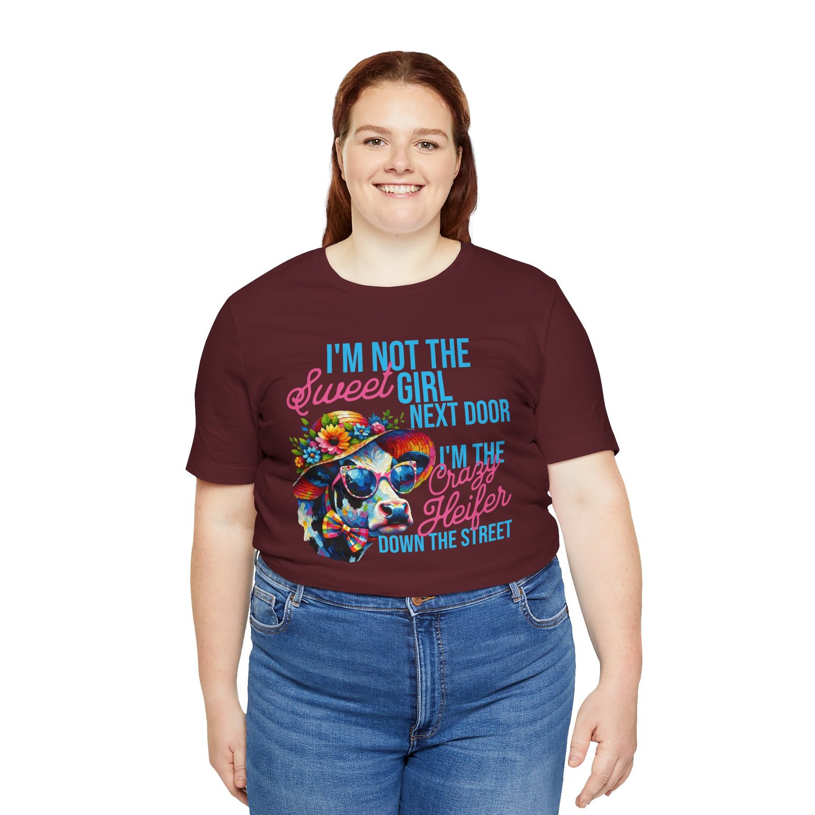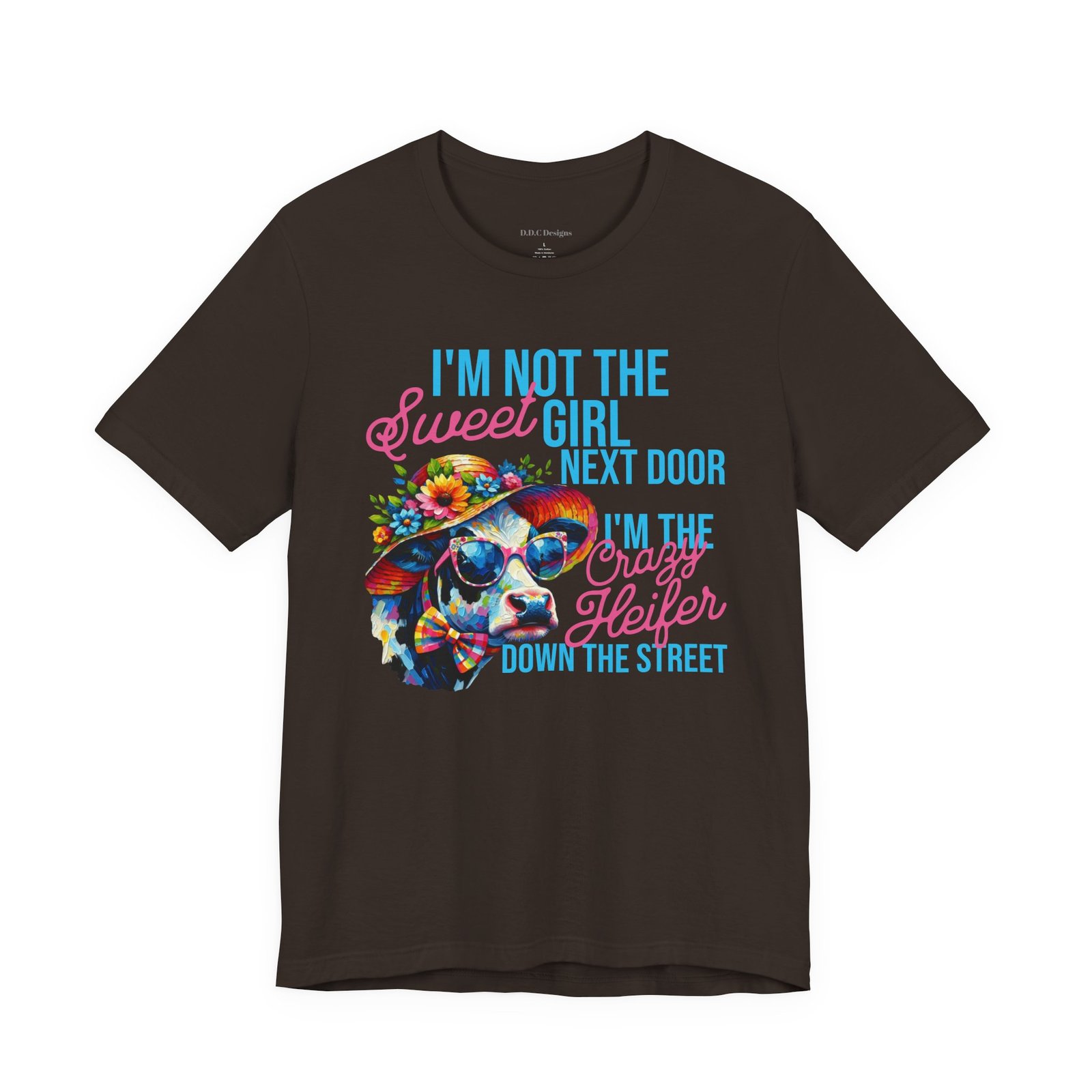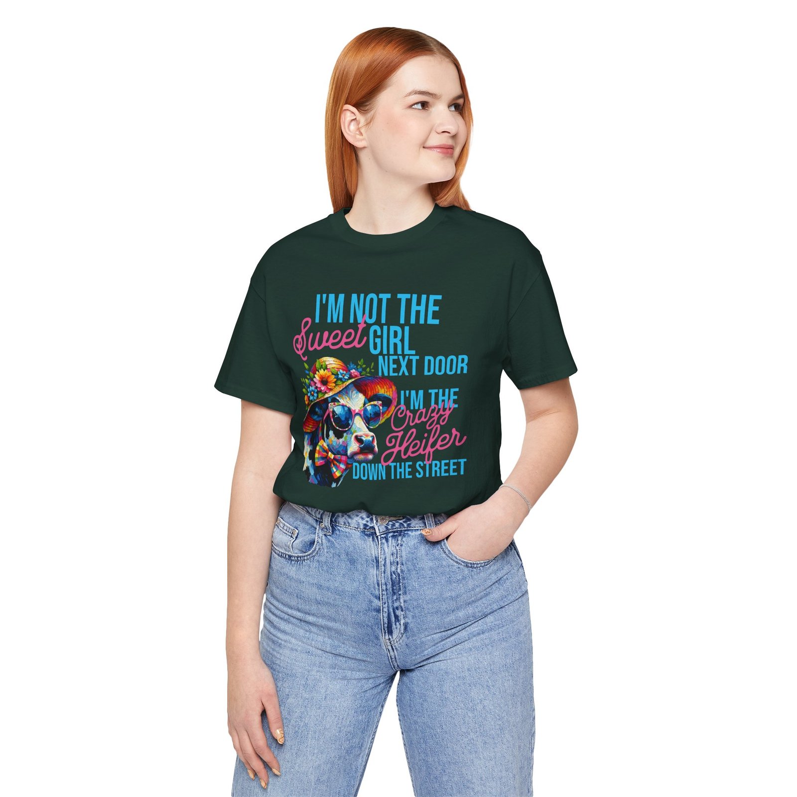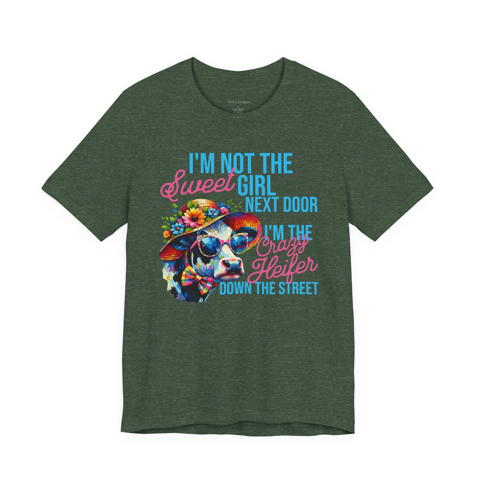 Embrace your bold, humorous, and non-traditional side with this sassy and colorful graphic tee featuring a vibrant, artistic cow wearing a sun hat, flowers, and sunglasses. Perfect for the woman who is unapologetically herself, loves farm life, or simply enjoys a good, confident laugh. This tee is ideal for casual and semi-formal settings and is made with premium quality Bella+Canvas 100% Airlume combed and ring-spun cotton.
