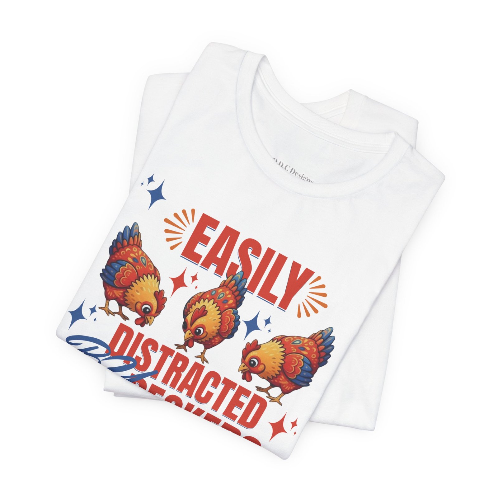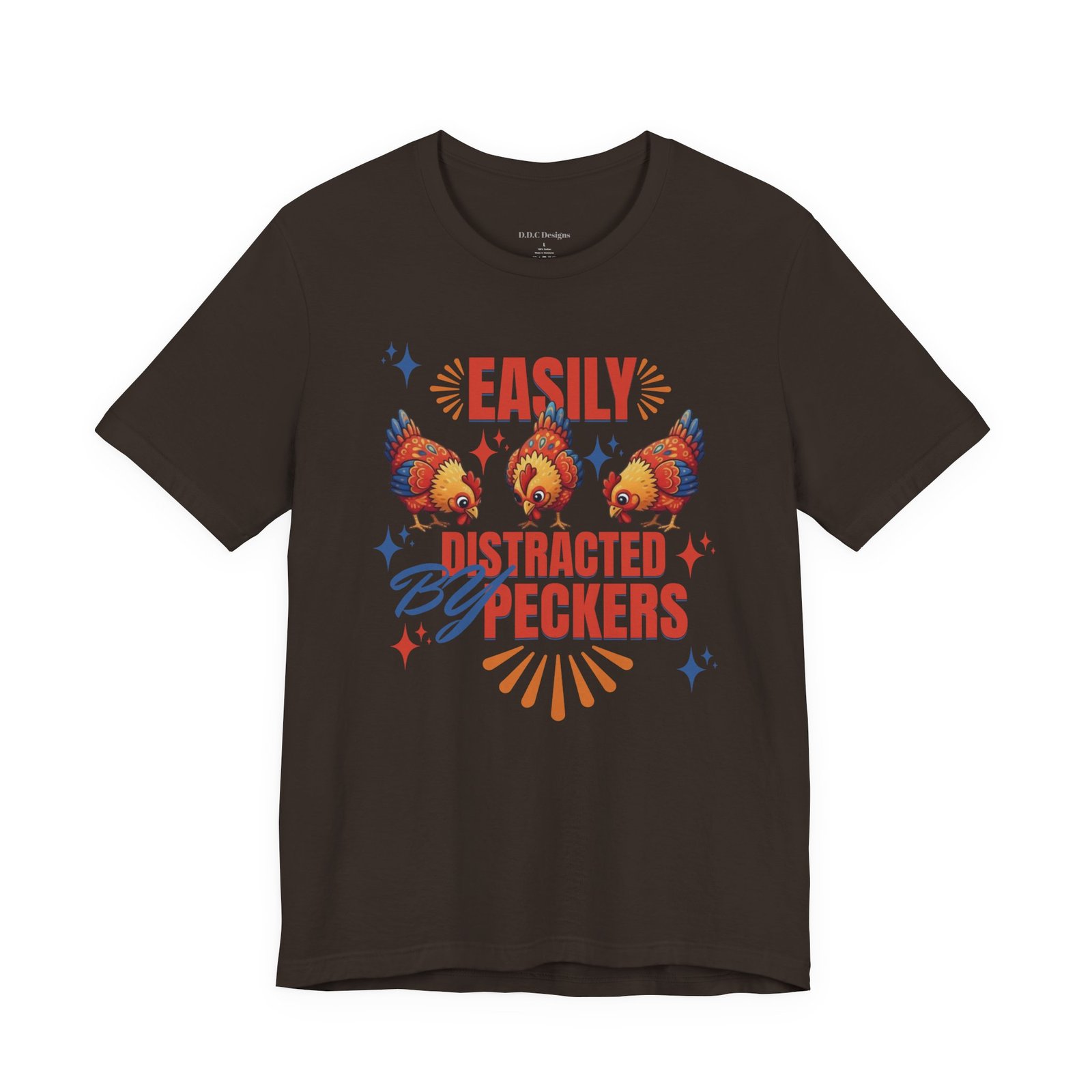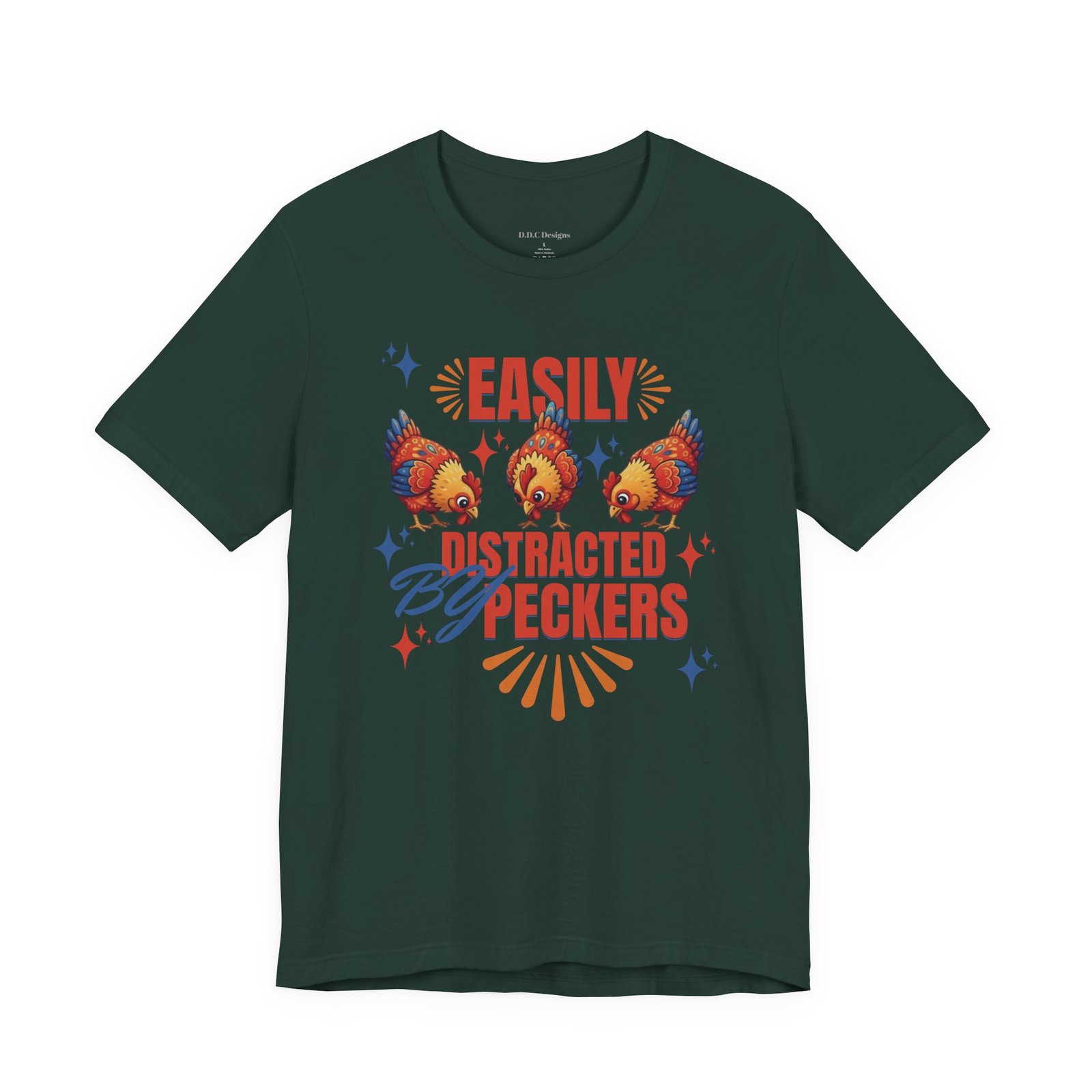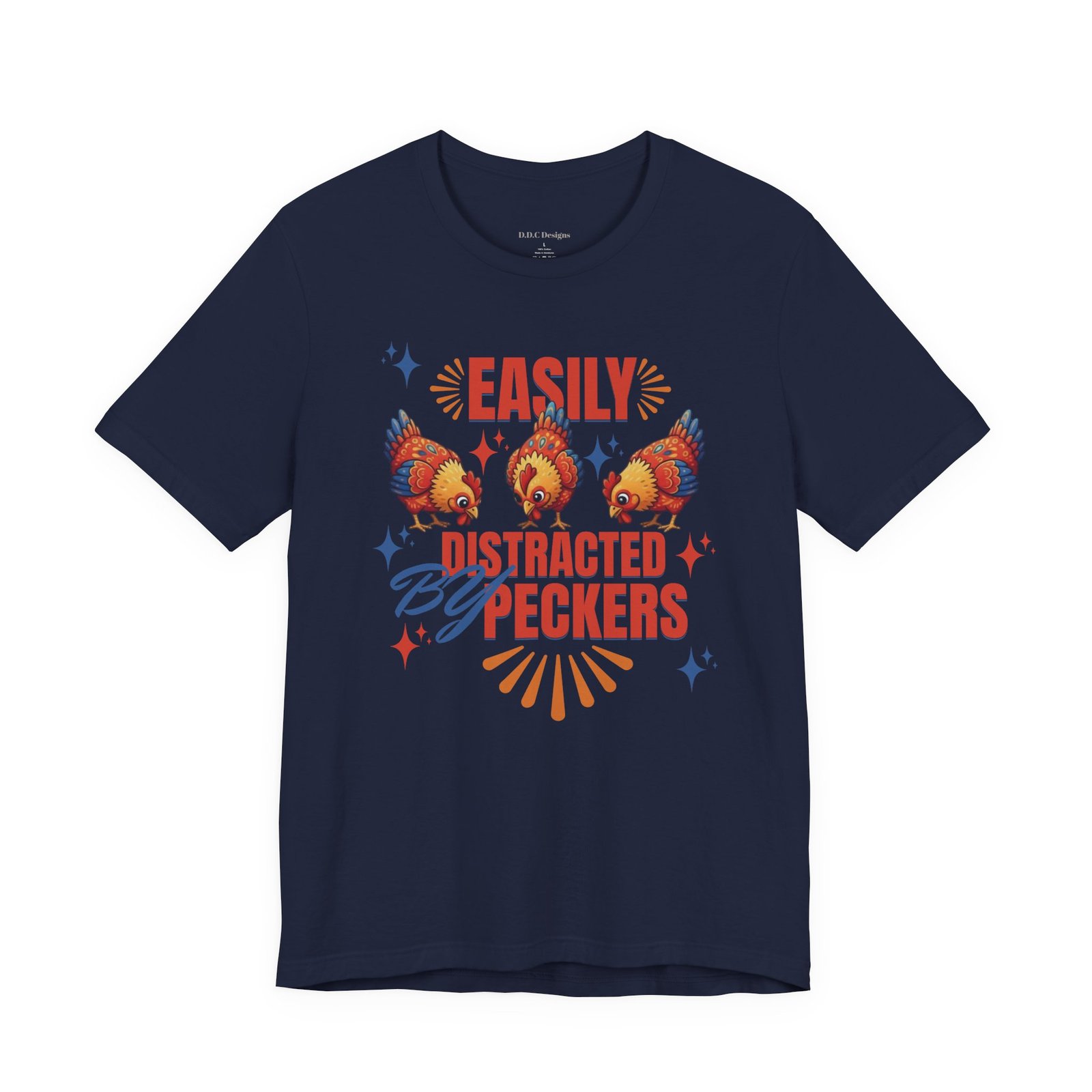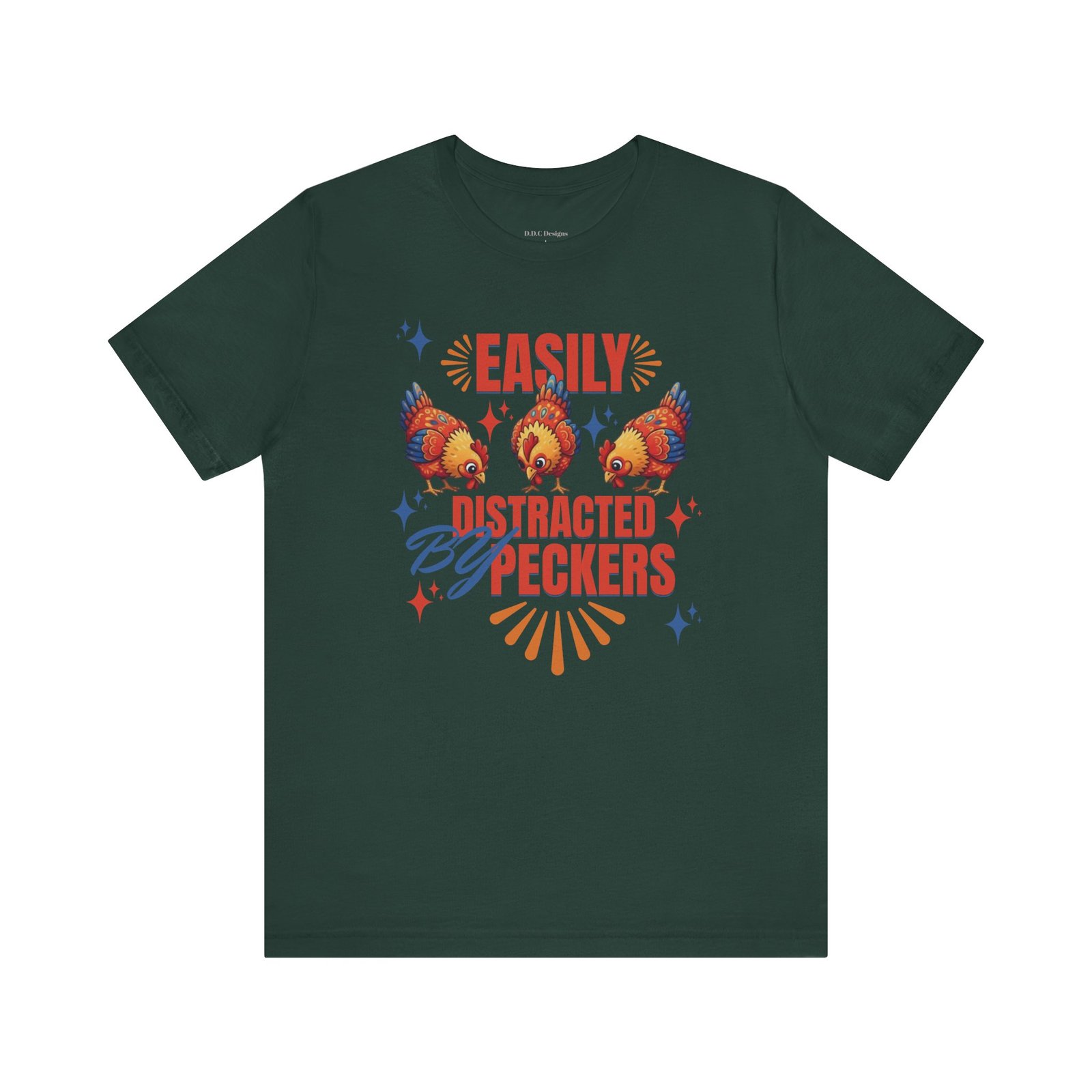 This rustic chicken t-shirt is perfect for any chicken enthusiast, homesteader, or lover of all things charmingly rustic. Featuring an adorable graphic of happy chickens pecking the ground against a warm farm backdrop, with the fun phrase ‘Easily Distracted By Peckers’. It’s a conversation starter for anyone who enjoys watching their flock. Perfect for casual wear, this tee is made from soft, breathable cotton for all-day comfort.