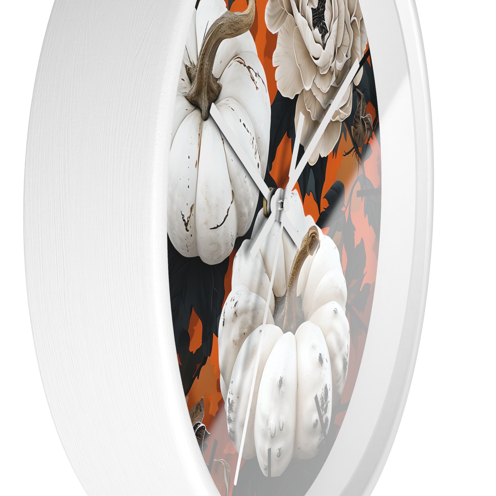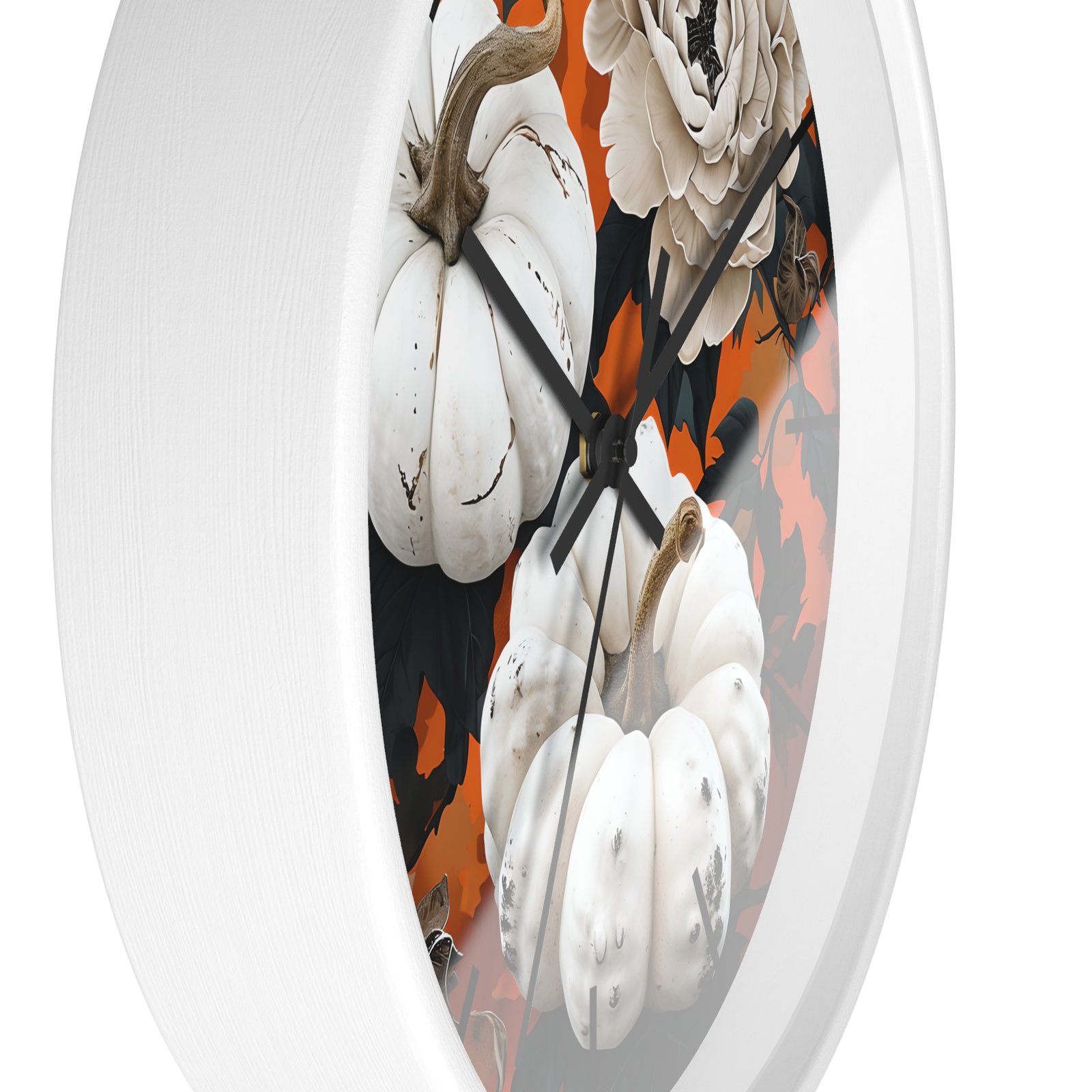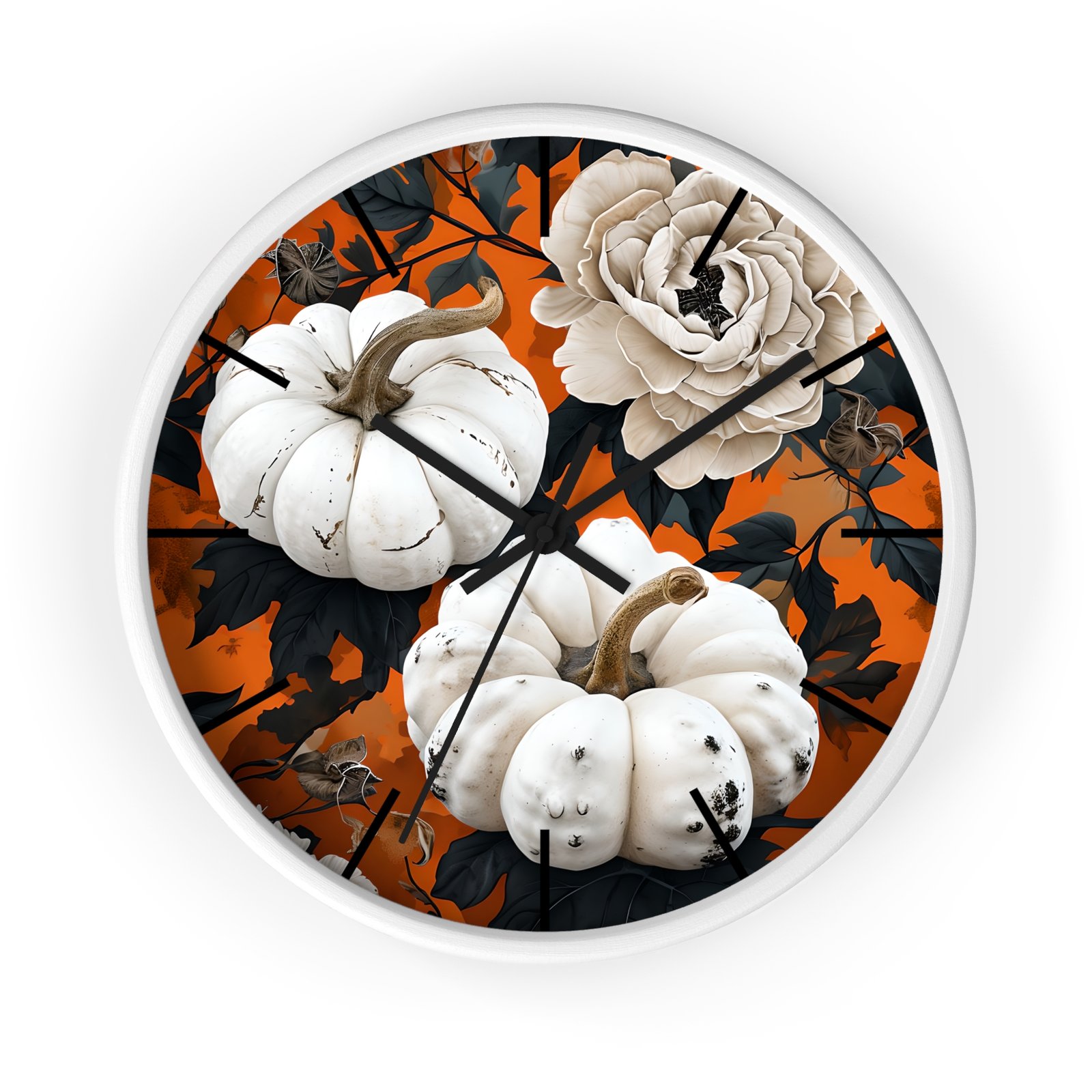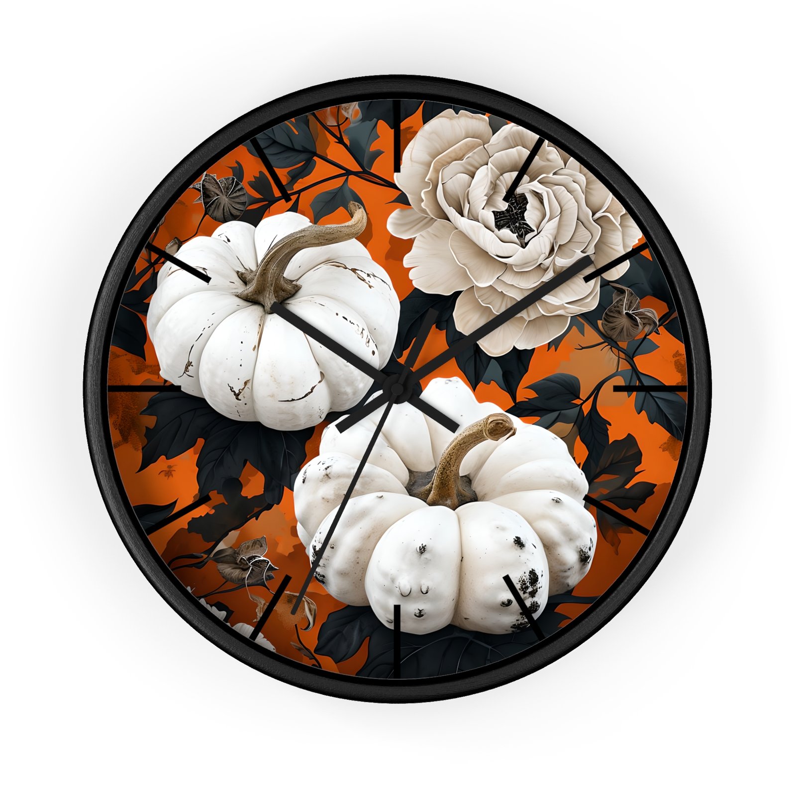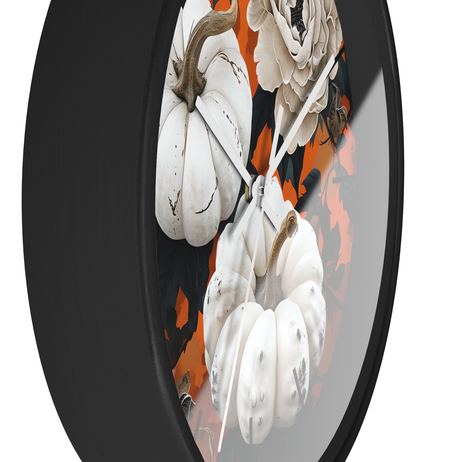 Bring the beauty of the season into your home year-round with the ‘Harvest Bloom’ Wall Clock. Featuring soft white pumpkins, creamy florals, and rich charcoal foliage on a burnt-orange background, this clock adds warmth and style to your kitchen, entryway, or cozy nook. Perfect for fall enthusiasts and those looking to add a touch of modern fall décor to their space. Ideal for Thanksgiving, fall harvest celebrations, and everyday use.