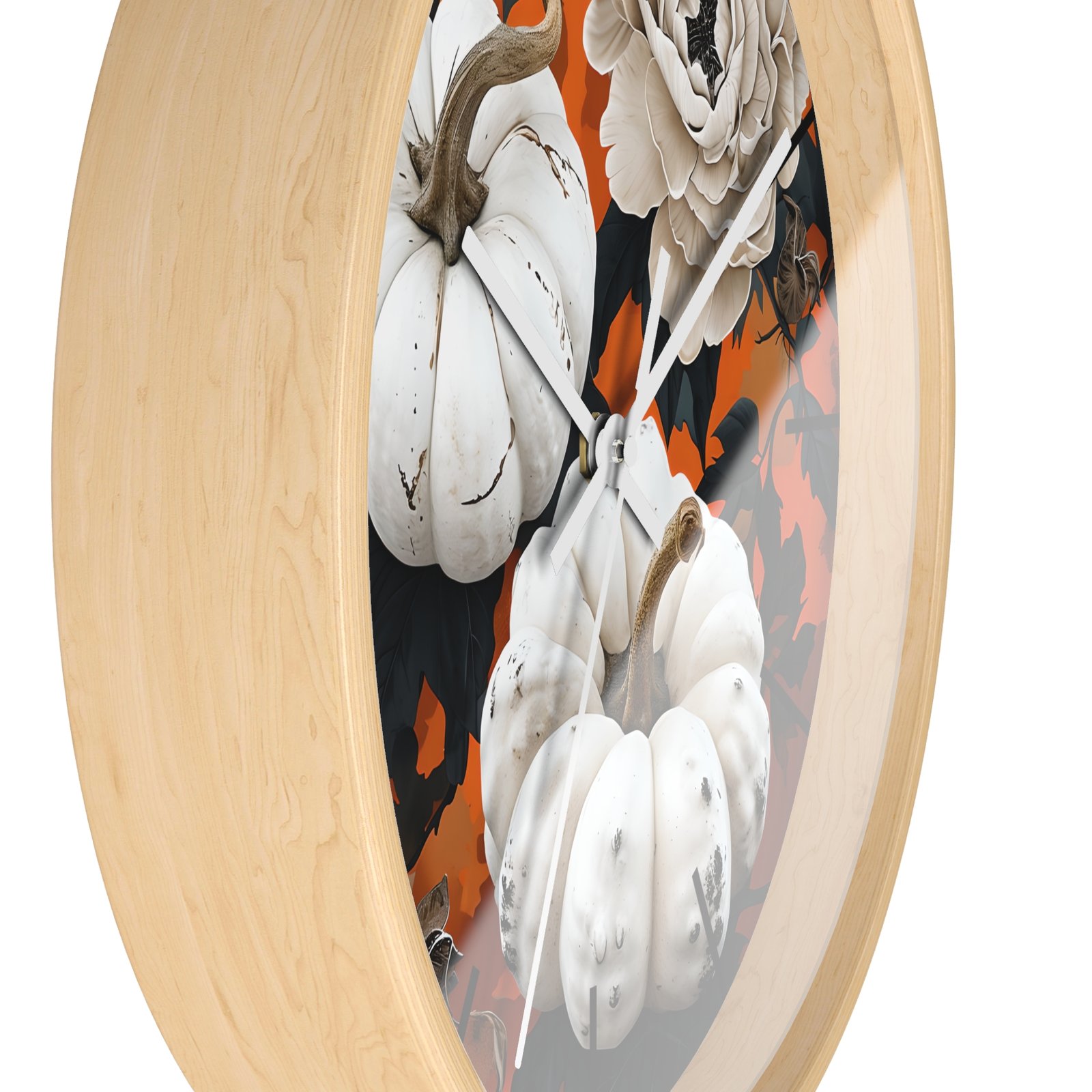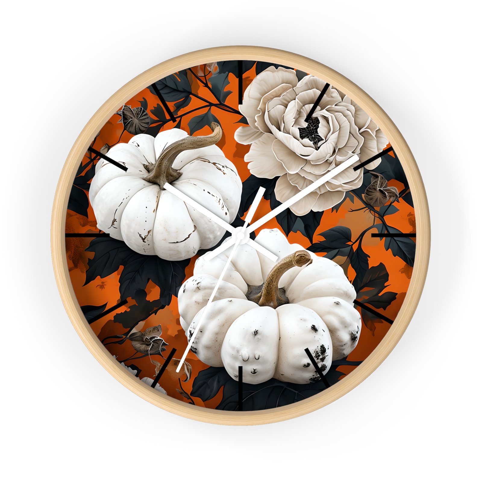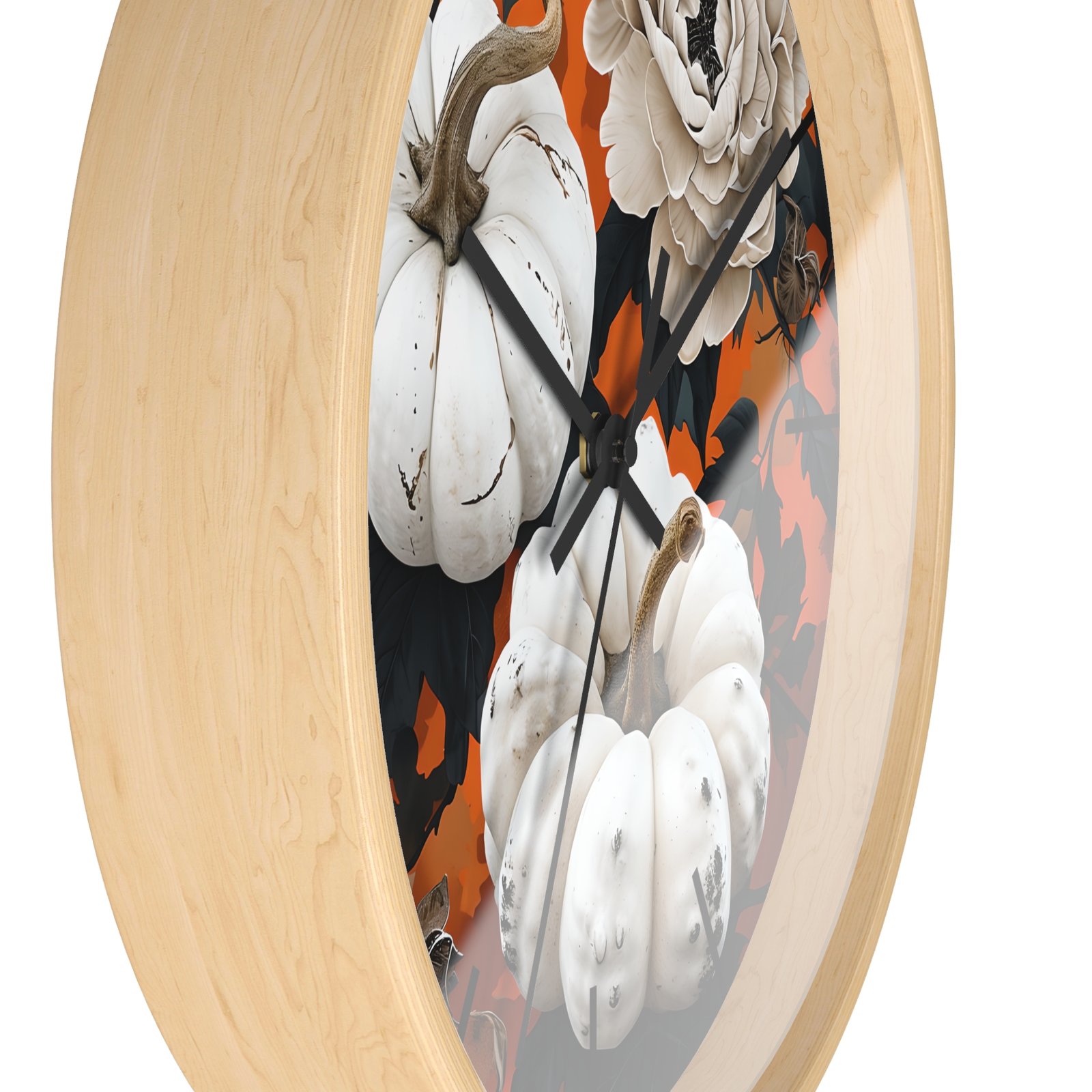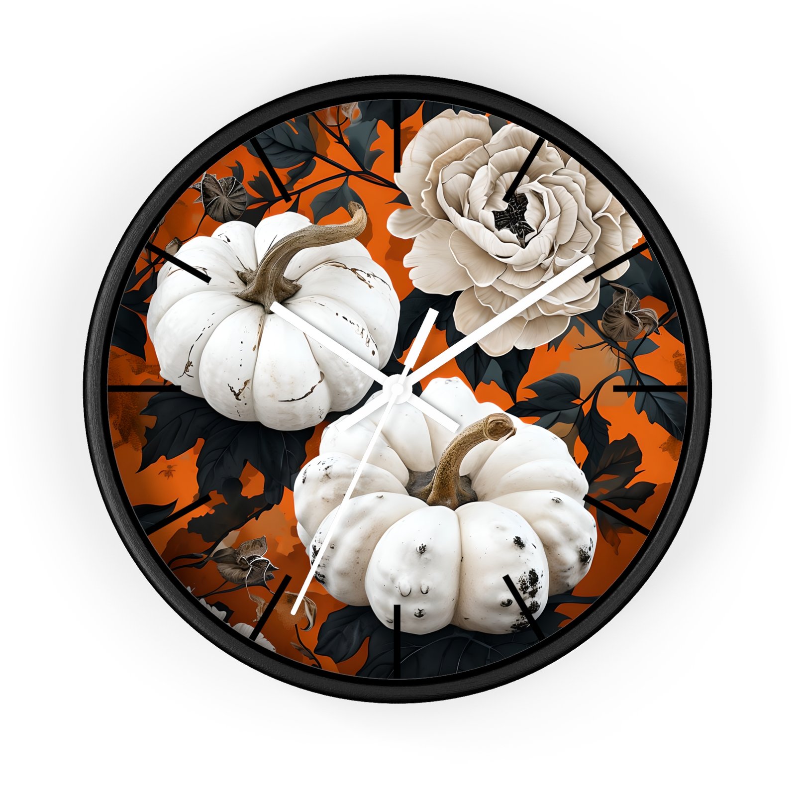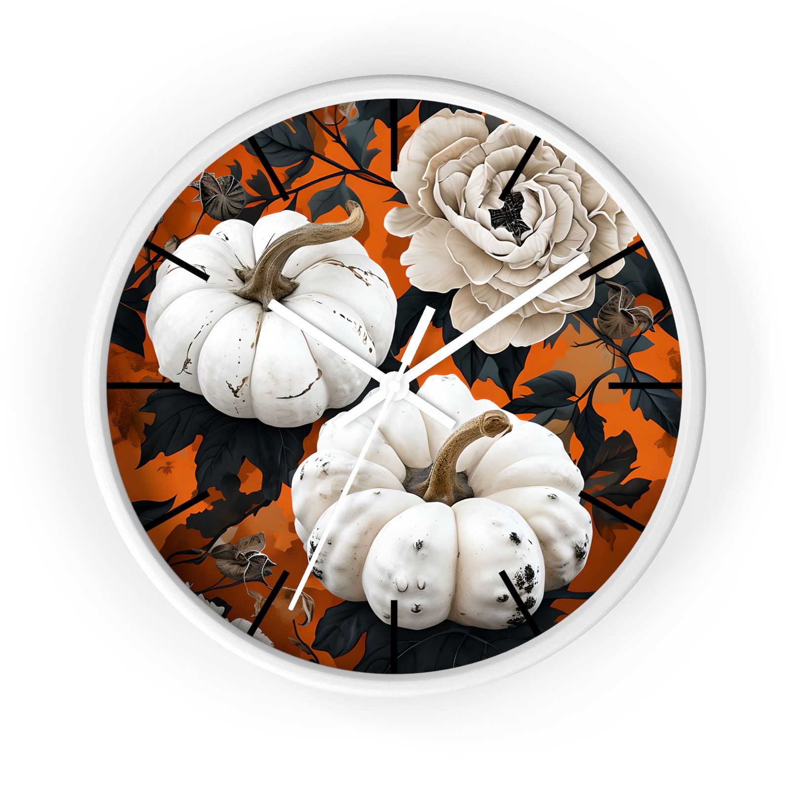 Bring the beauty of the season into your home year-round with the ‘Harvest Bloom’ Wall Clock. Featuring soft white pumpkins, creamy florals, and rich charcoal foliage on a burnt-orange background, this clock adds warmth and style to your kitchen, entryway, or cozy nook. Perfect for fall enthusiasts and those looking to add a touch of modern fall décor to their space. Ideal for Thanksgiving, fall harvest celebrations, and everyday use.