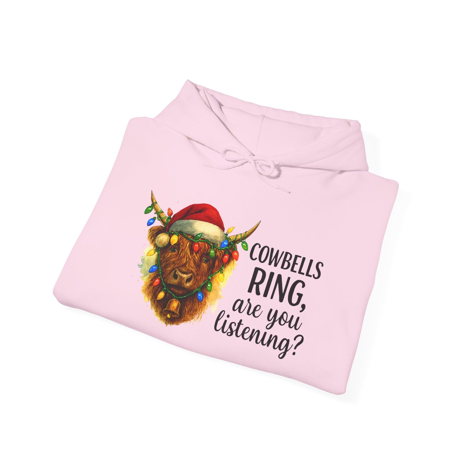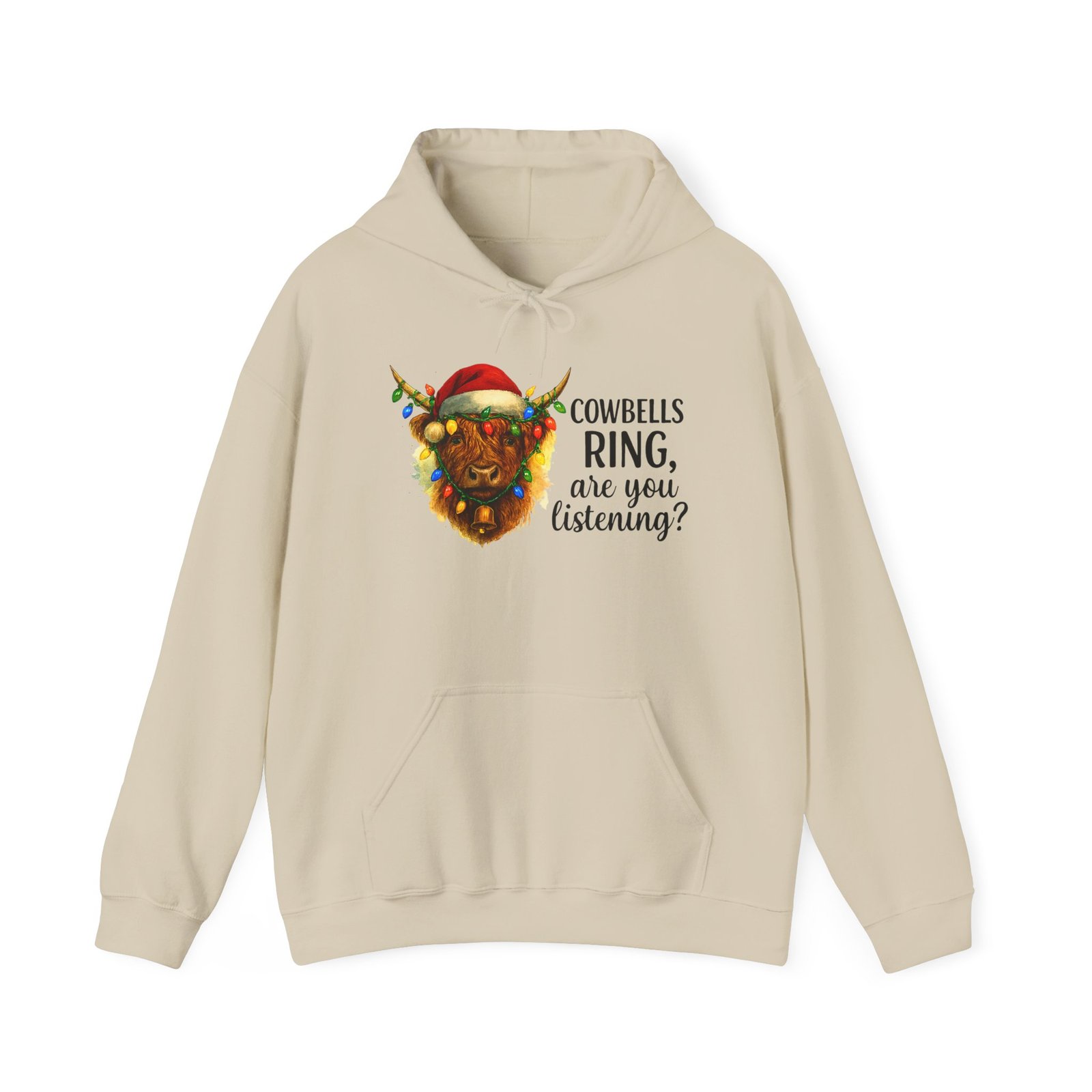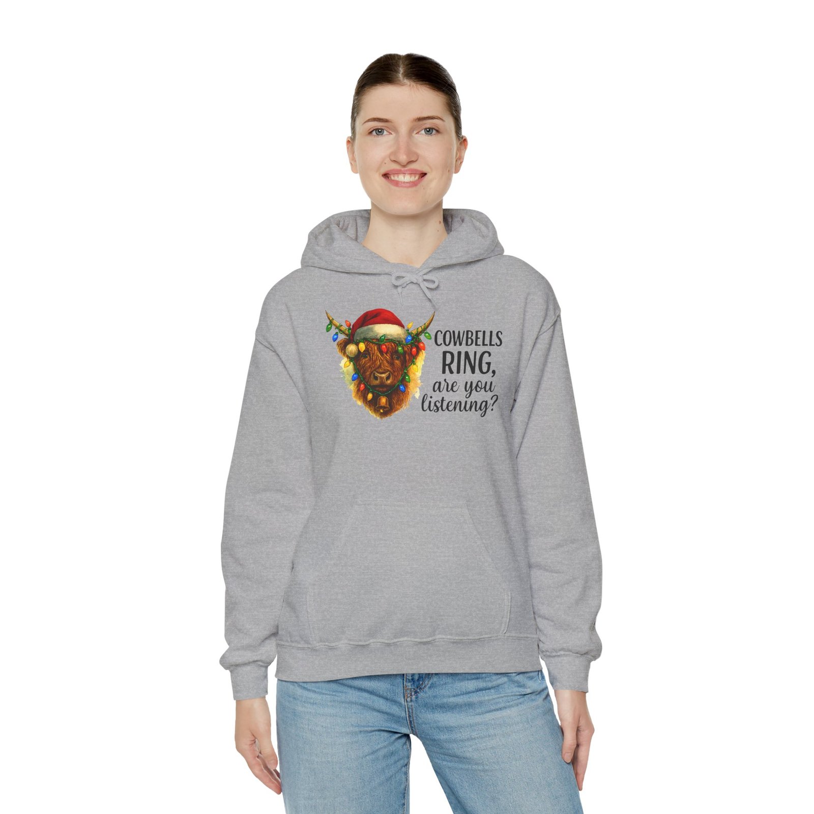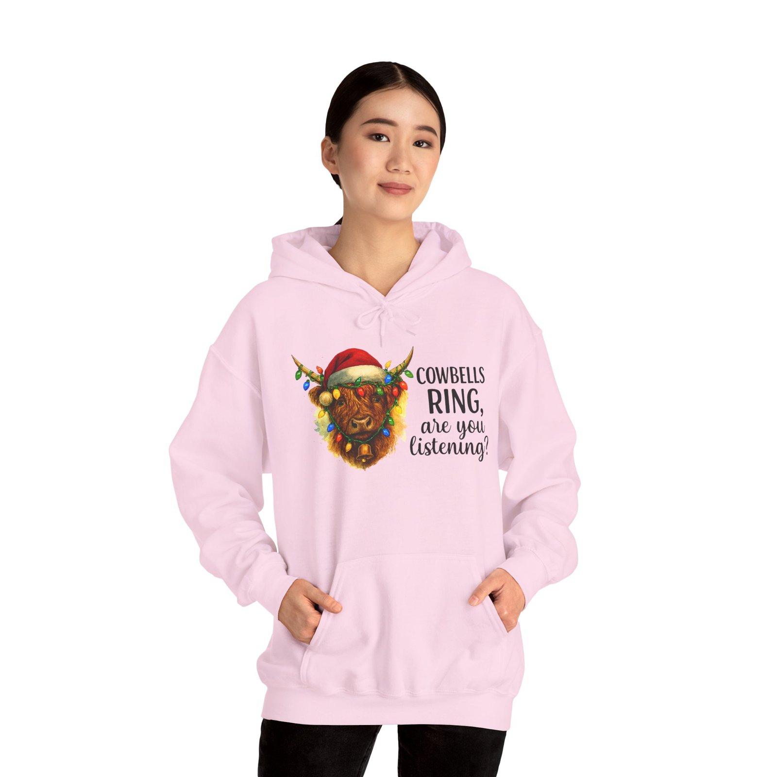 Get ready to cozy up for the holidays in this adorable and witty Highland Cow Christmas Hoodie. Featuring a charming illustration of a shaggy Highland cow with a Santa hat and Christmas lights, this hoodie is perfect for anyone who loves farm animals, Scotland, or just a good pun. Ideal for holiday parties, Christmas morning, or just running errands with a smile, this classic-fit hoodie is designed for maximum warmth and comfort all season long. Makes a fantastic, unique Christmas gift for those with a great sense of humor and love for cuddly creatures.