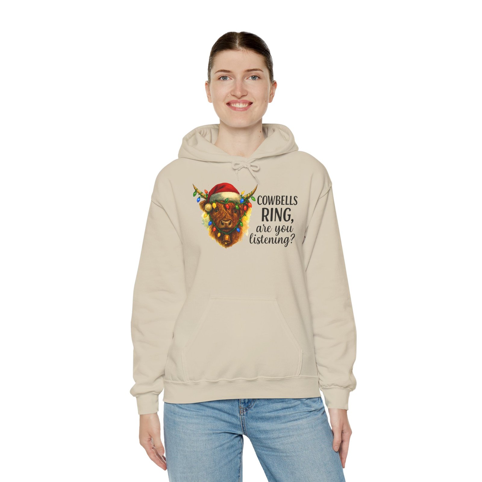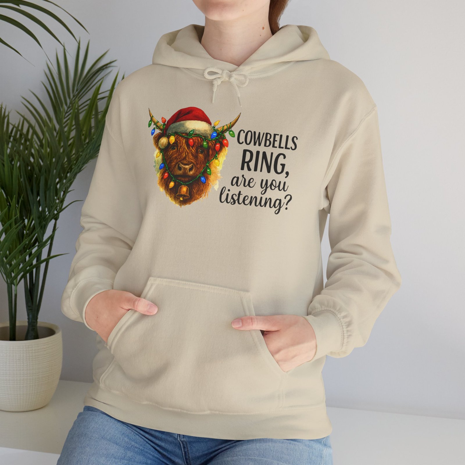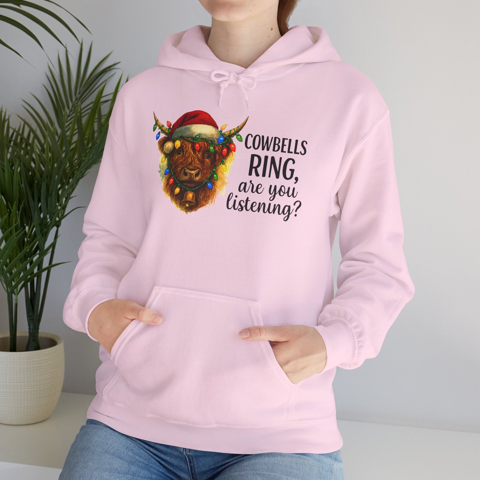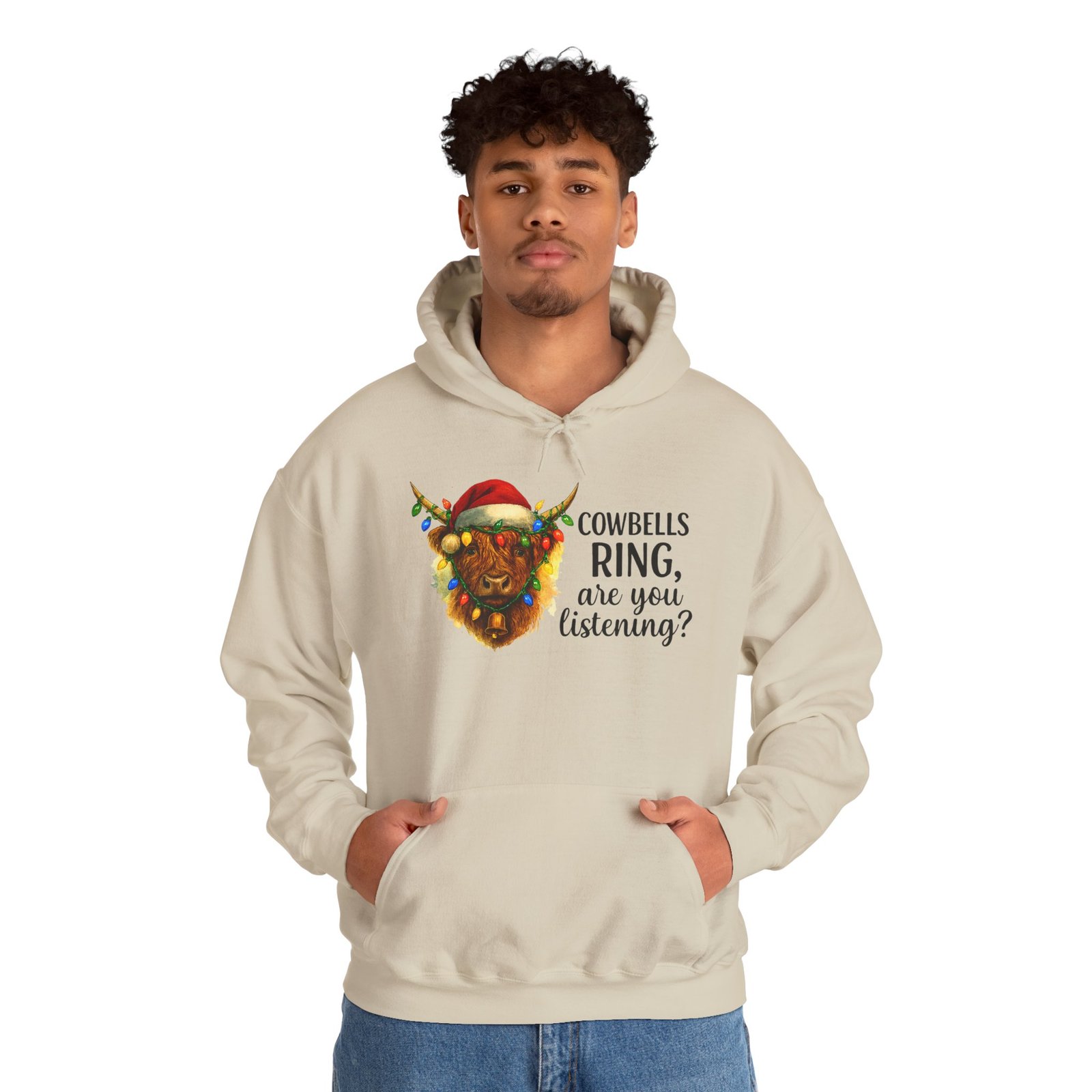 Get ready to cozy up for the holidays in this adorable and witty Highland Cow Christmas Hoodie. Featuring a charming illustration of a shaggy Highland cow with a Santa hat and Christmas lights, this hoodie is perfect for anyone who loves farm animals, Scotland, or just a good pun. Ideal for holiday parties, Christmas morning, or just running errands with a smile, this classic-fit hoodie is designed for maximum warmth and comfort all season long. Makes a fantastic, unique Christmas gift for those with a great sense of humor and love for cuddly creatures.