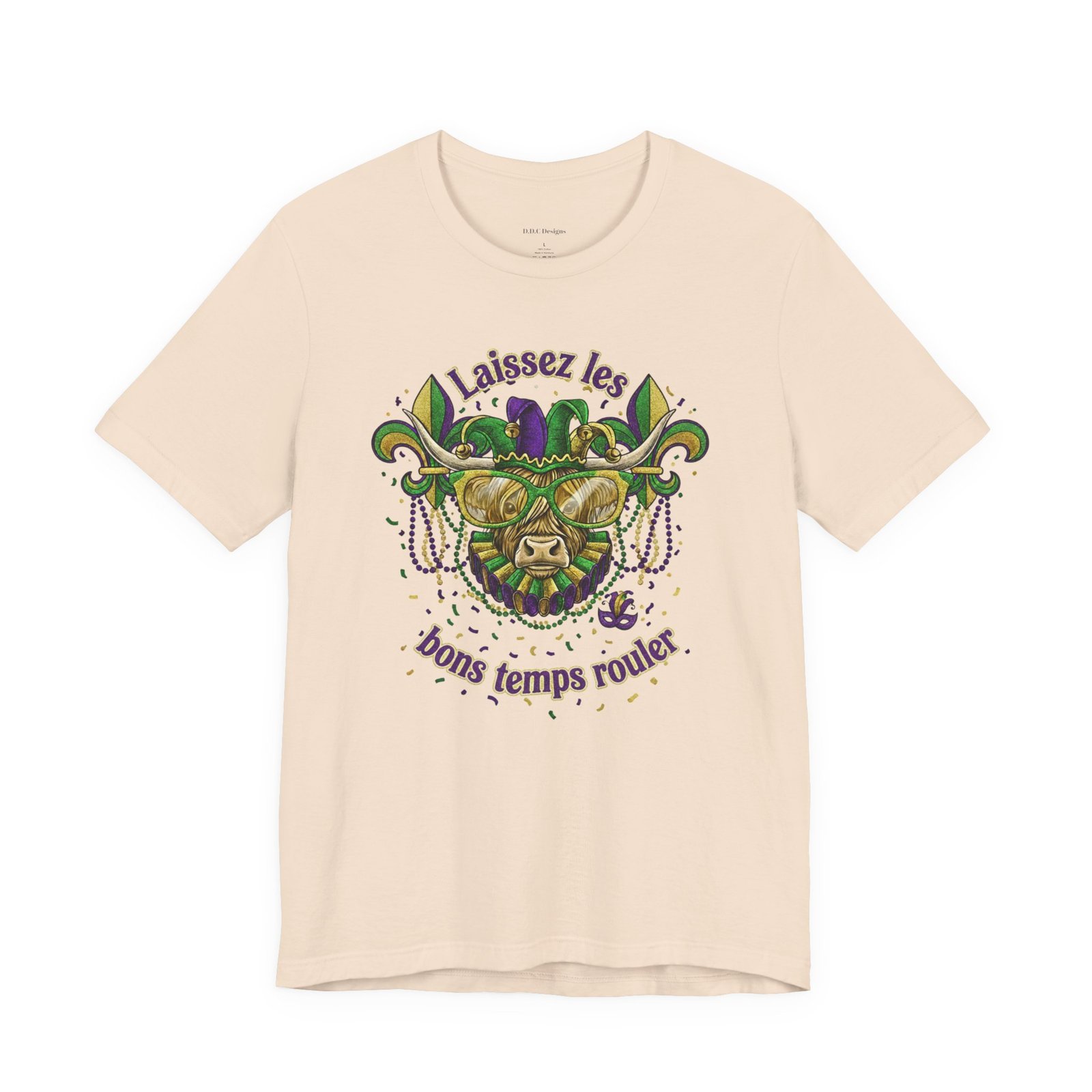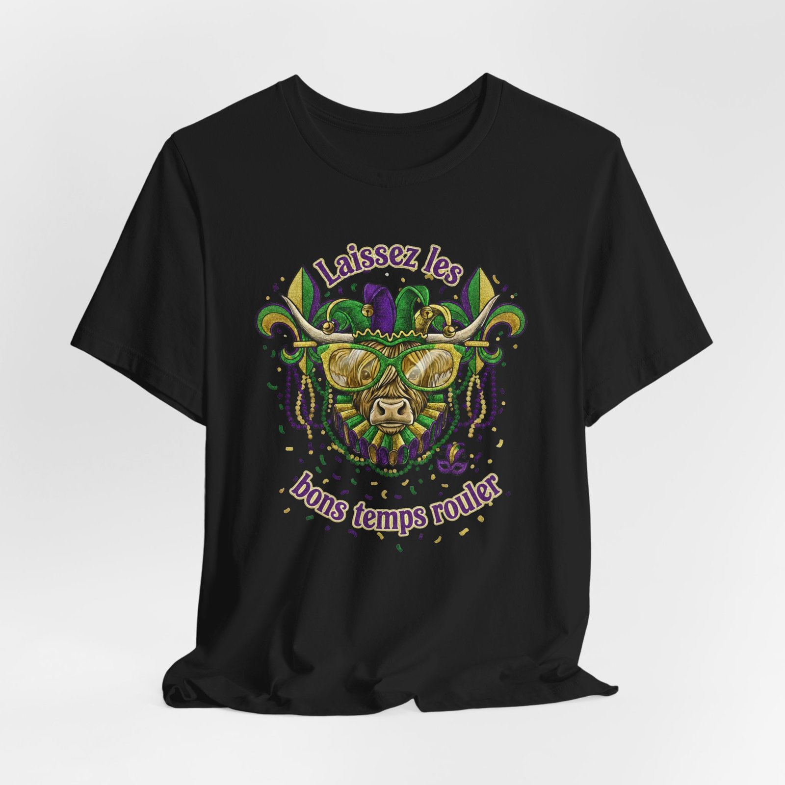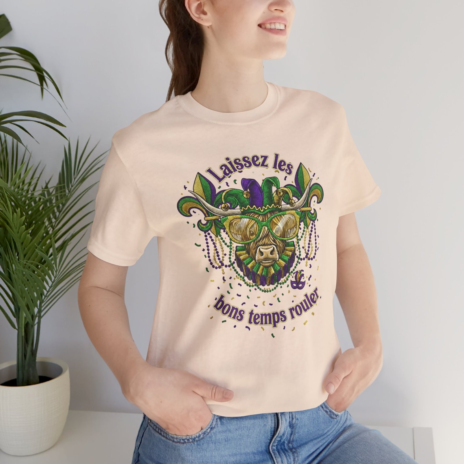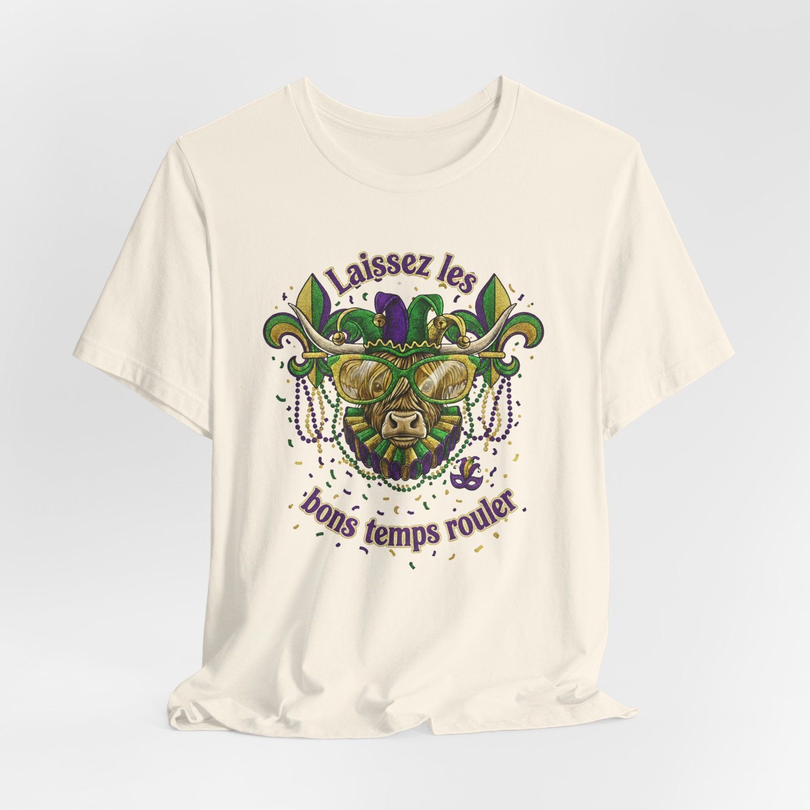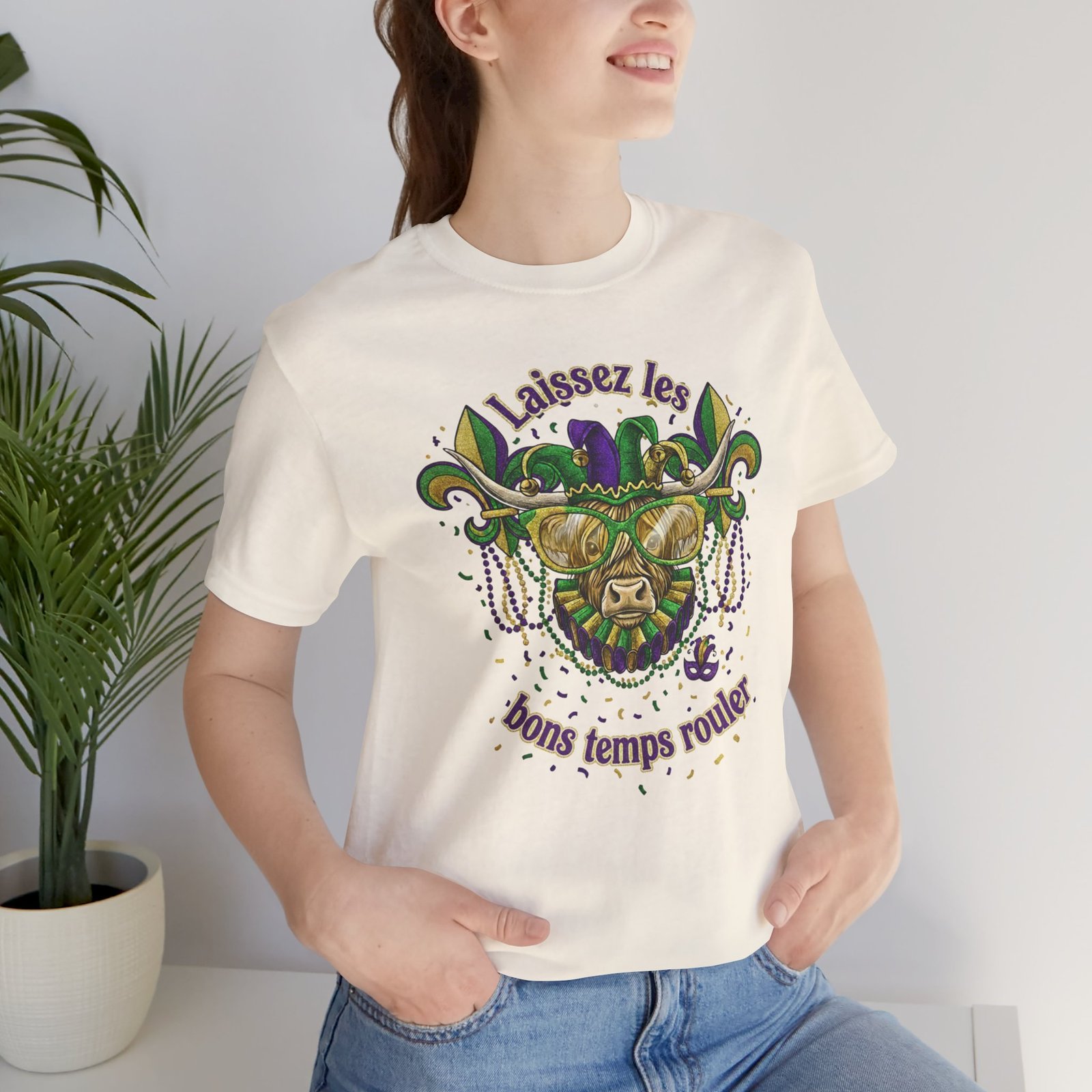 Bring Bourbon Street energy to your wardrobe with a playful Highland cow dressed for Mardi Gras. This lightweight tee feels like an instant favorite—soft, breathable cotton that moves with you through parades, porch hangs, and late-night beignets. The cow’s beads, jester hat, and sunglasses capture that mix of Cajun whimsy and country sass; wear it when you want to nod to New Orleans spirit without taking yourself too seriously. Tailored side seams and a neat crew neckline give a clean silhouette that layers easily under a denim jacket or pairs with your comfiest shorts. It’s built to keep its shape and color through repeat wears and washes, so those purple, green, and gold tones stay bright long after the confetti settles.