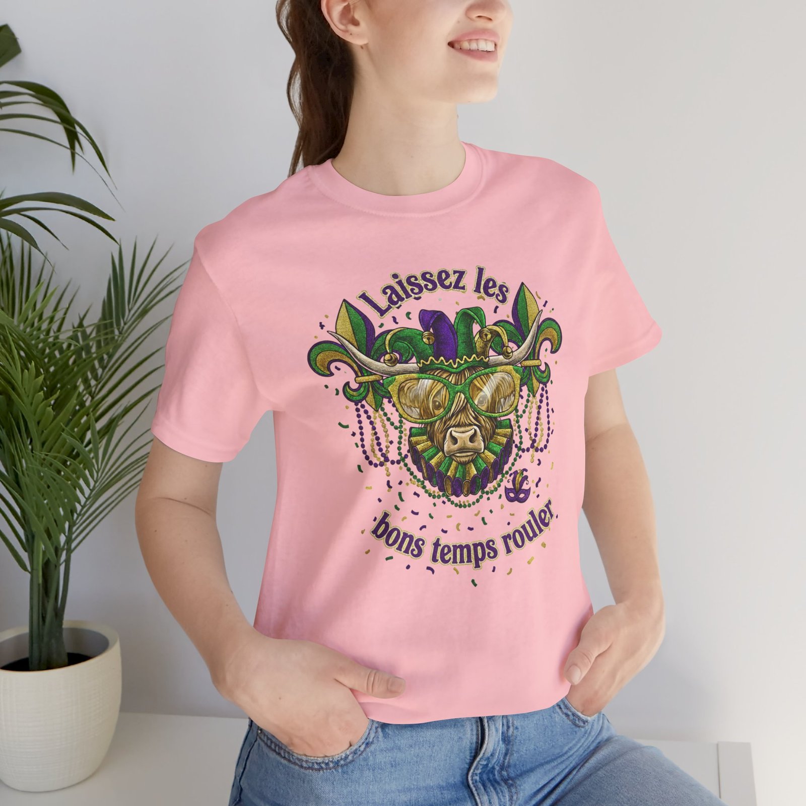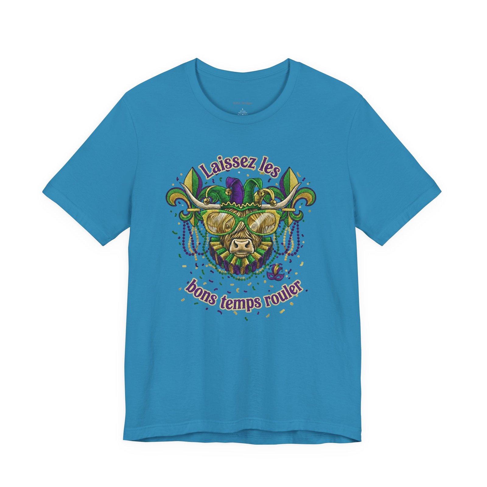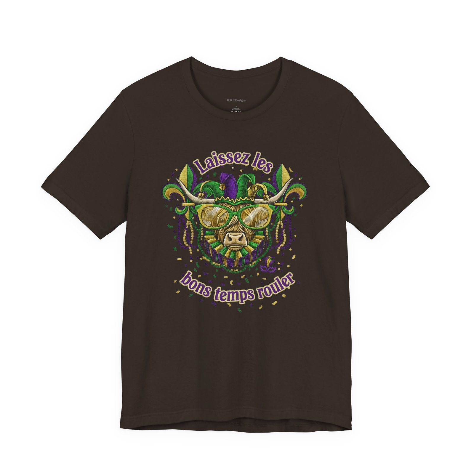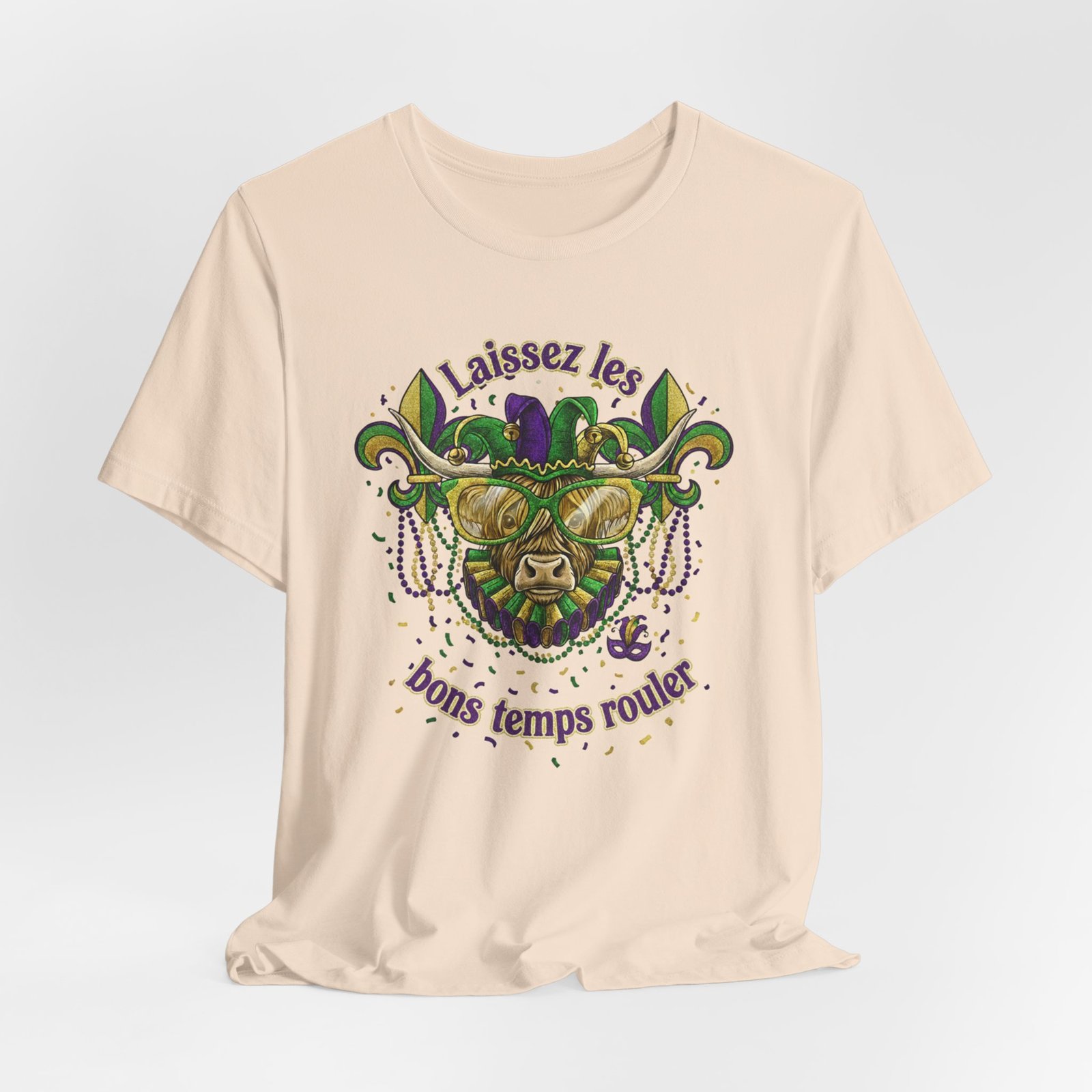 Bring Bourbon Street energy to your wardrobe with a playful Highland cow dressed for Mardi Gras. This lightweight tee feels like an instant favorite—soft, breathable cotton that moves with you through parades, porch hangs, and late-night beignets. The cow’s beads, jester hat, and sunglasses capture that mix of Cajun whimsy and country sass; wear it when you want to nod to New Orleans spirit without taking yourself too seriously. Tailored side seams and a neat crew neckline give a clean silhouette that layers easily under a denim jacket or pairs with your comfiest shorts. It’s built to keep its shape and color through repeat wears and washes, so those purple, green, and gold tones stay bright long after the confetti settles.