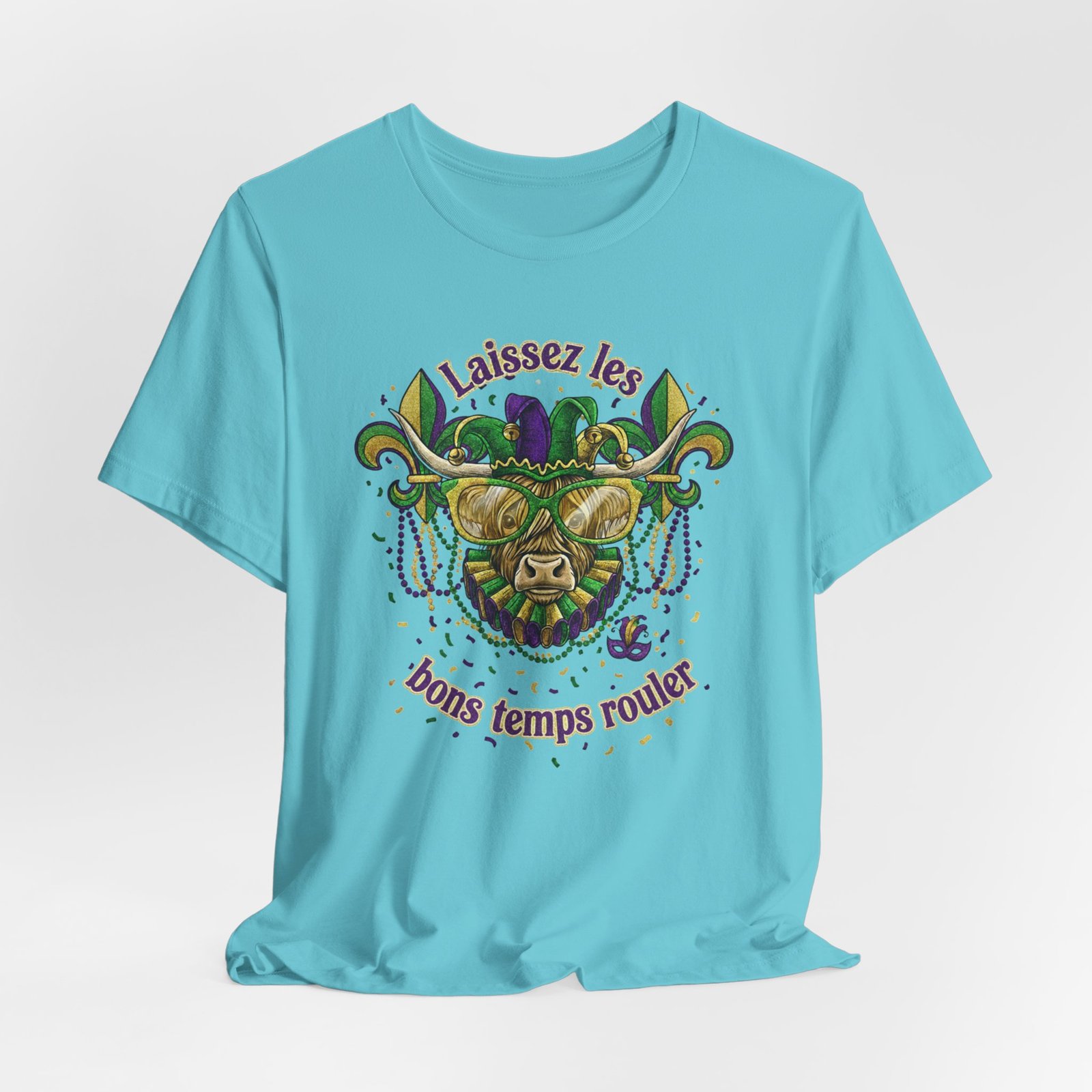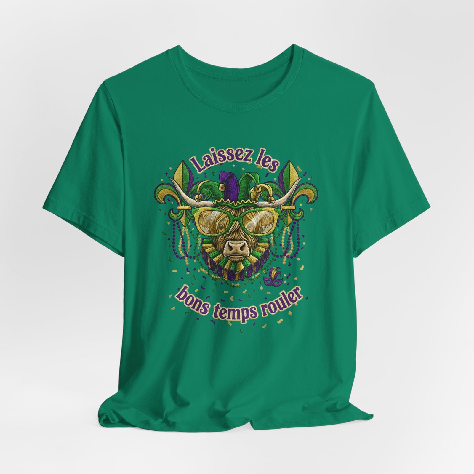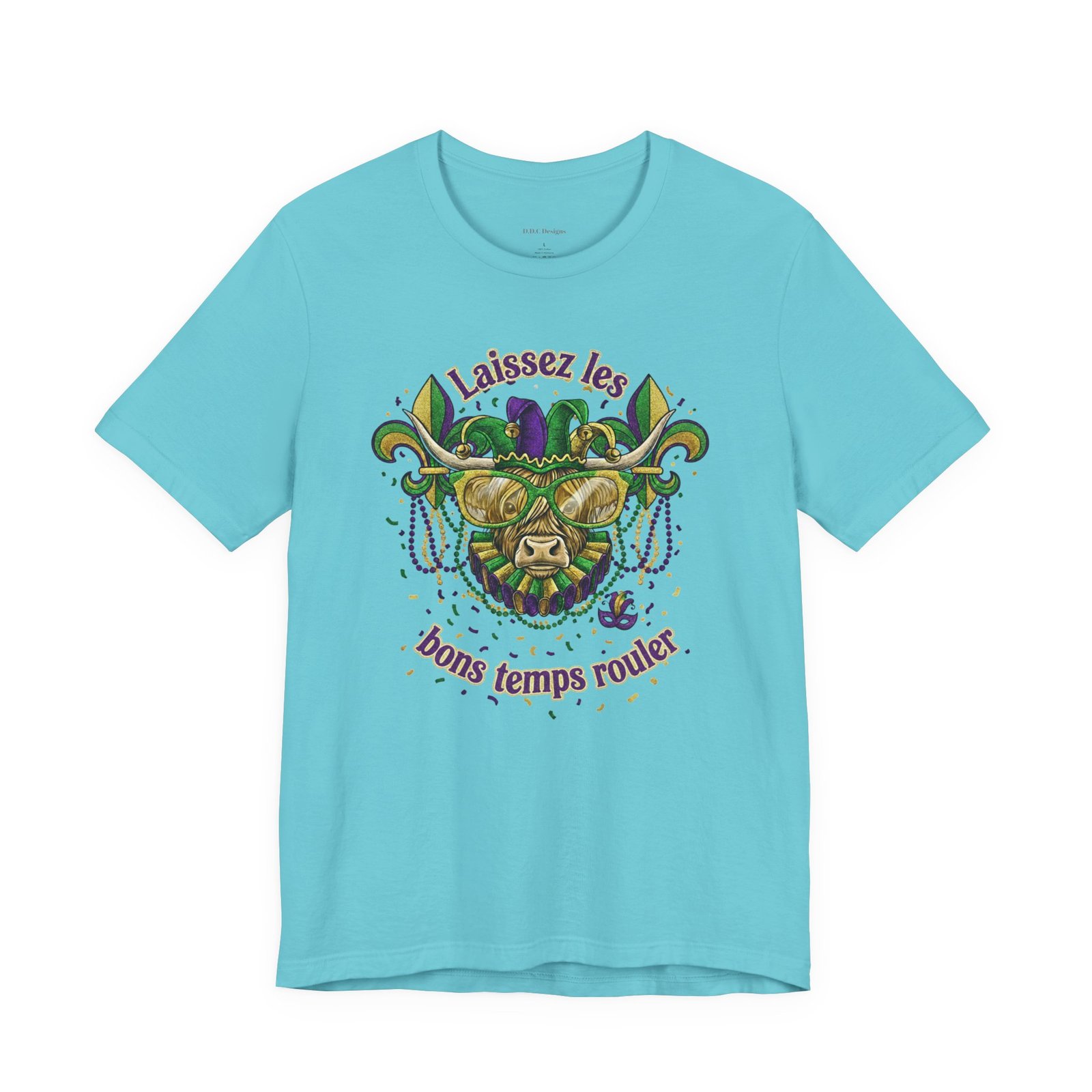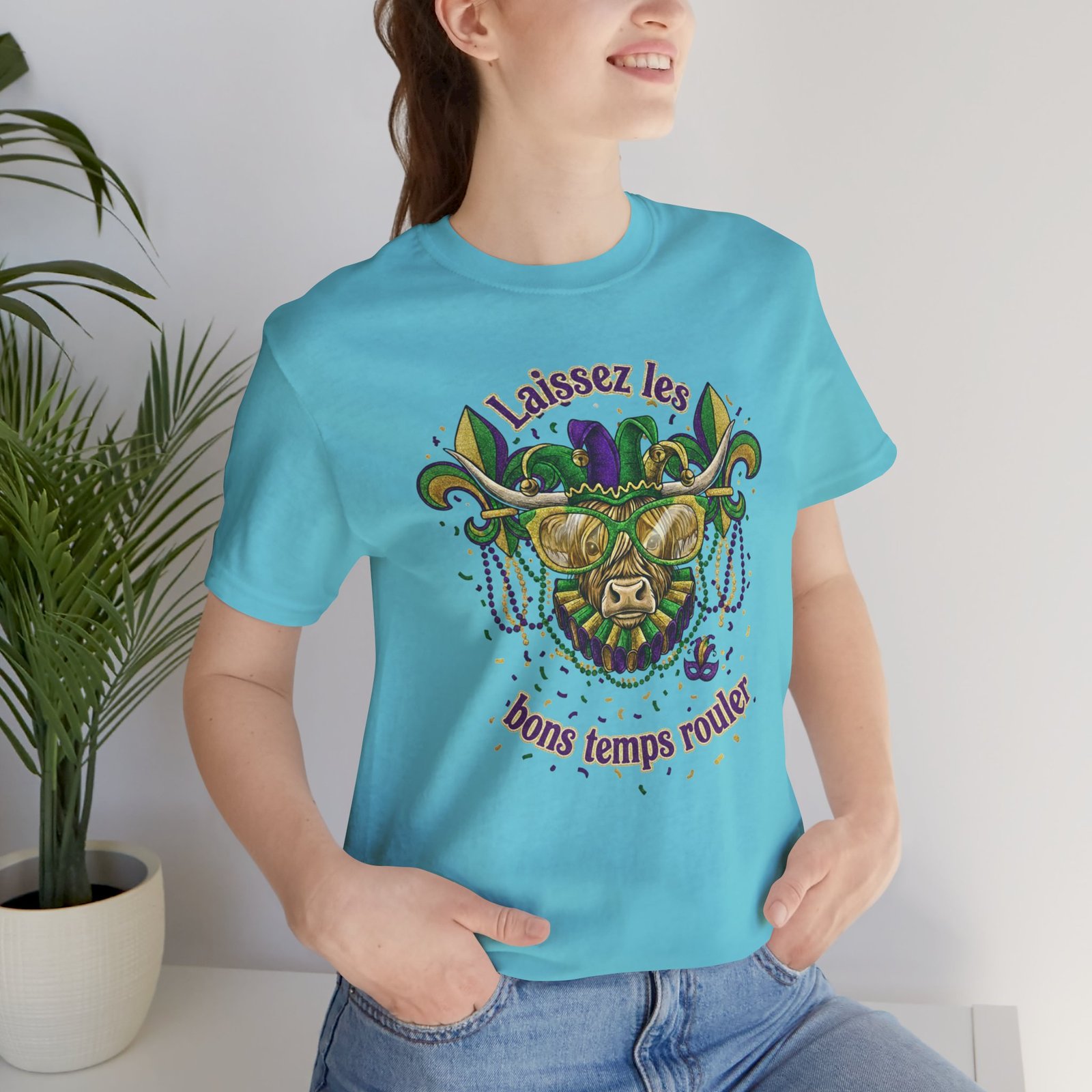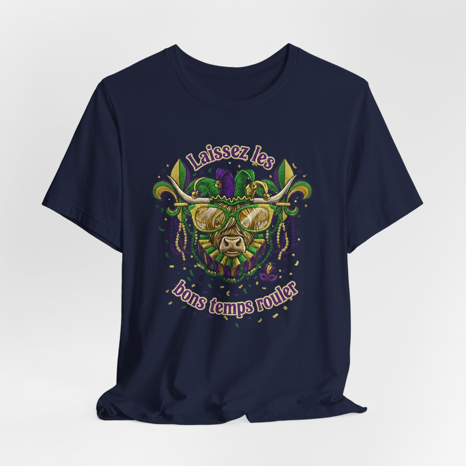 Bring Bourbon Street energy to your wardrobe with a playful Highland cow dressed for Mardi Gras. This lightweight tee feels like an instant favorite—soft, breathable cotton that moves with you through parades, porch hangs, and late-night beignets. The cow’s beads, jester hat, and sunglasses capture that mix of Cajun whimsy and country sass; wear it when you want to nod to New Orleans spirit without taking yourself too seriously. Tailored side seams and a neat crew neckline give a clean silhouette that layers easily under a denim jacket or pairs with your comfiest shorts. It’s built to keep its shape and color through repeat wears and washes, so those purple, green, and gold tones stay bright long after the confetti settles.