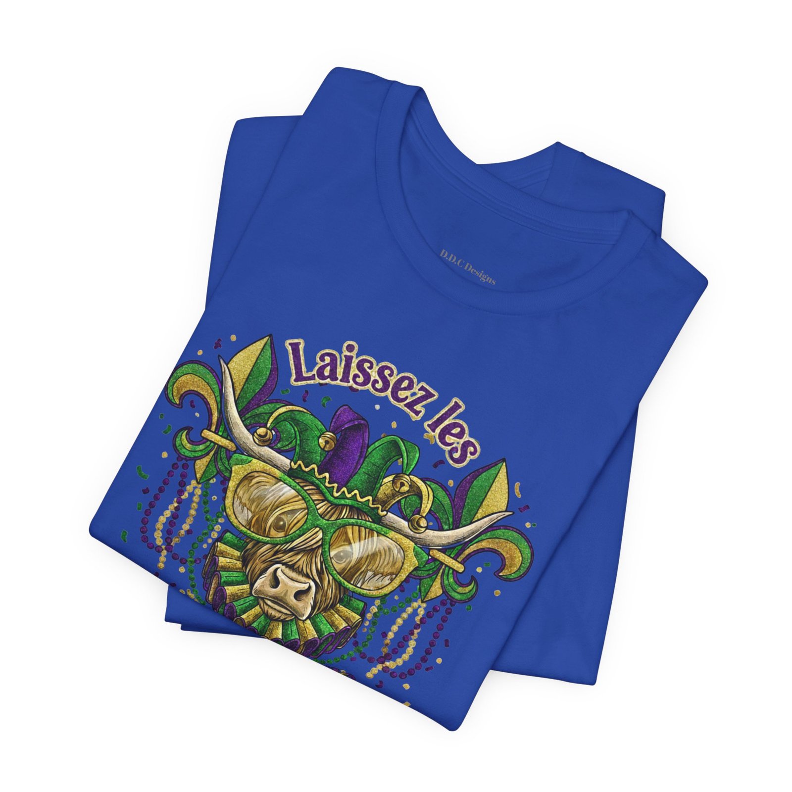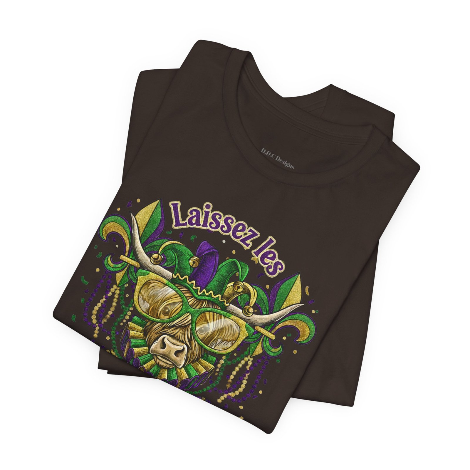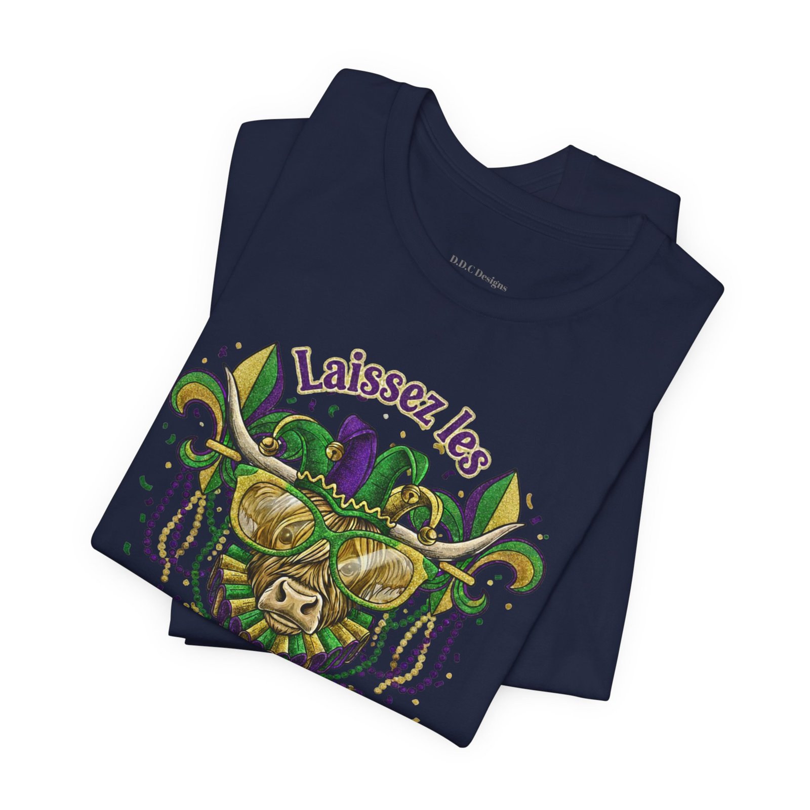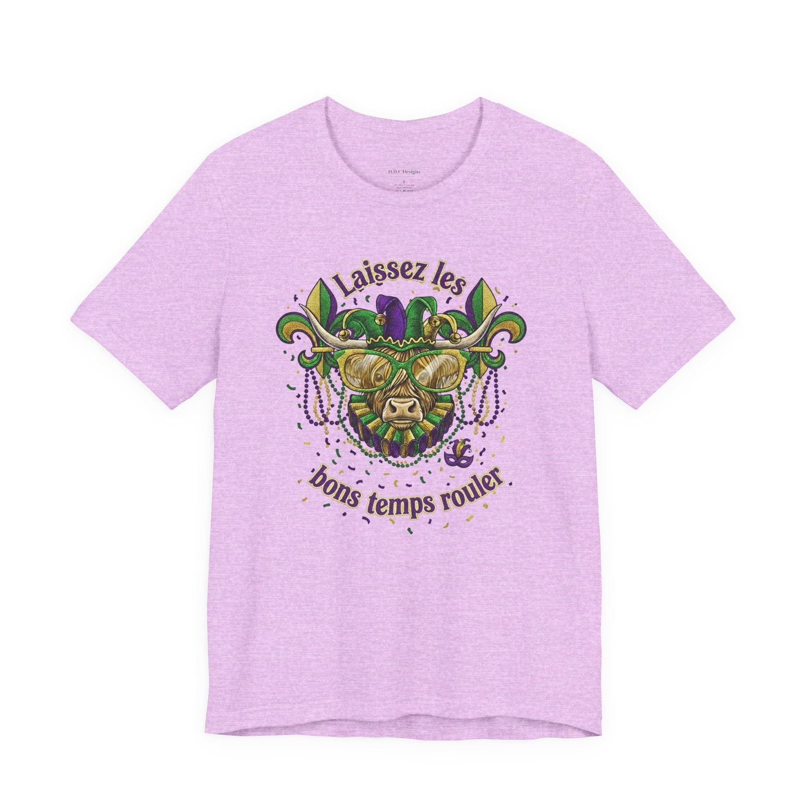Bring Bourbon Street energy to your wardrobe with a playful Highland cow dressed for Mardi Gras. This lightweight tee feels like an instant favorite—soft, breathable cotton that moves with you through parades, porch hangs, and late-night beignets. The cow’s beads, jester hat, and sunglasses capture that mix of Cajun whimsy and country sass; wear it when you want to nod to New Orleans spirit without taking yourself too seriously. Tailored side seams and a neat crew neckline give a clean silhouette that layers easily under a denim jacket or pairs with your comfiest shorts. It’s built to keep its shape and color through repeat wears and washes, so those purple, green, and gold tones stay bright long after the confetti settles.