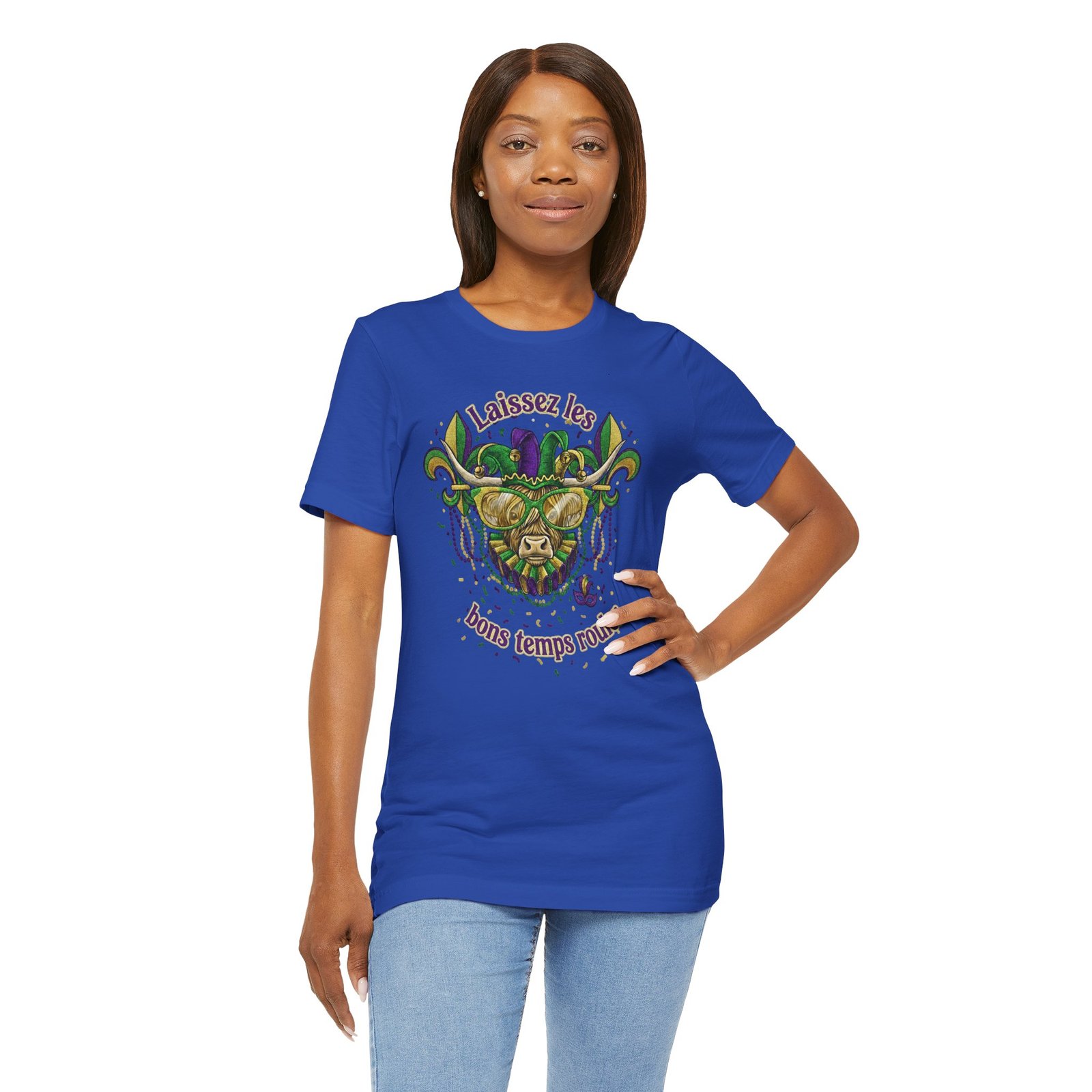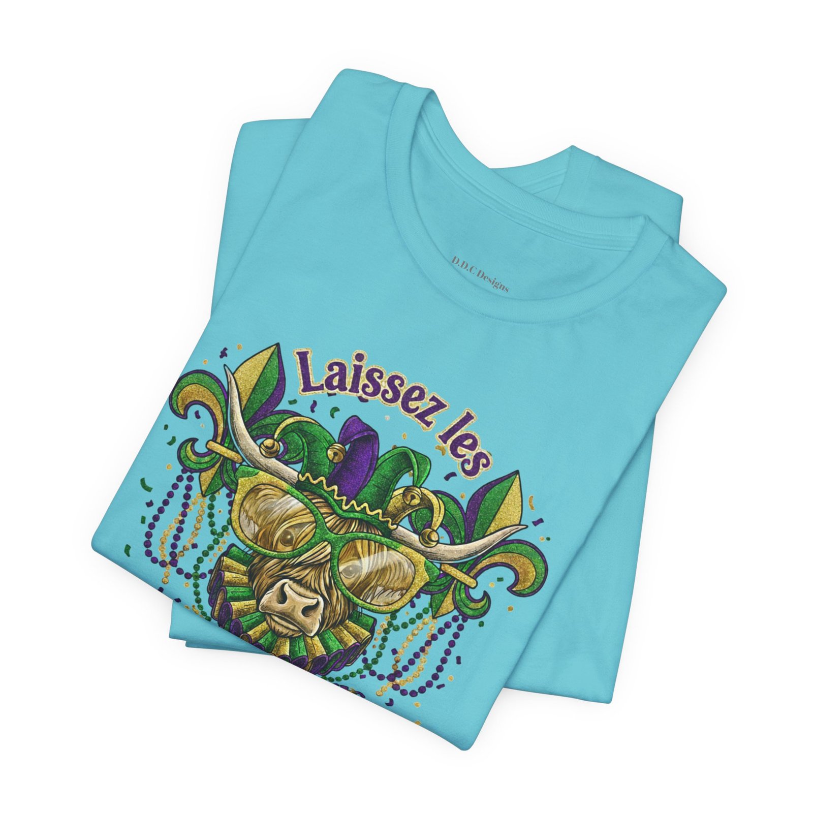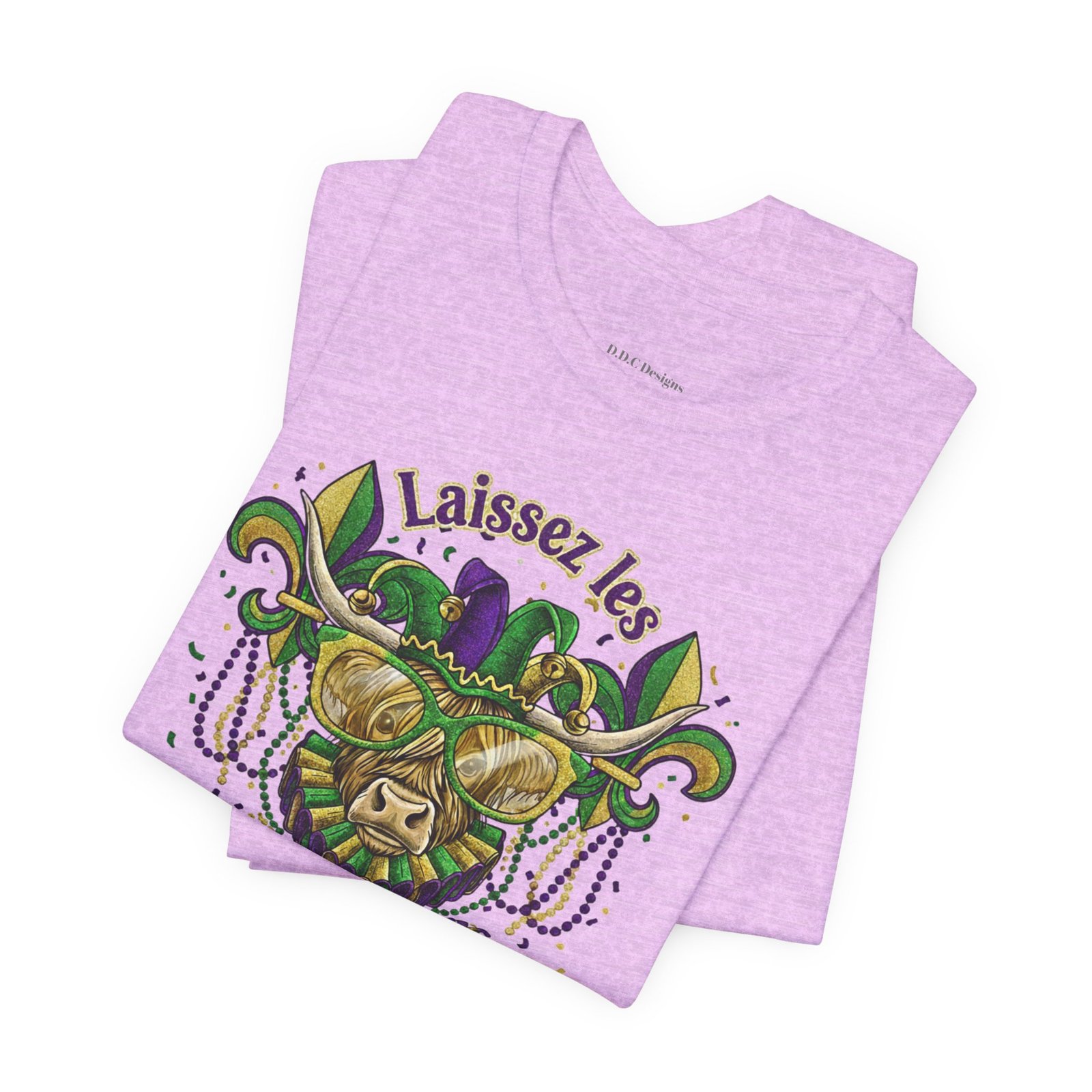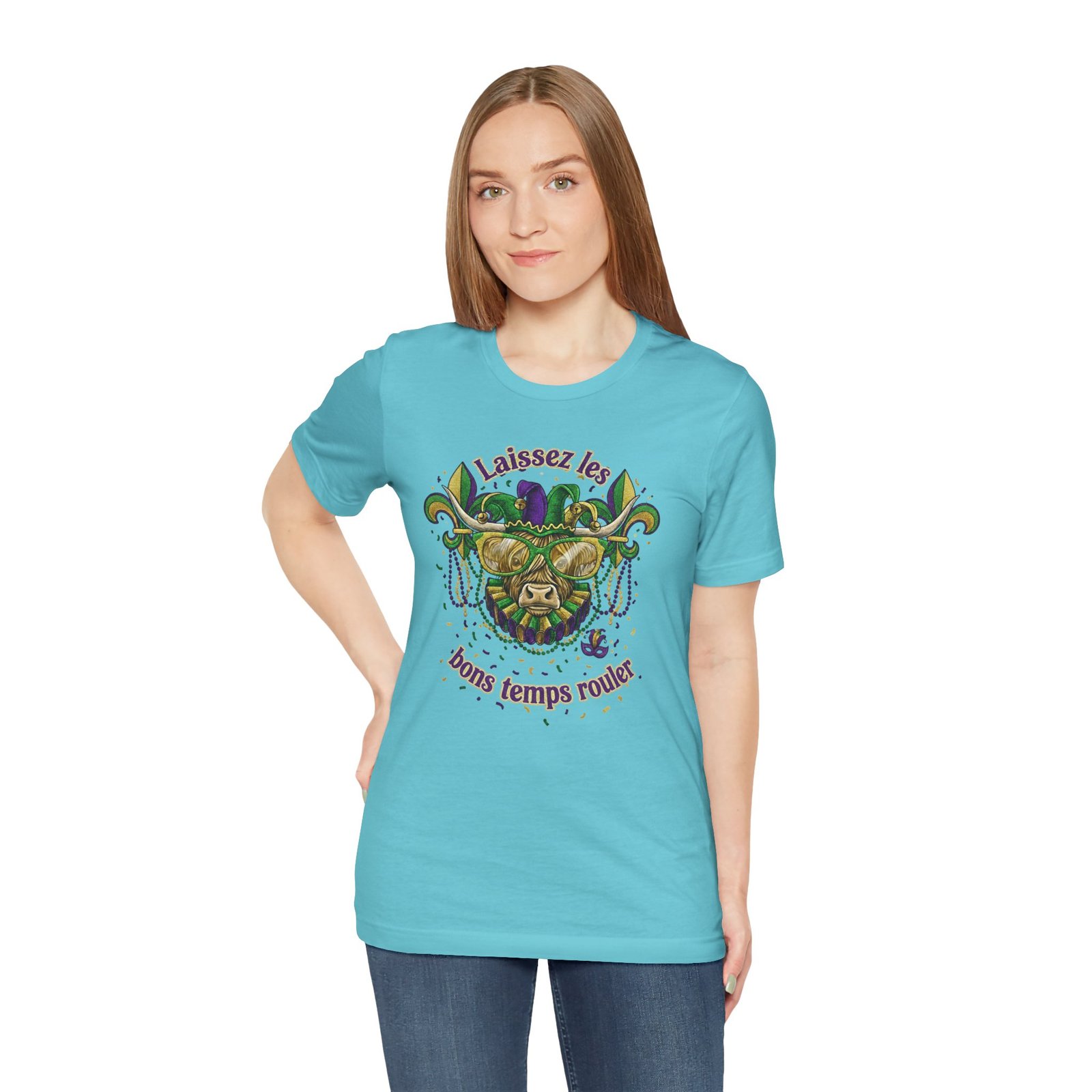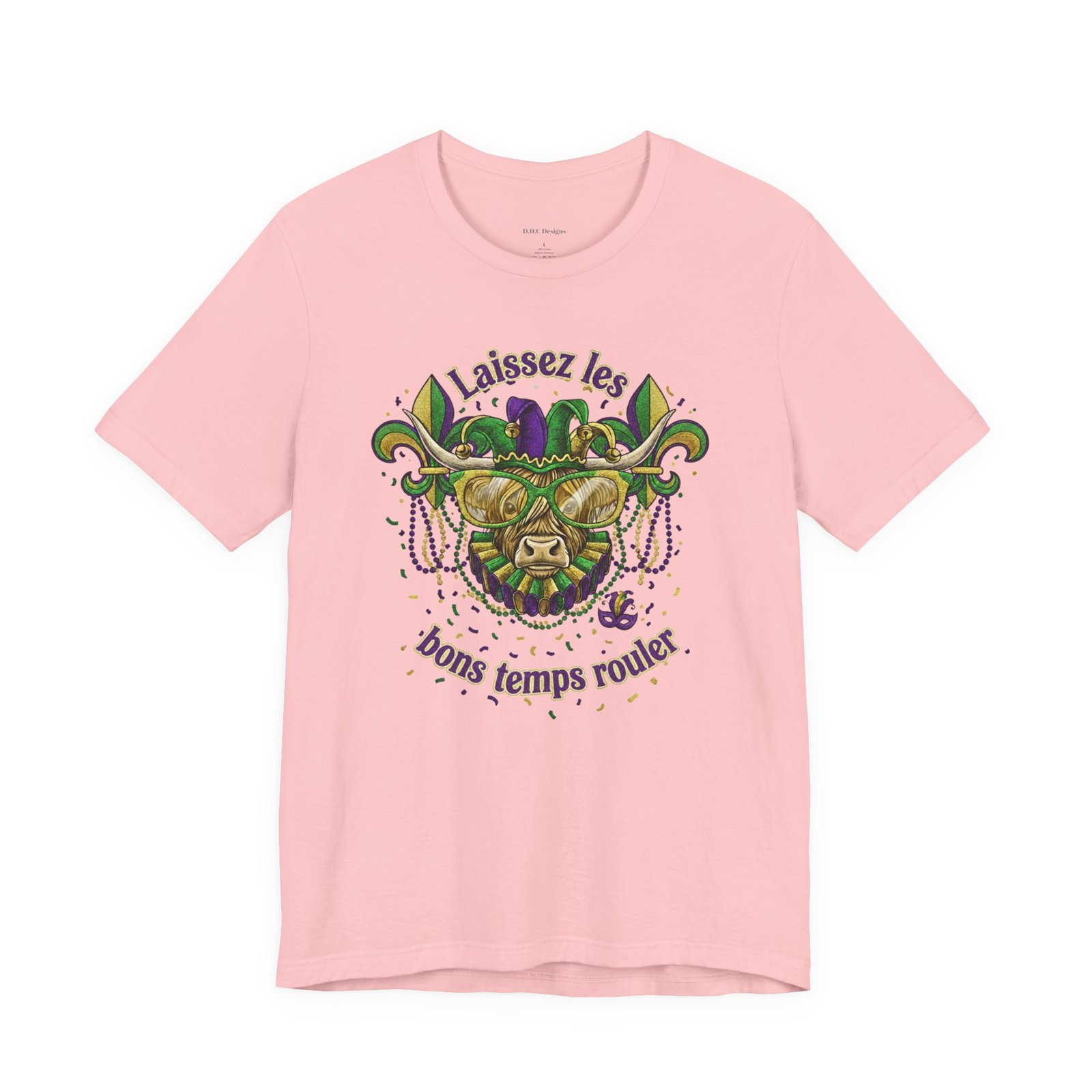 Bring Bourbon Street energy to your wardrobe with a playful Highland cow dressed for Mardi Gras. This lightweight tee feels like an instant favorite—soft, breathable cotton that moves with you through parades, porch hangs, and late-night beignets. The cow’s beads, jester hat, and sunglasses capture that mix of Cajun whimsy and country sass; wear it when you want to nod to New Orleans spirit without taking yourself too seriously. Tailored side seams and a neat crew neckline give a clean silhouette that layers easily under a denim jacket or pairs with your comfiest shorts. It’s built to keep its shape and color through repeat wears and washes, so those purple, green, and gold tones stay bright long after the confetti settles.
