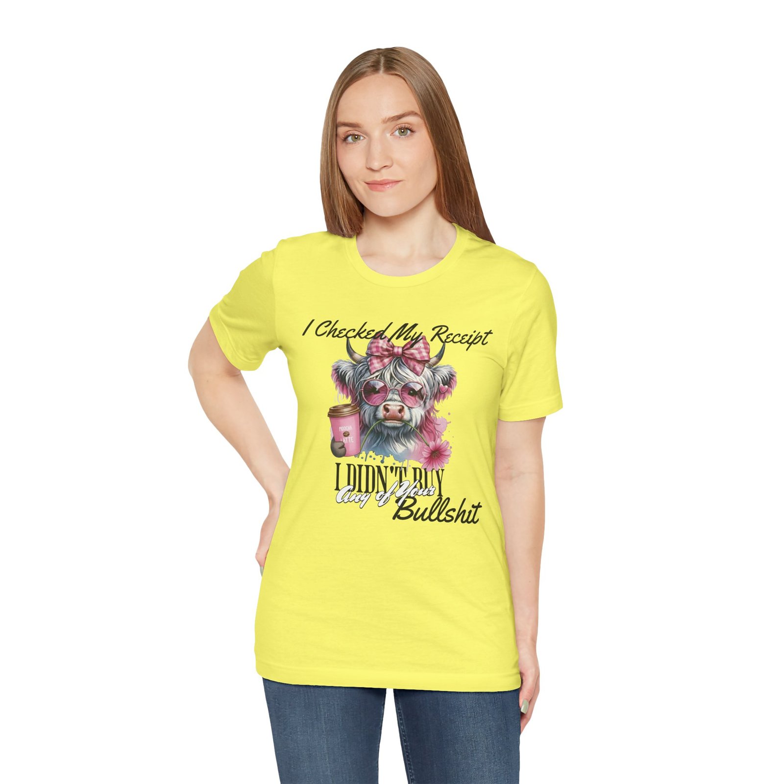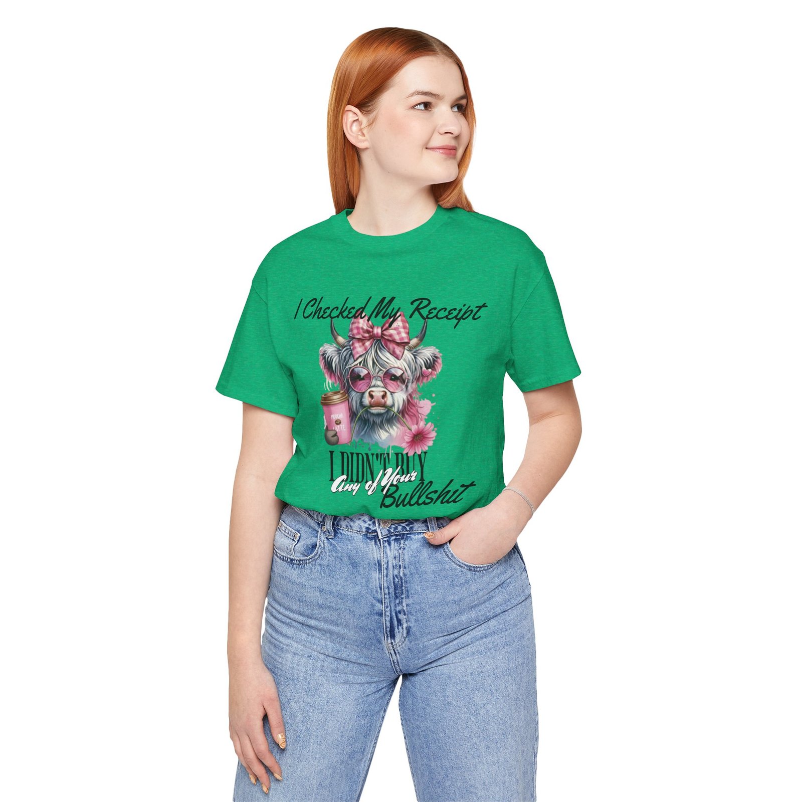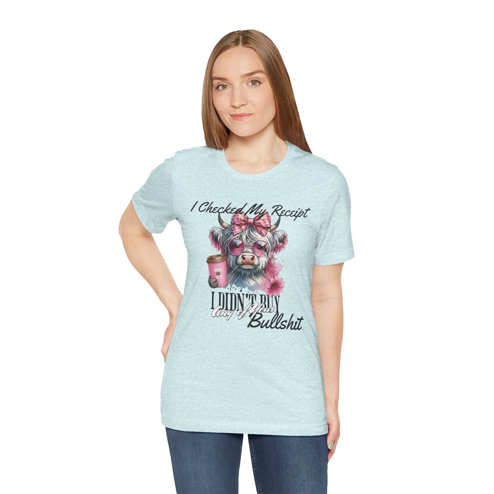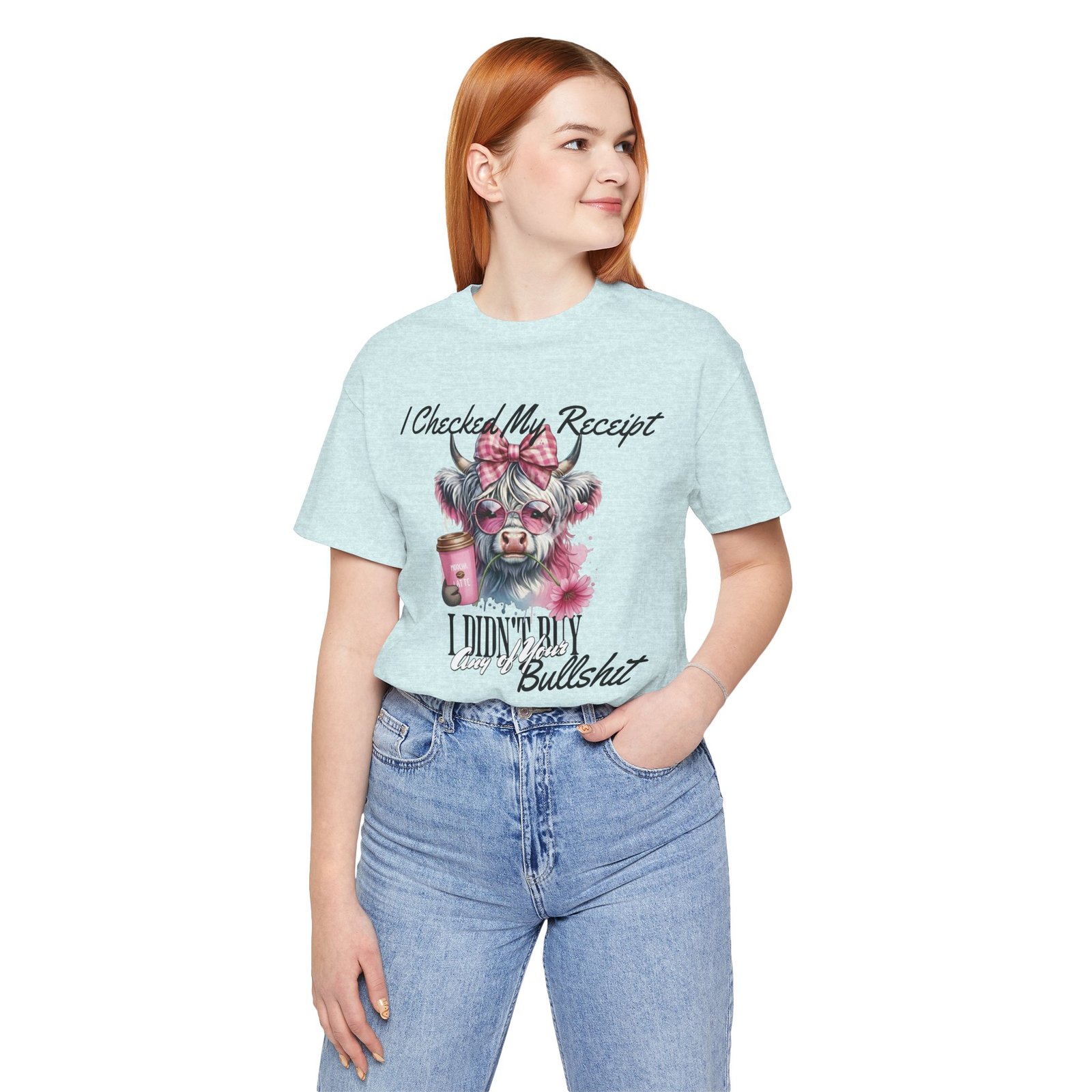 This sassy and hilarious Highland Cow T-Shirt is perfect for anyone who’s done with drama and has no time for nonsense. The watercolor-style image of a fashionable Highland cow in pink sunglasses and a checkered bow, along with the bold text, will make a statement without saying a word. It offers a comfortable fit and feels like a well-loved favorite right out of the box. Perfect for casual and semi-formal settings, this tee is relevant for those who appreciate humorous and stylish designs.
