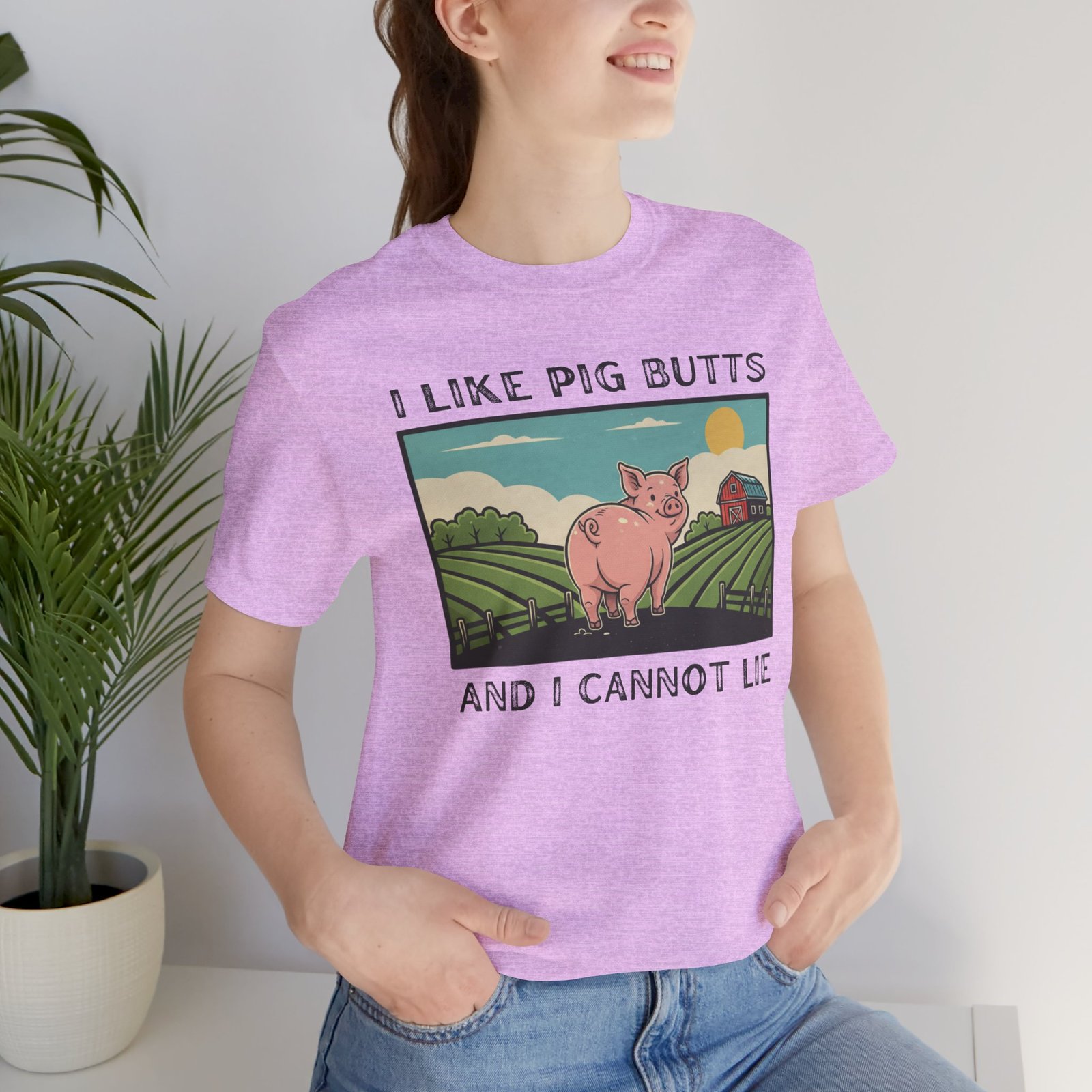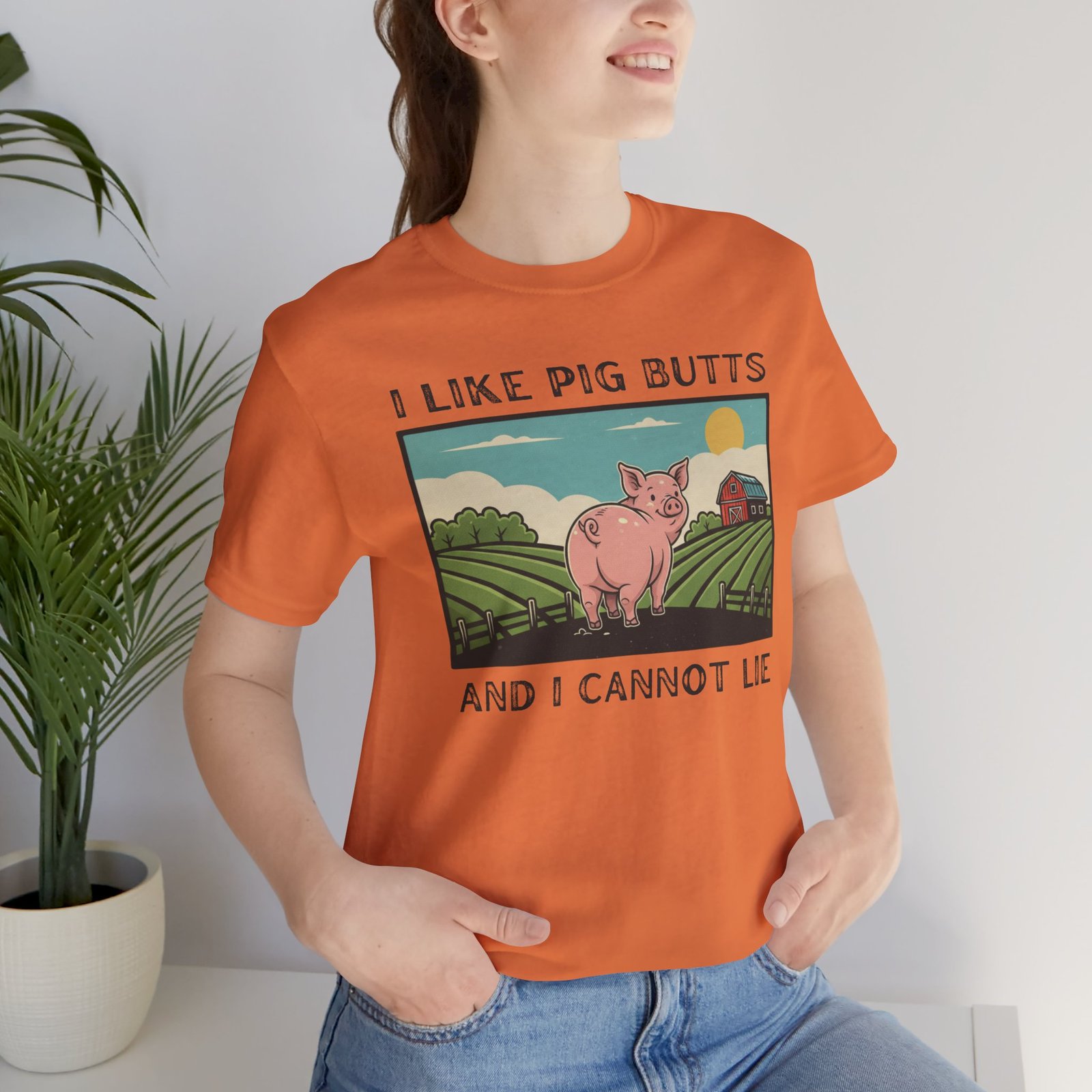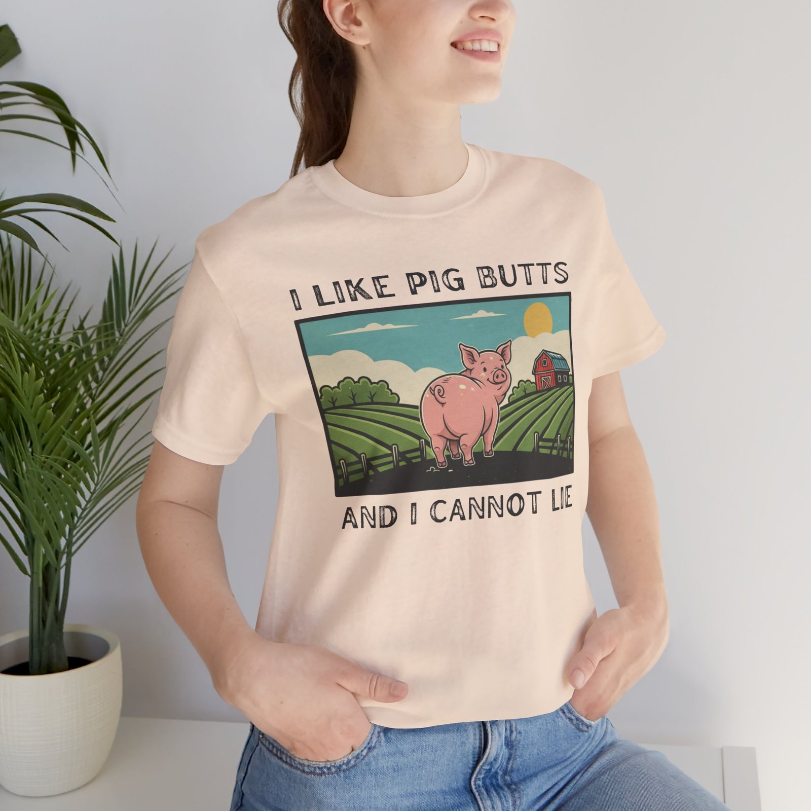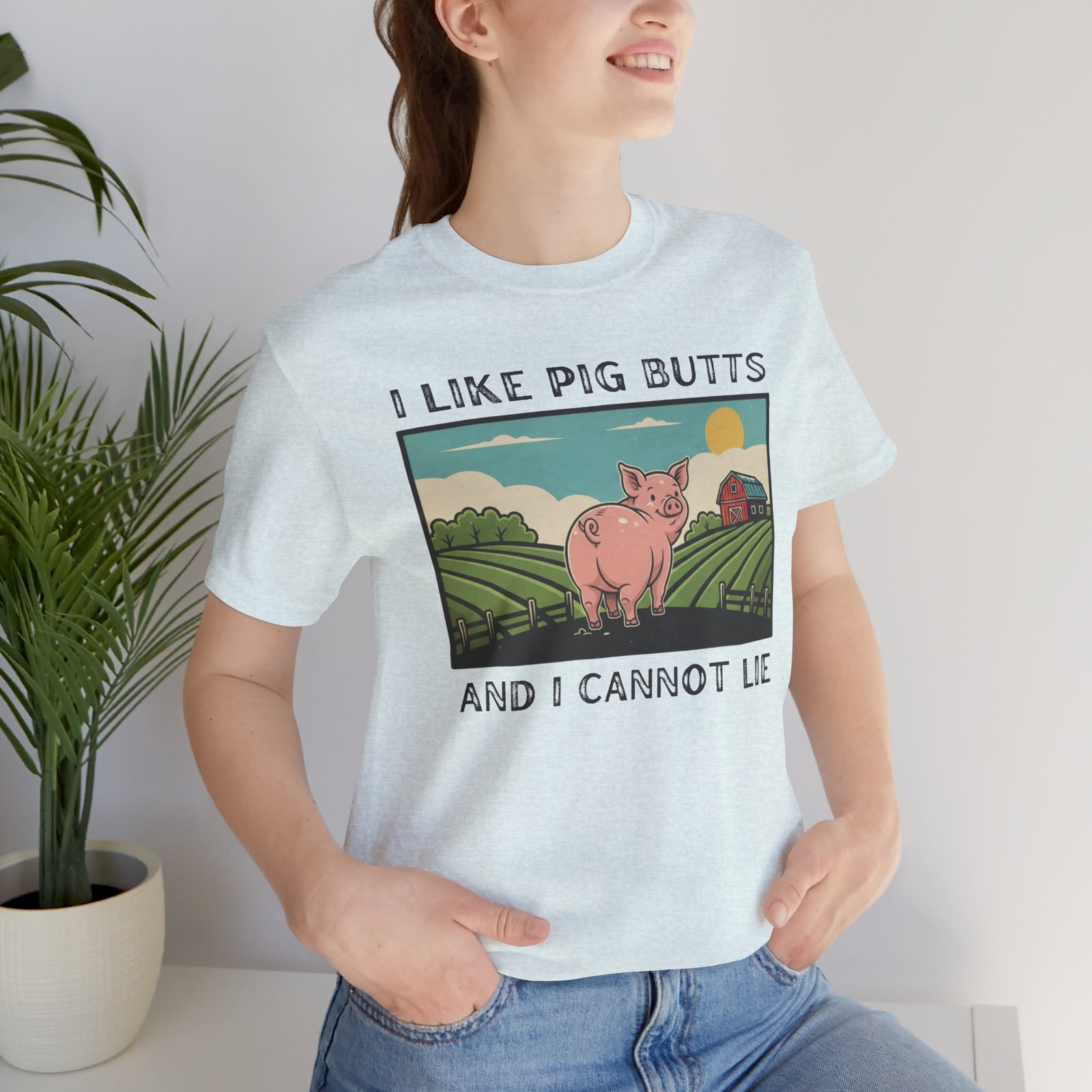I Like Pig Butts, pig Lover’s Tee Shirt, Funny Pig Pun Graphic Top Gift for Farmers, 90s Humor, Unisex Jersey Short Sleeve, White Tee