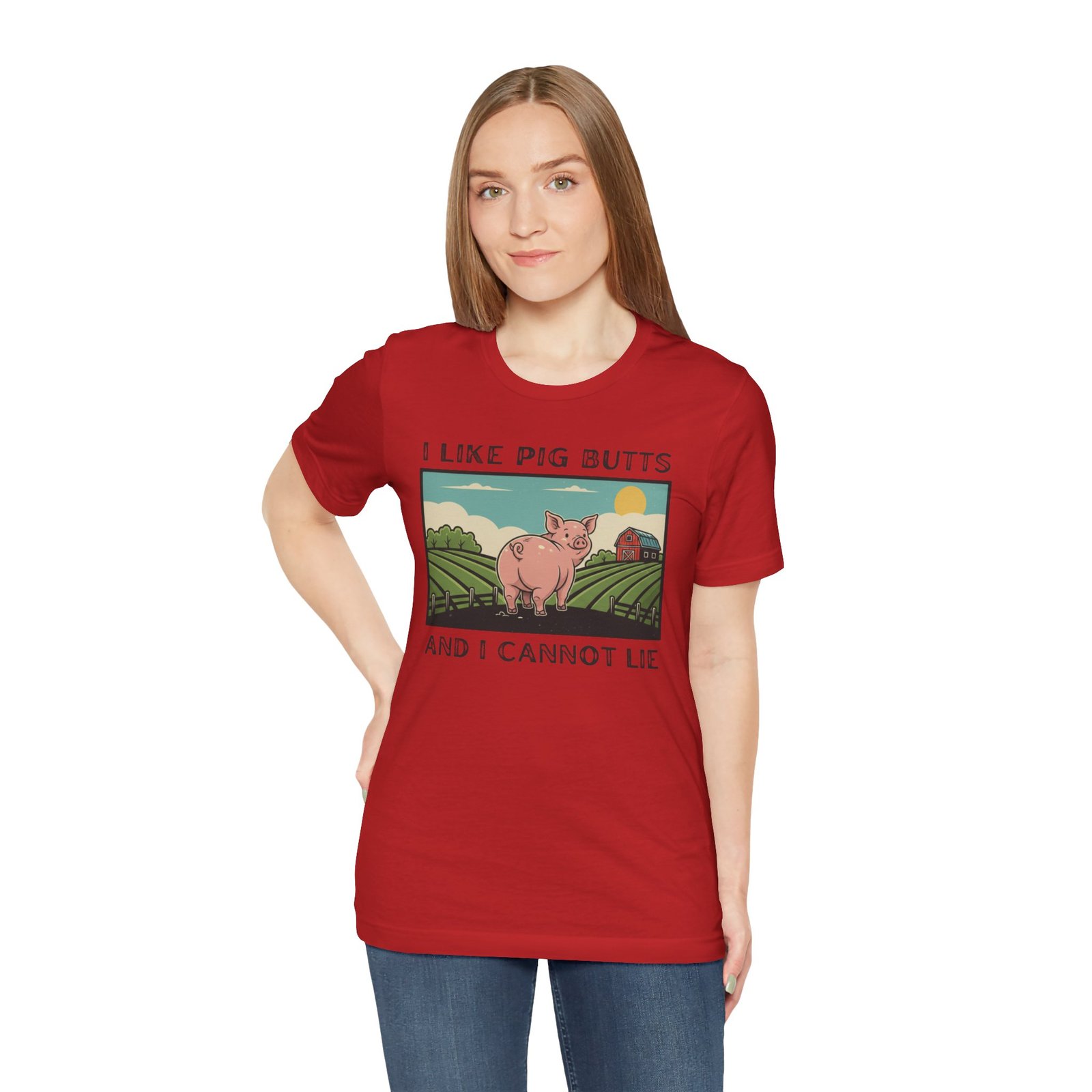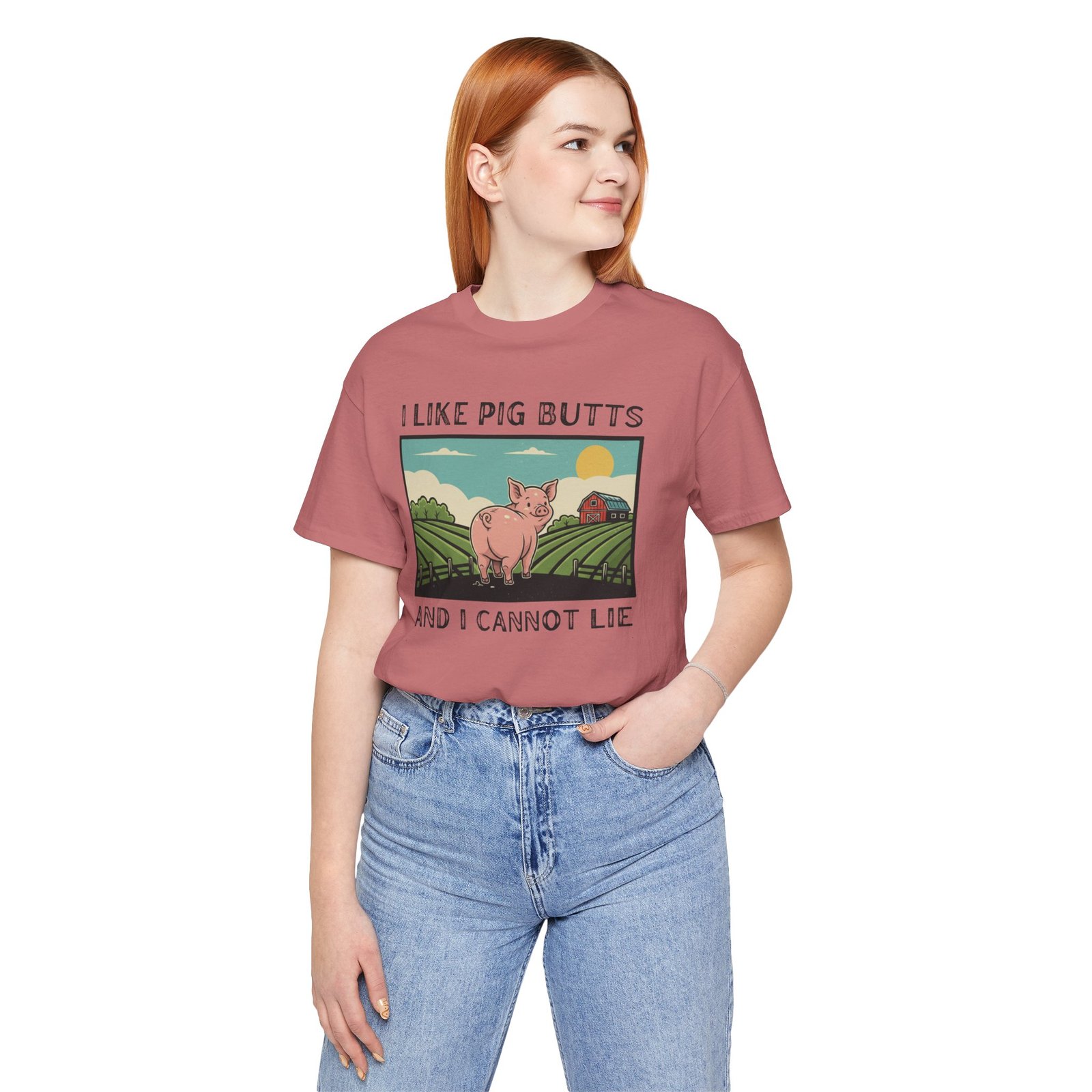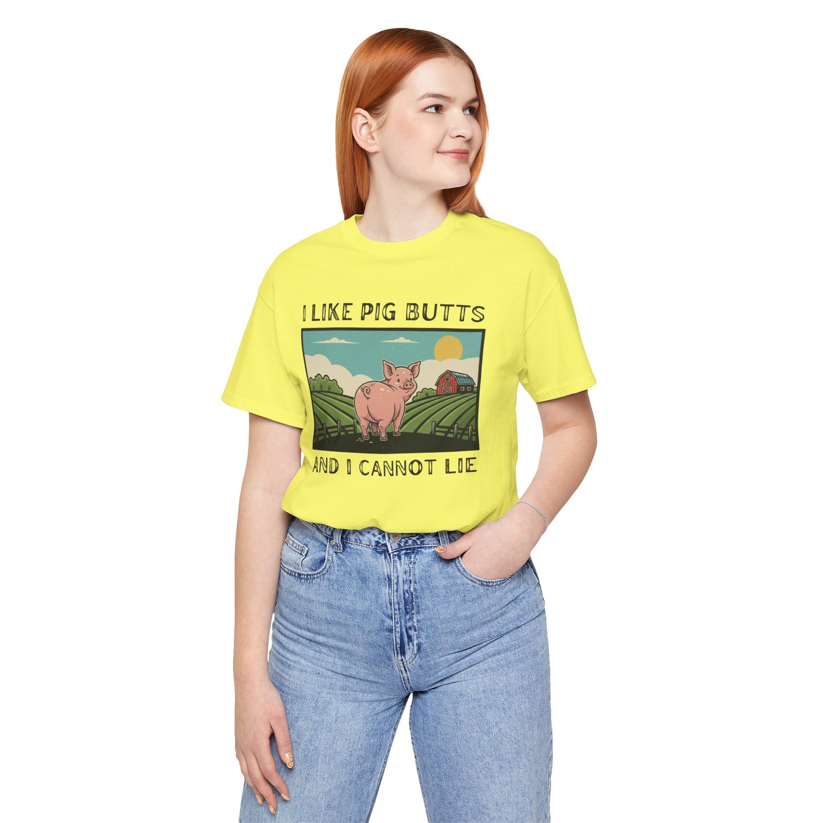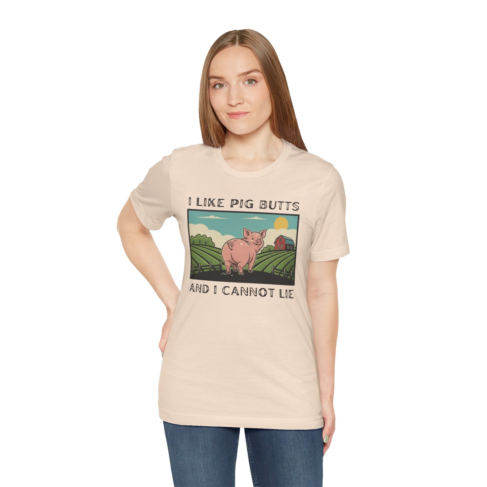 I Like Pig Butts, pig Lover’s Tee Shirt, Funny Pig Pun Graphic Top Gift for Farmers, 90s Humor, Unisex Jersey Short Sleeve, White Tee