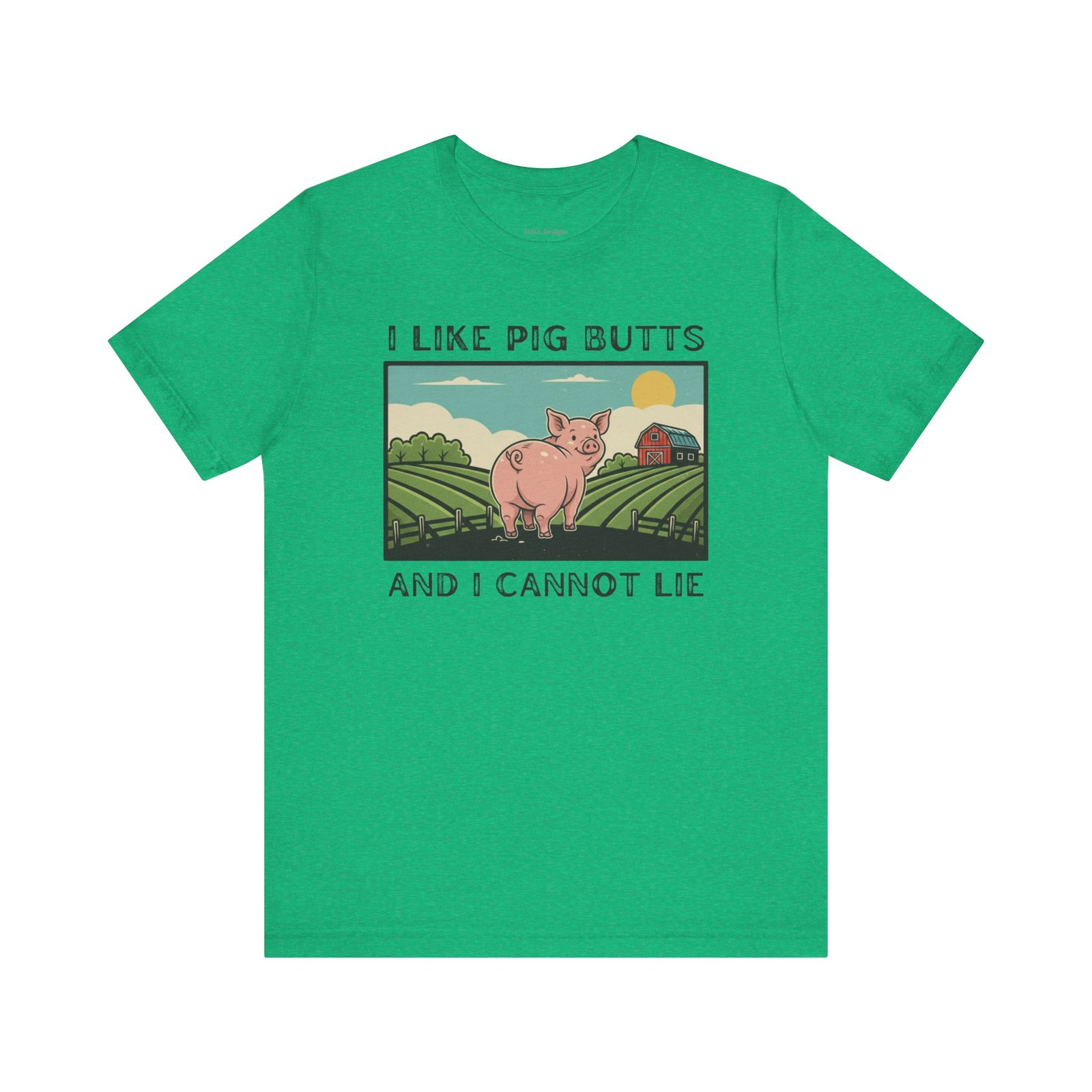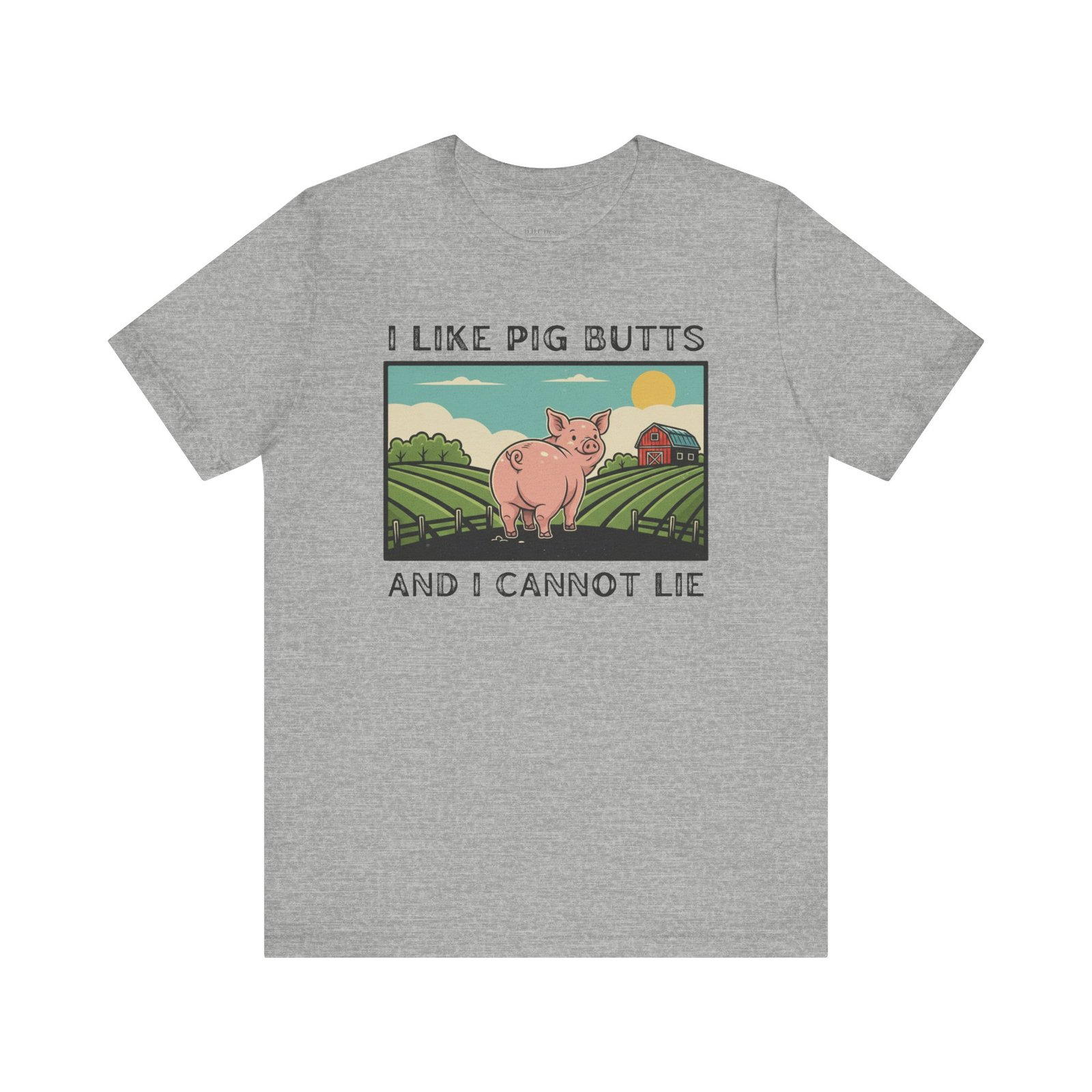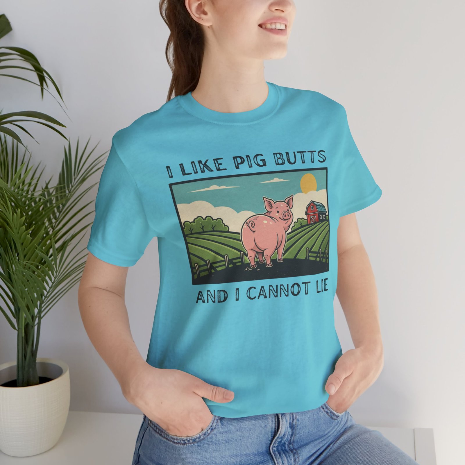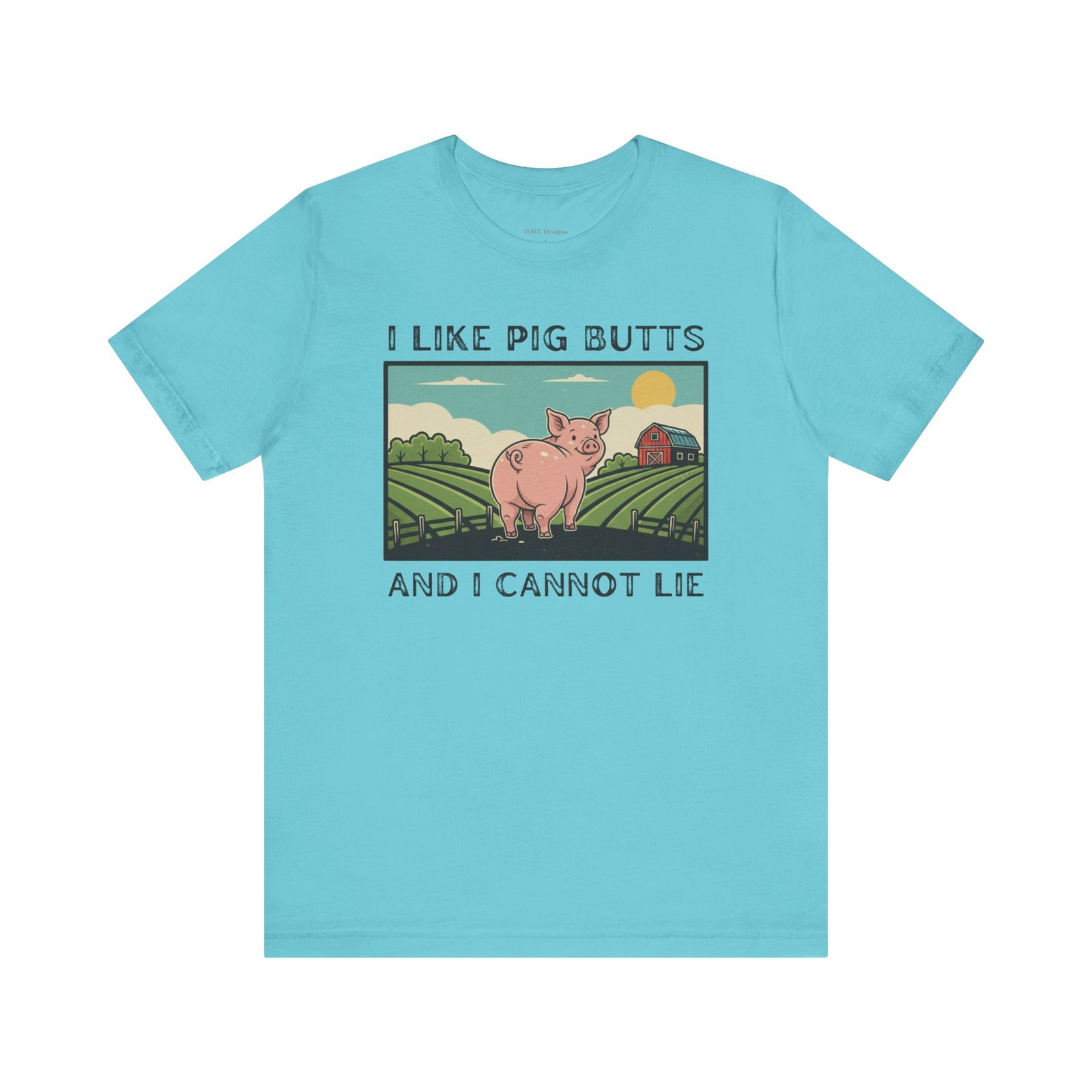 A playful and humorous T-shirt for pig lovers, featuring a cute cartoon pig with the iconic line ‘I like pig butts and I cannot lie’. Perfect for gift-giving to pig lovers, farmers, or anyone with a sense of humor. The design exudes a fun and cheeky vibe, ideal for casual outings and gatherings.