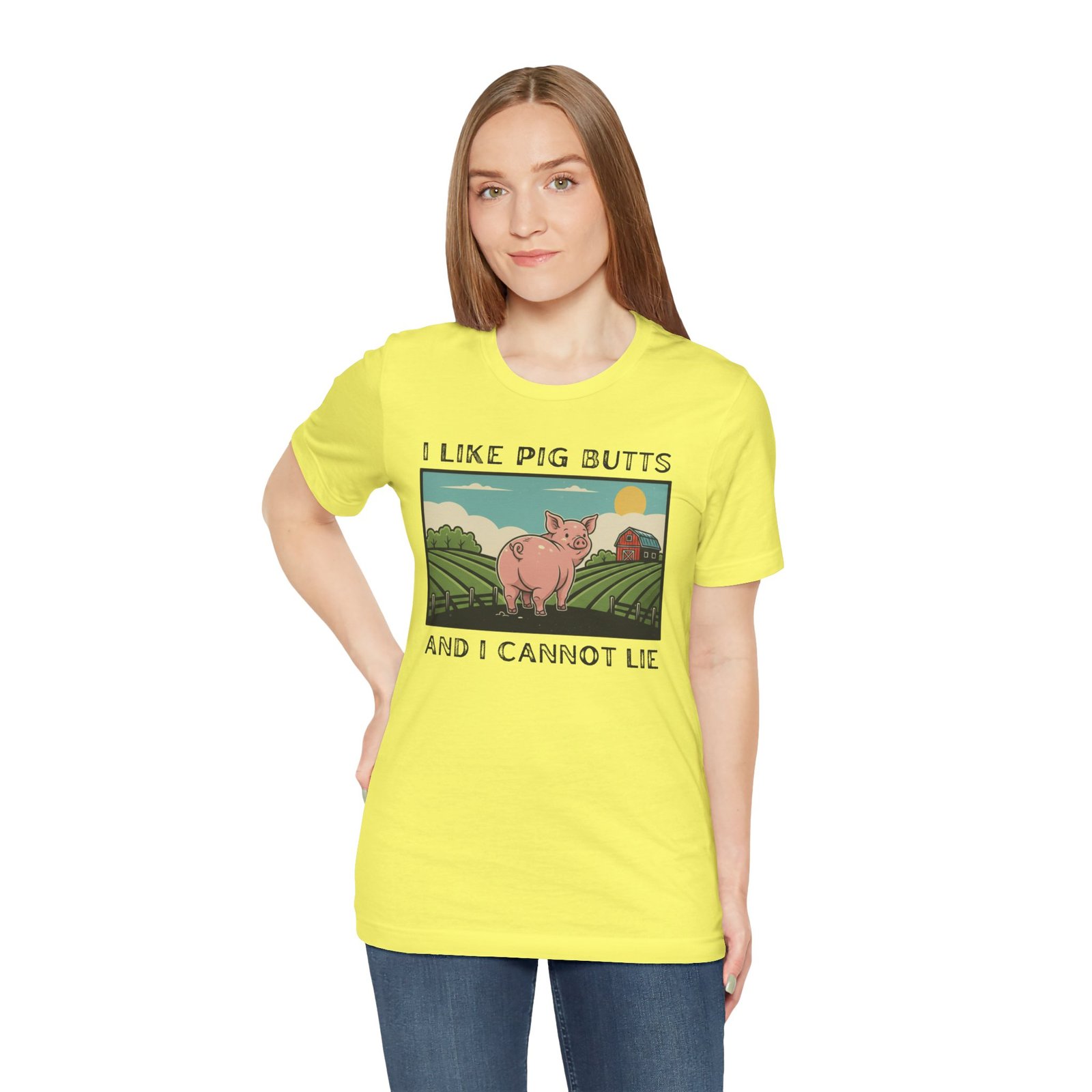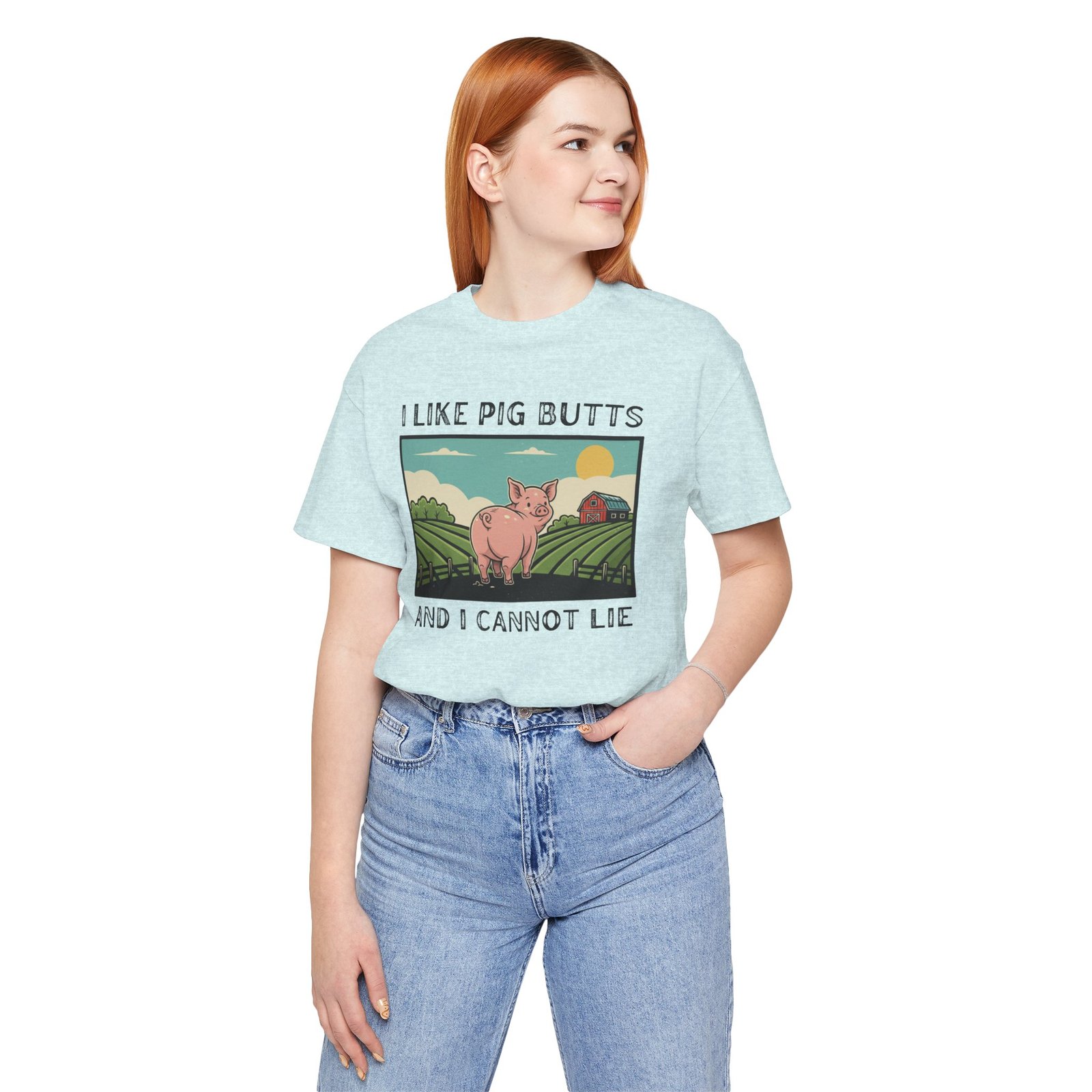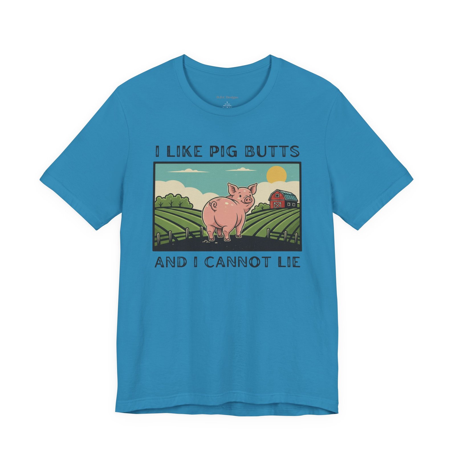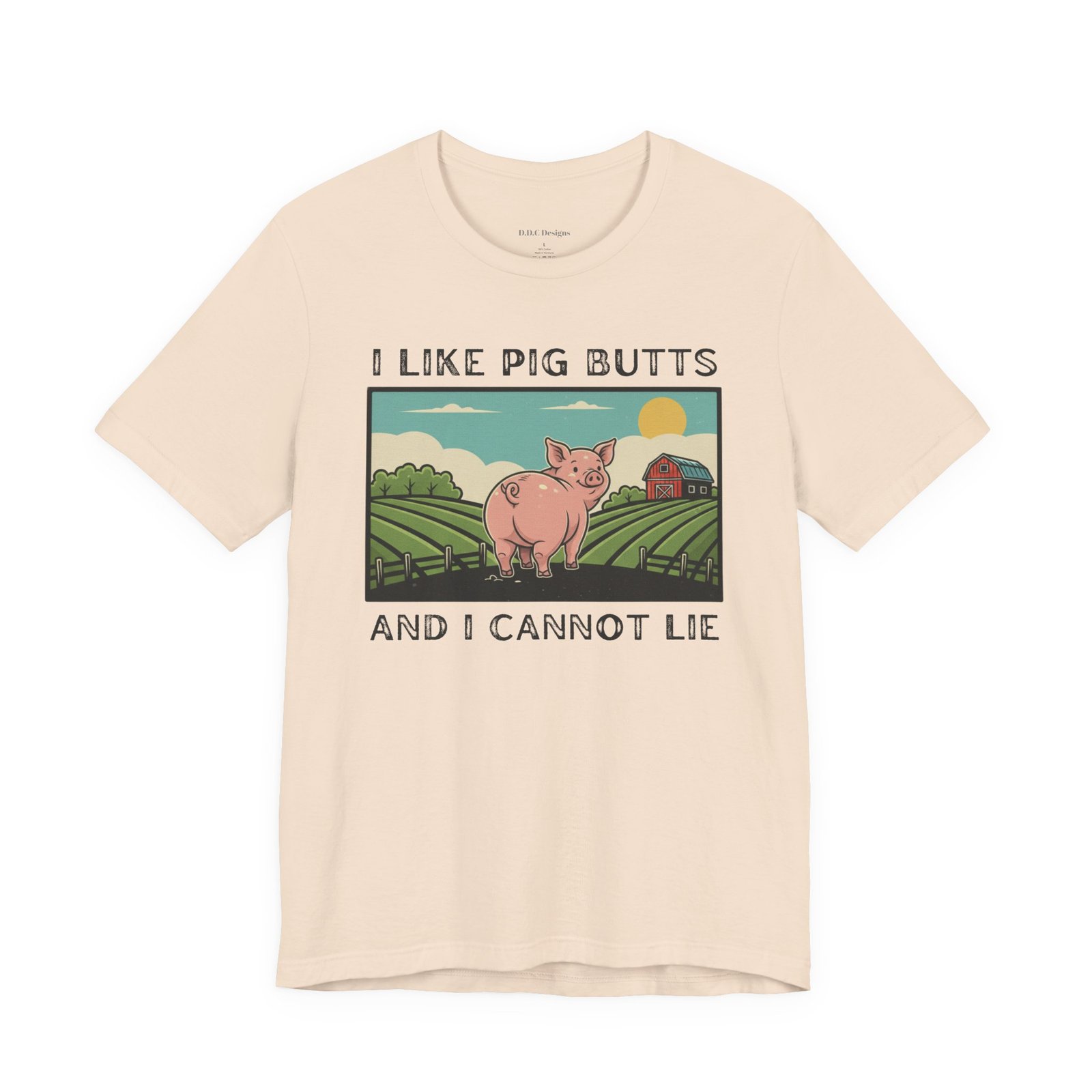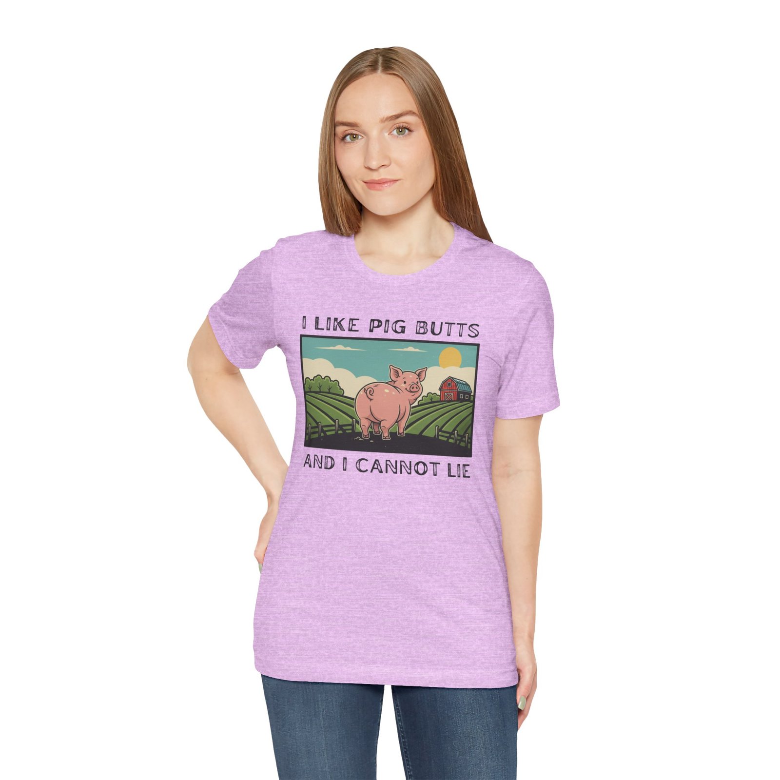 A playful and humorous T-shirt for pig lovers, featuring a cute cartoon pig with the iconic line ‘I like pig butts and I cannot lie’. Perfect for gift-giving to pig lovers, farmers, or anyone with a sense of humor. The design exudes a fun and cheeky vibe, ideal for casual outings and gatherings.