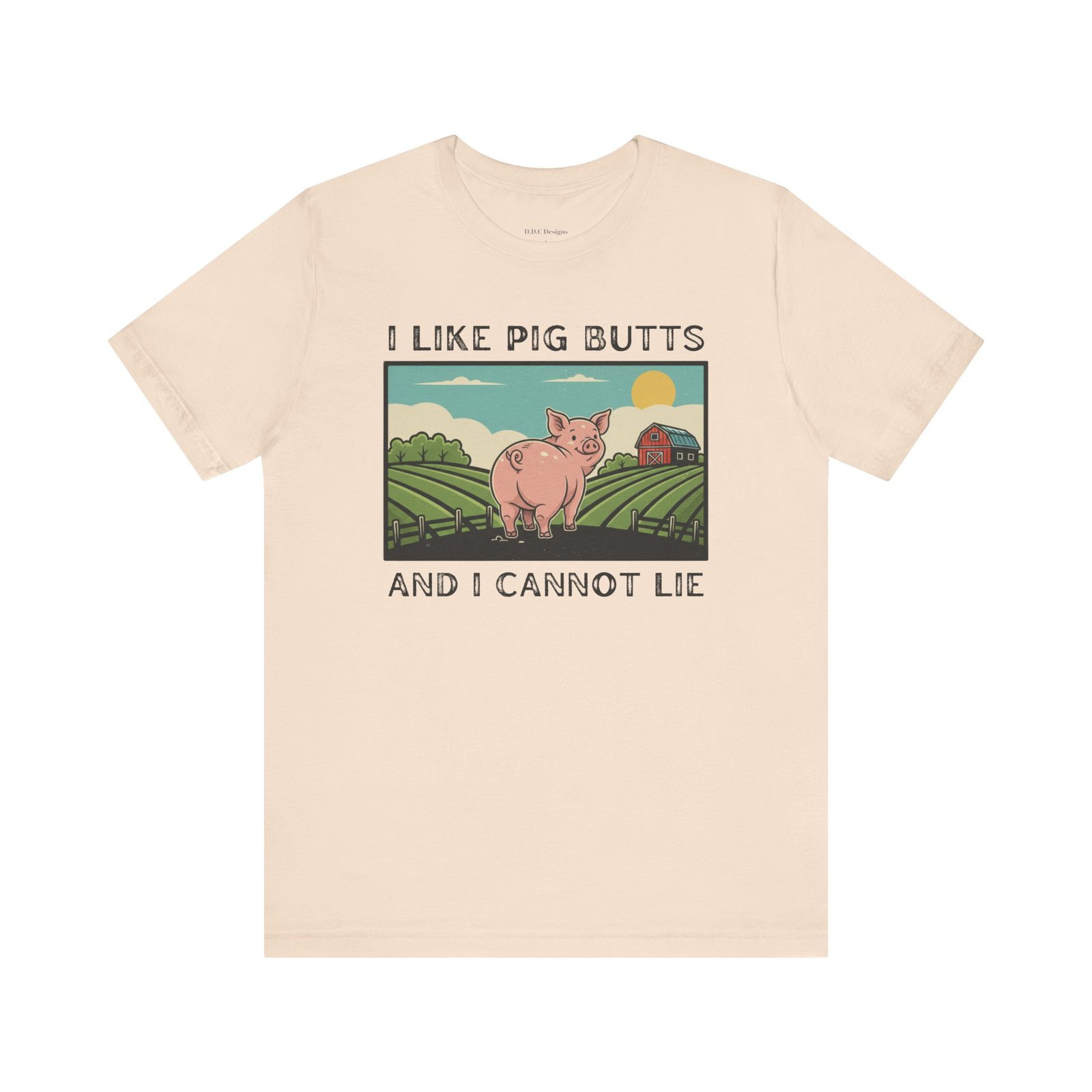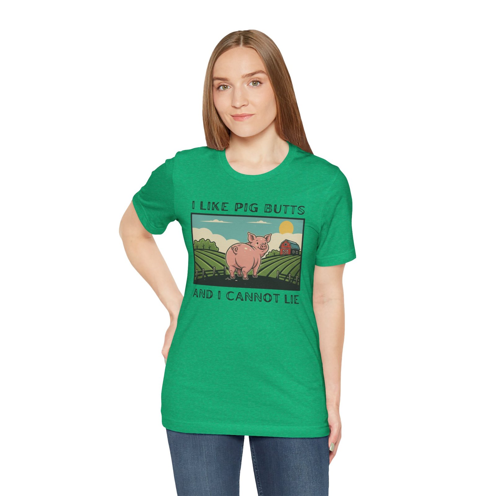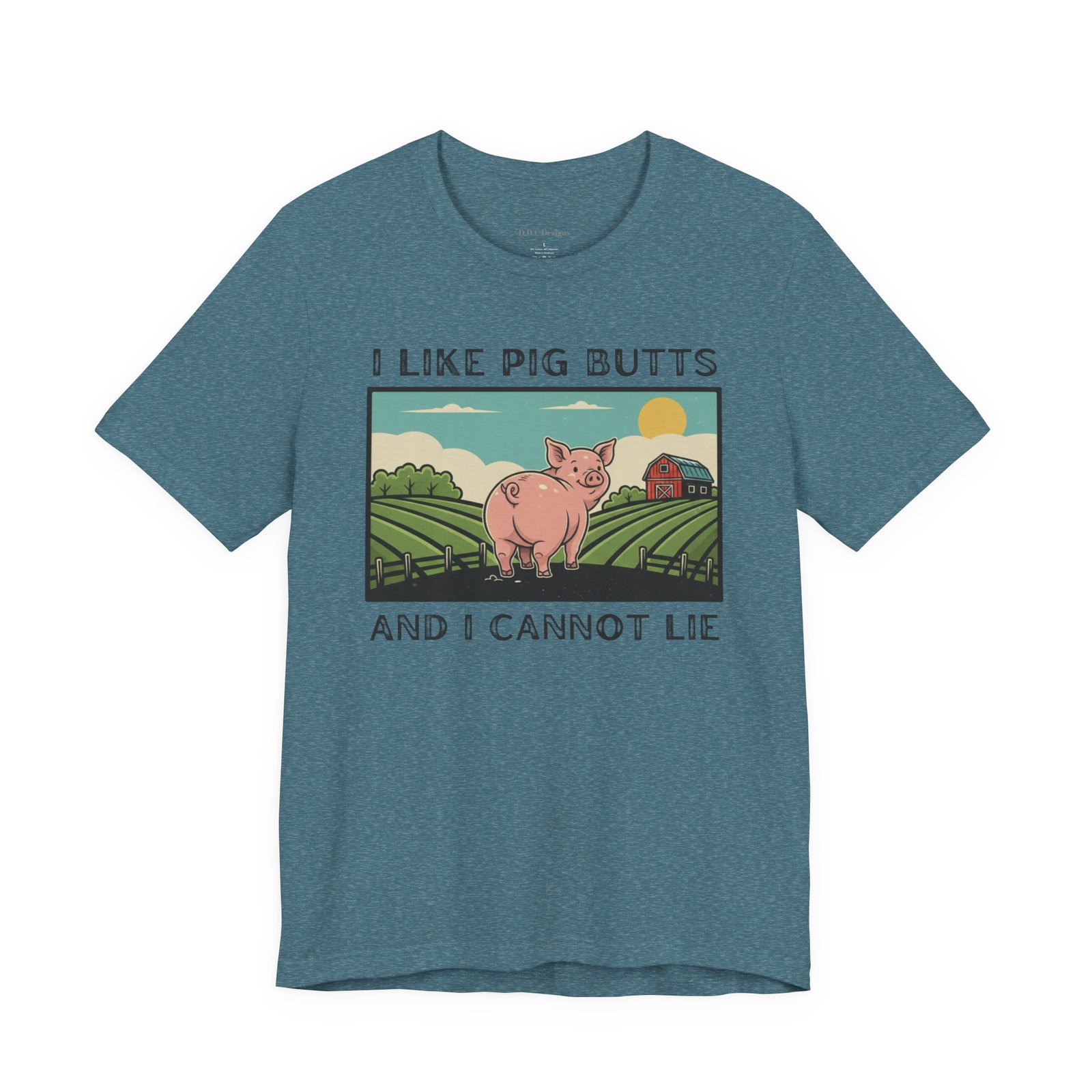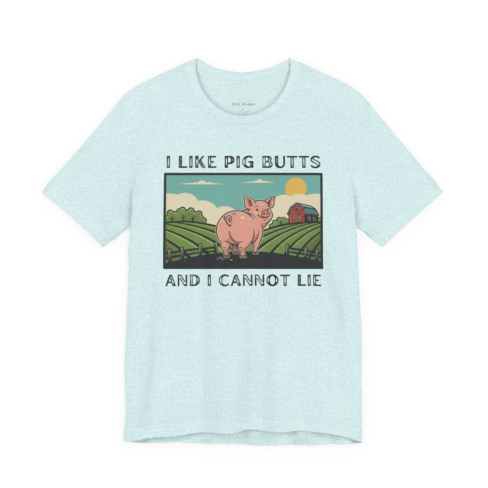 A playful and humorous T-shirt for pig lovers, featuring a cute cartoon pig with the iconic line ‘I like pig butts and I cannot lie’. Perfect for gift-giving to pig lovers, farmers, or anyone with a sense of humor. The design exudes a fun and cheeky vibe, ideal for casual outings and gatherings.