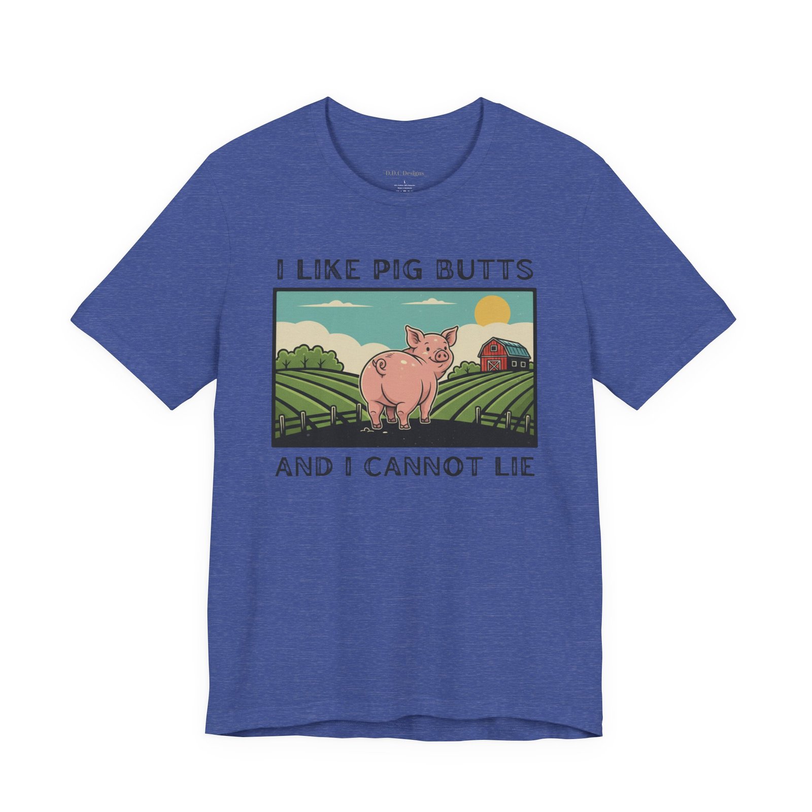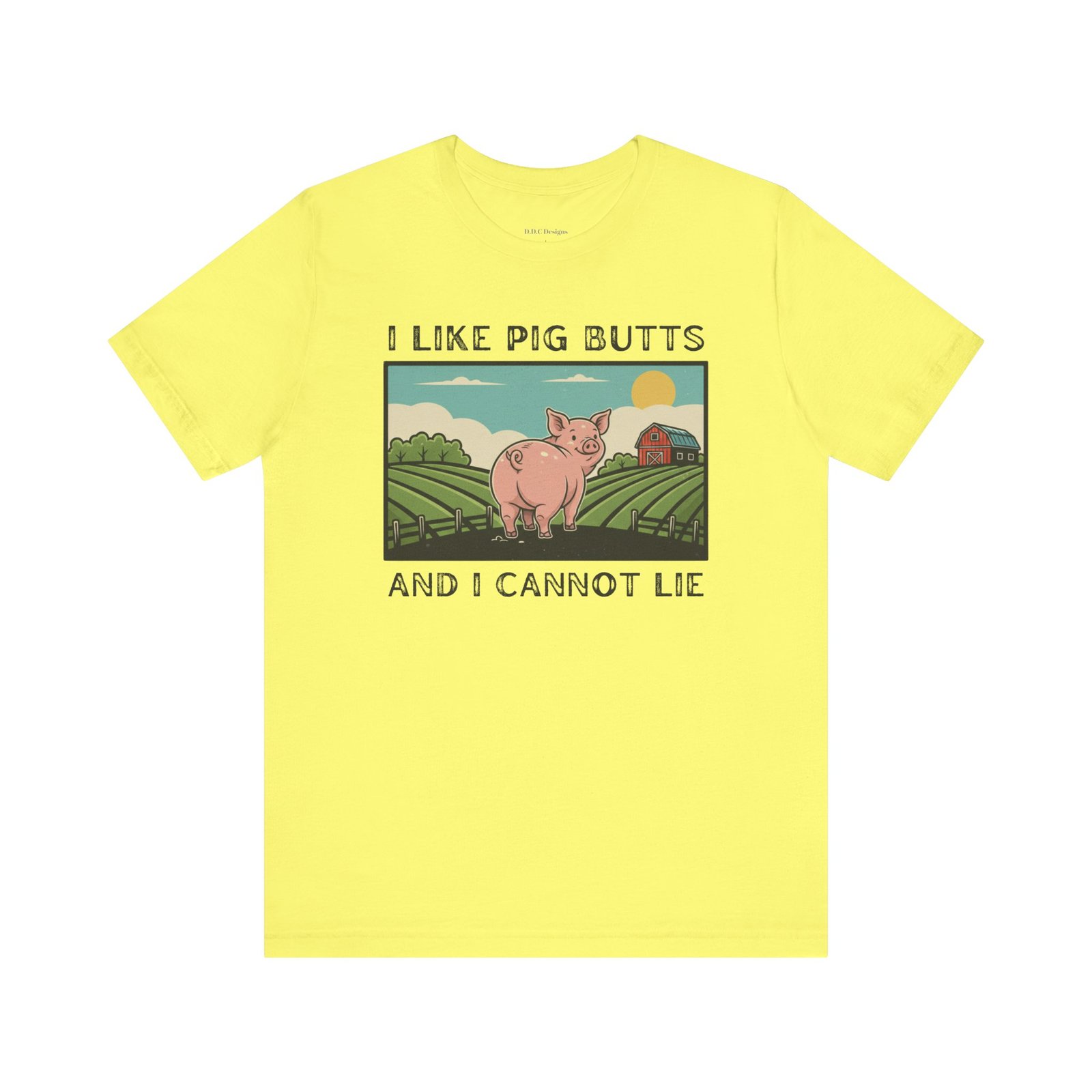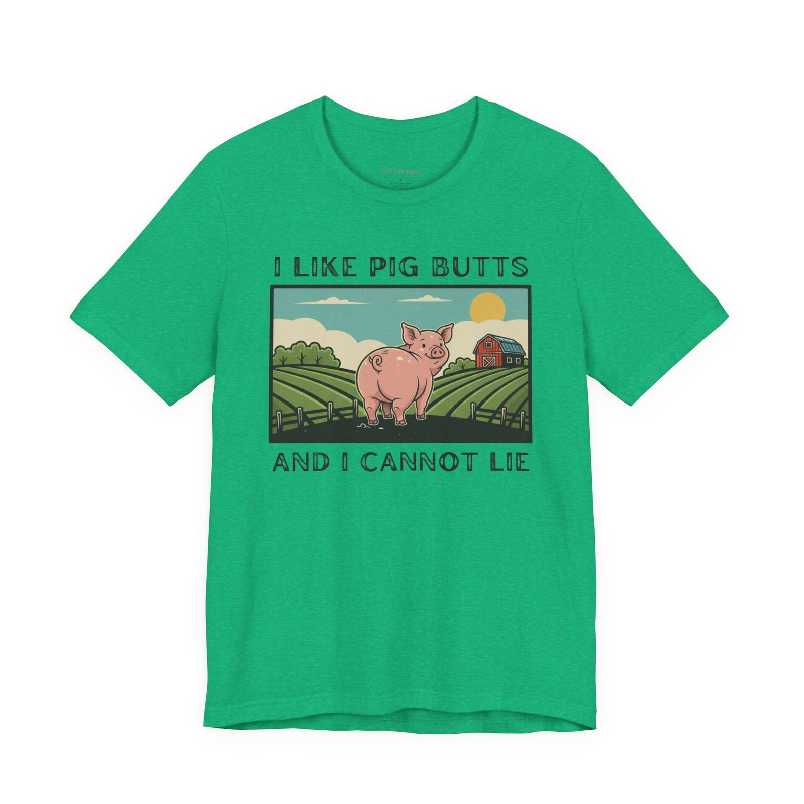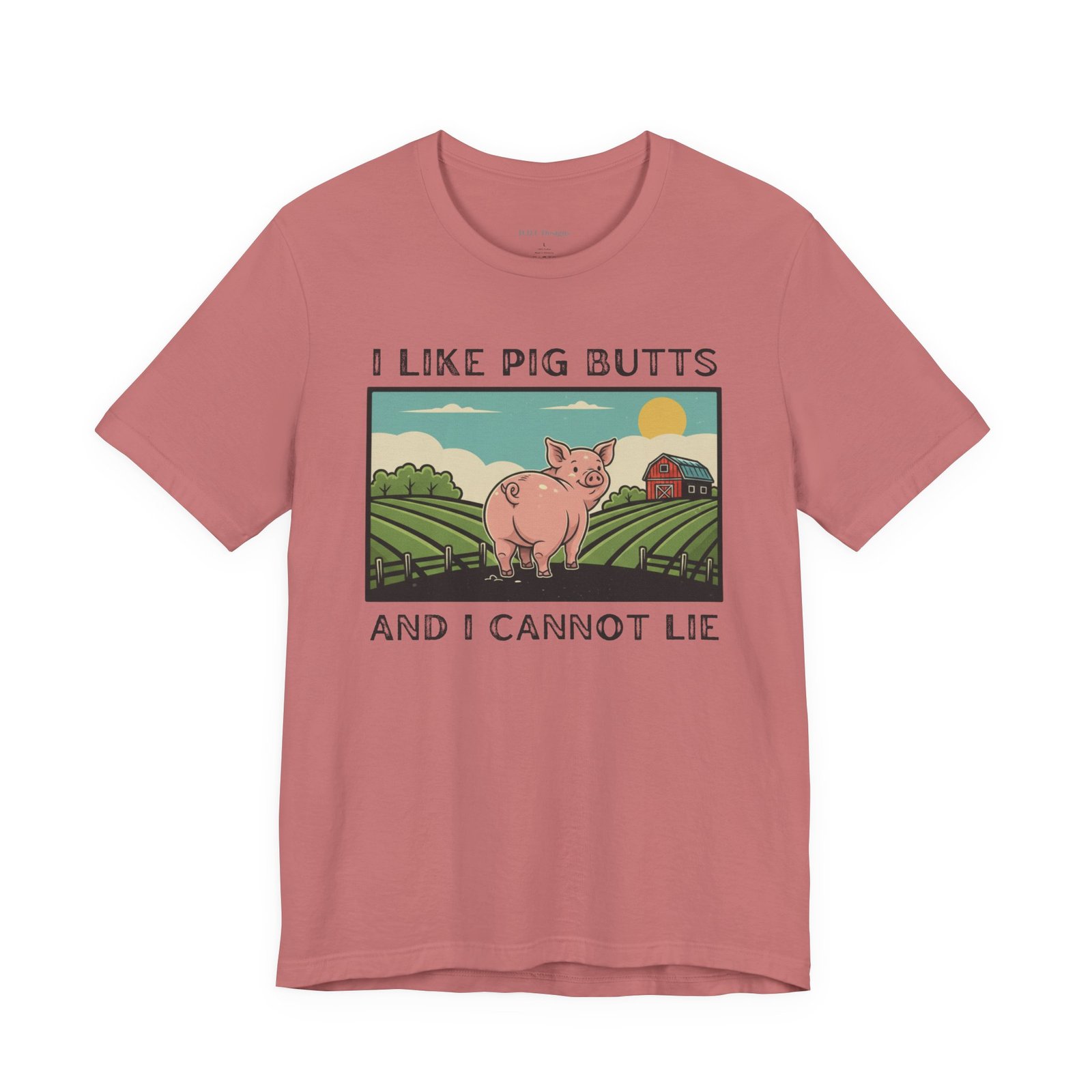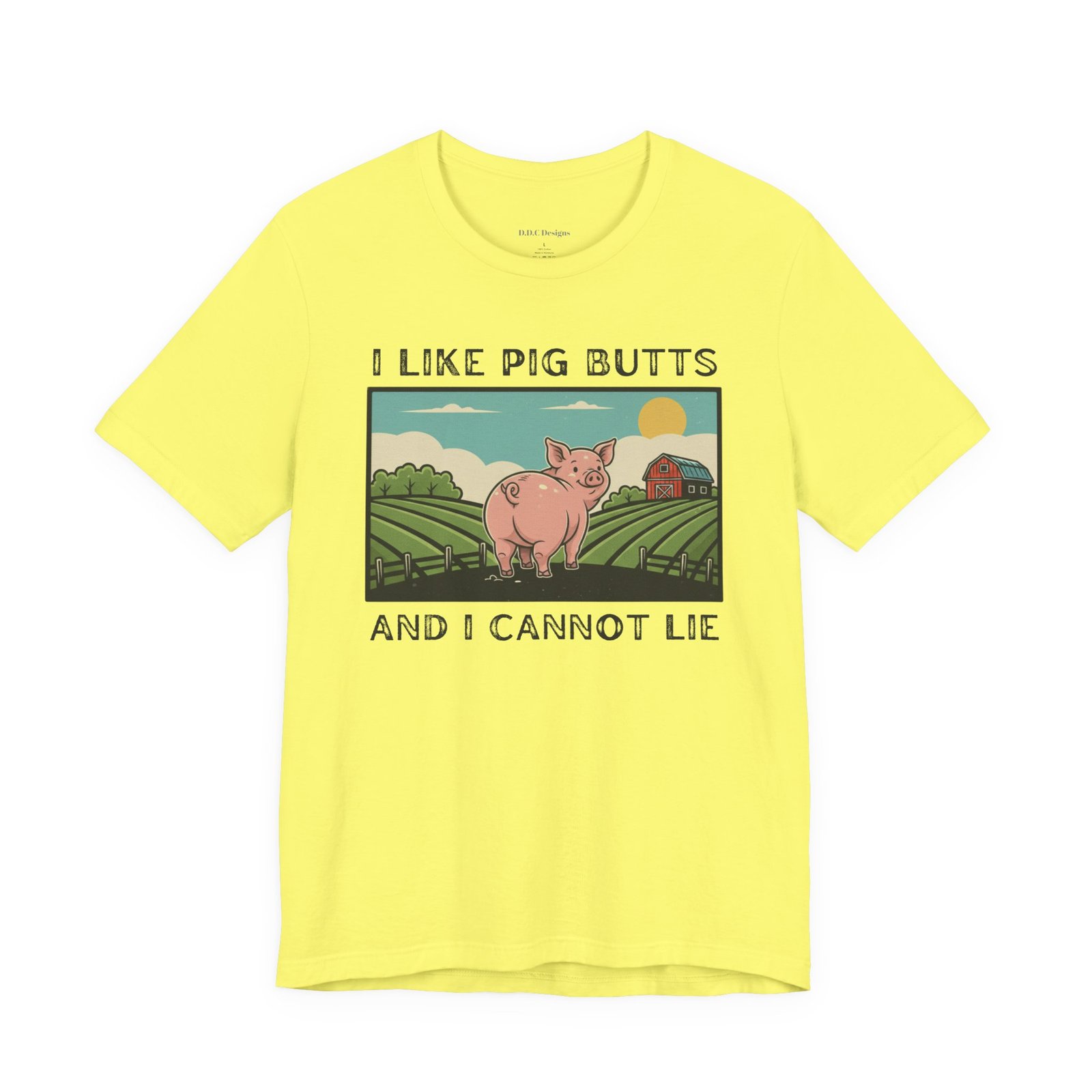 A playful and humorous T-shirt for pig lovers, featuring a cute cartoon pig with the iconic line ‘I like pig butts and I cannot lie’. Perfect for gift-giving to pig lovers, farmers, or anyone with a sense of humor. The design exudes a fun and cheeky vibe, ideal for casual outings and gatherings.