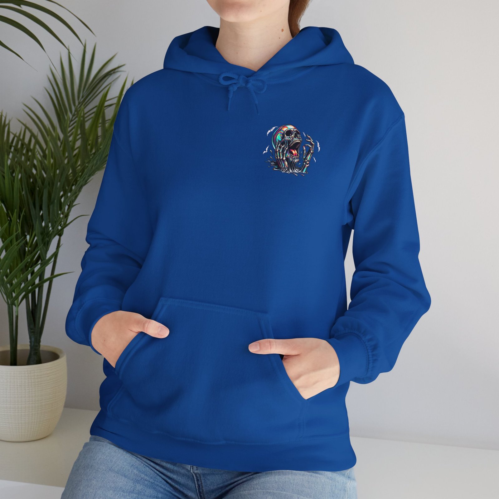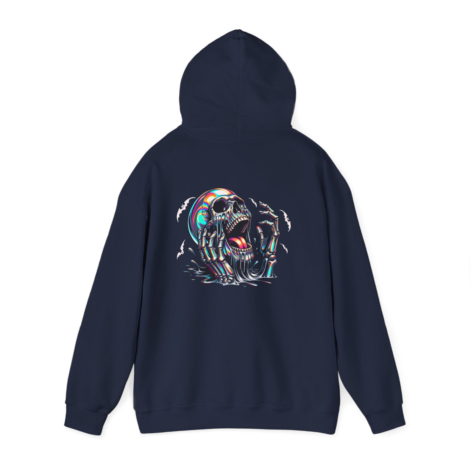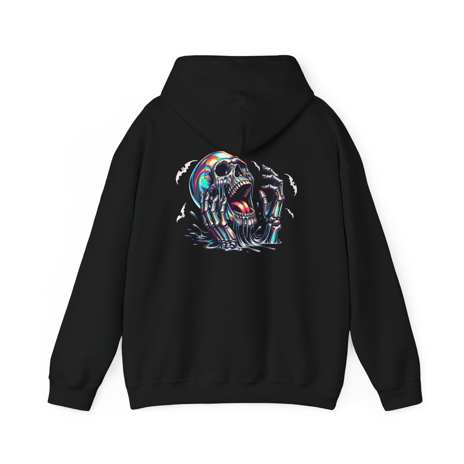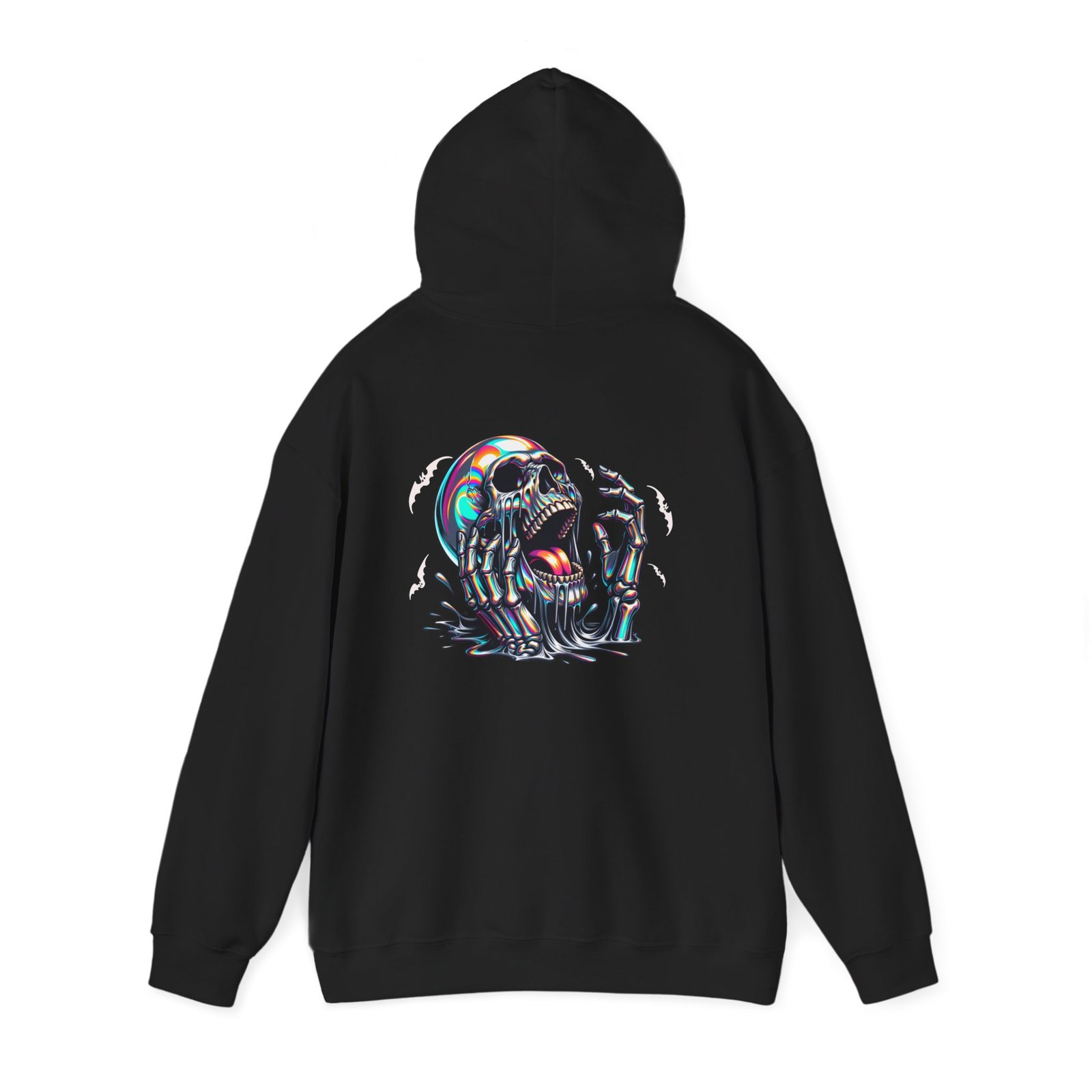Stay cozy and stylish in this iridescent color skeleton unisex Gildan hoodie perfect for Halloween. This hoodie gives off a spooky vibe and is ideal for anyone looking to add a touch of Halloween spirit to their wardrobe. Great for adults looking for a comfortable and festive hoodie to wear during the spooky season.