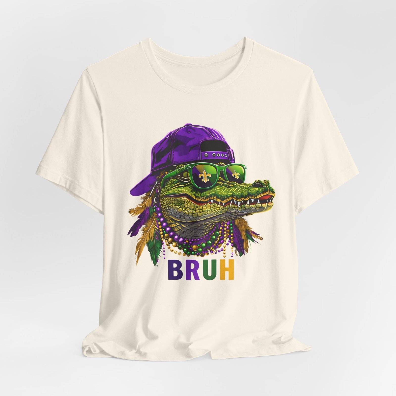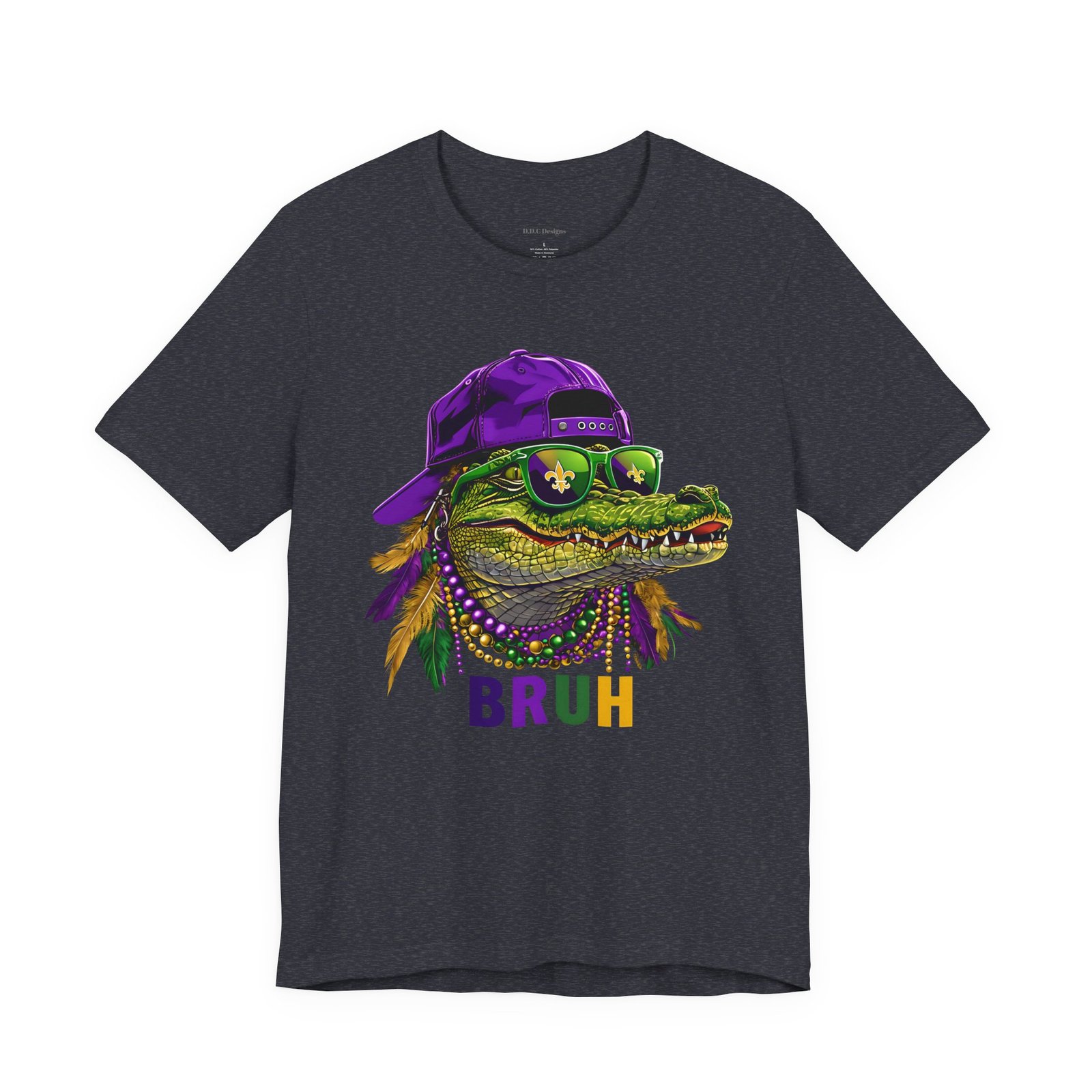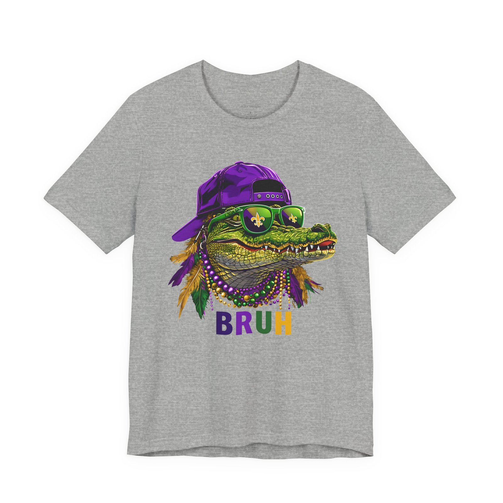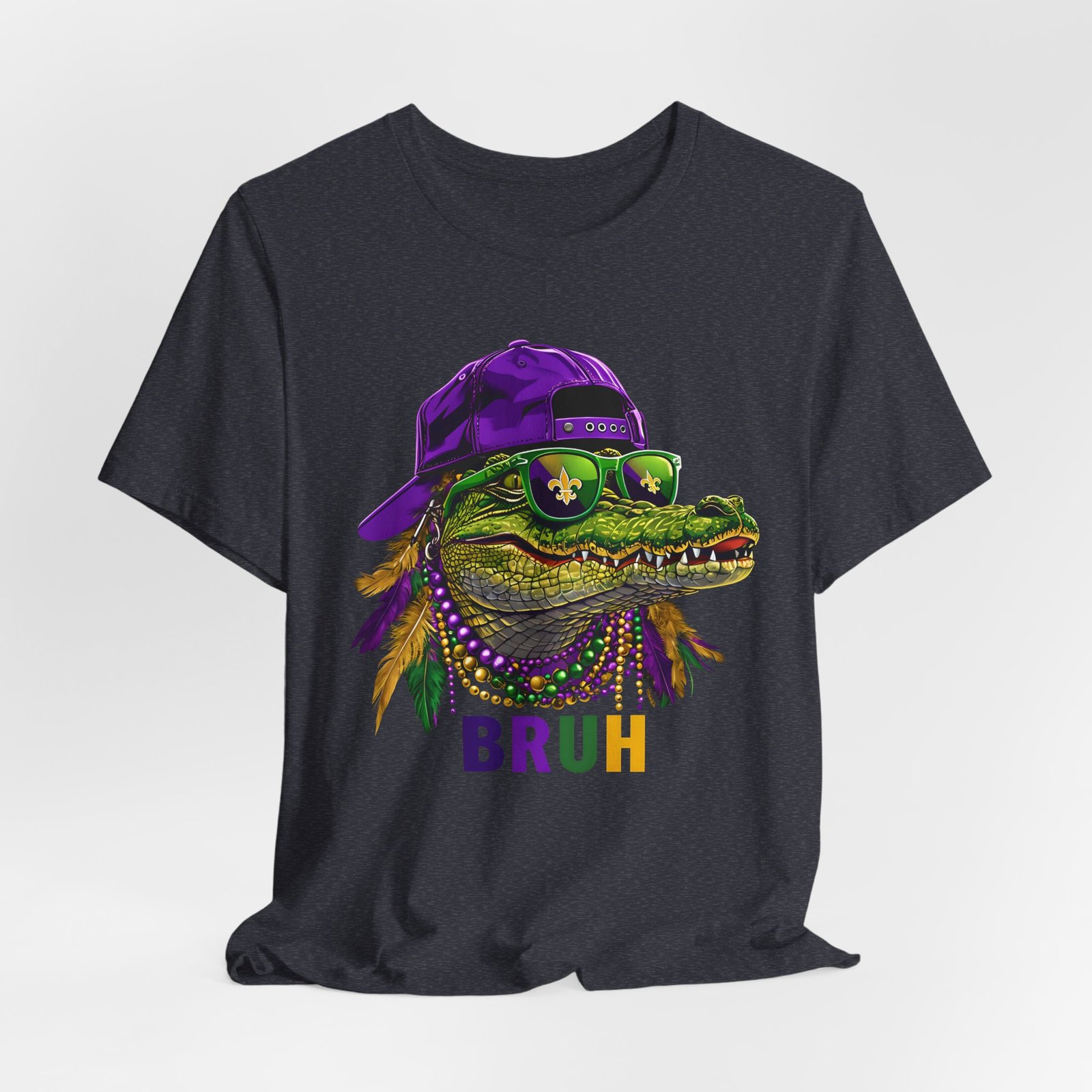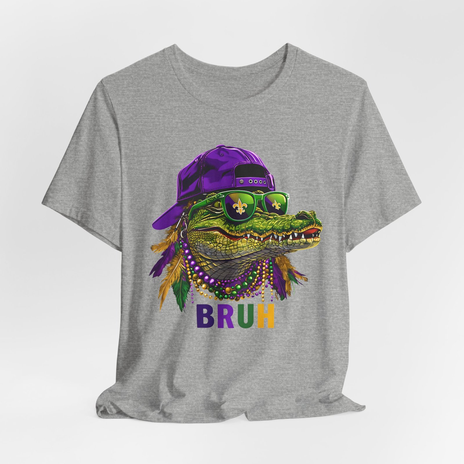 This lightweight jersey tee channels New Orleans swagger with a playful, Mardi Gras-ready alligator wearing purple, gold and green—complete with beads, a fleur-de-lis, and bold “BRUH” lettering. Soft Airlume combed and ring-spun cotton gives it a comfortable, broken-in feel from the first wear, while the retail fit and crew neckline keep the look tidy whether you’re on Bourbon Street or at a backyard crawfish boil. The graphic’s high-definition print stays bright through parades and wash cycles, and thoughtful construction—side seams, shoulder tape, and a tear-away label—makes it dependable for long days of celebrating. It’s a shirt that speaks straight to NOLA humor and parade culture: playful, durable, and built to move with you through the festivities.