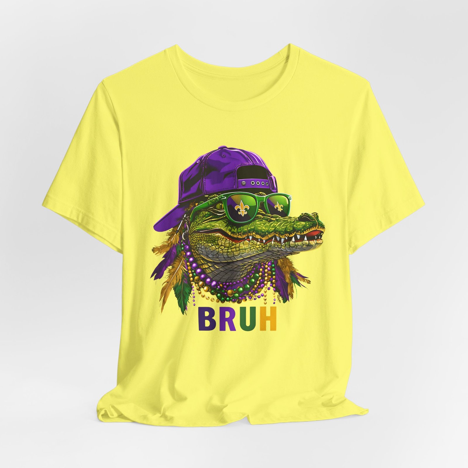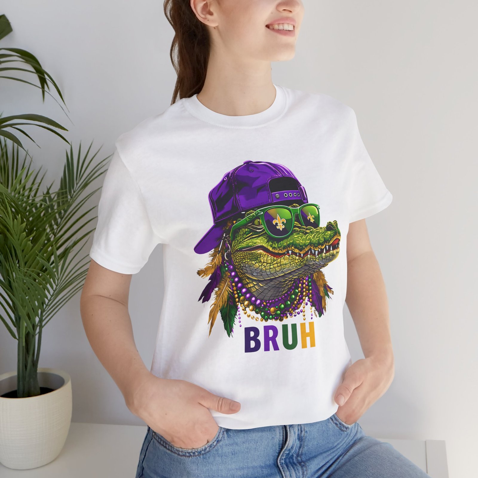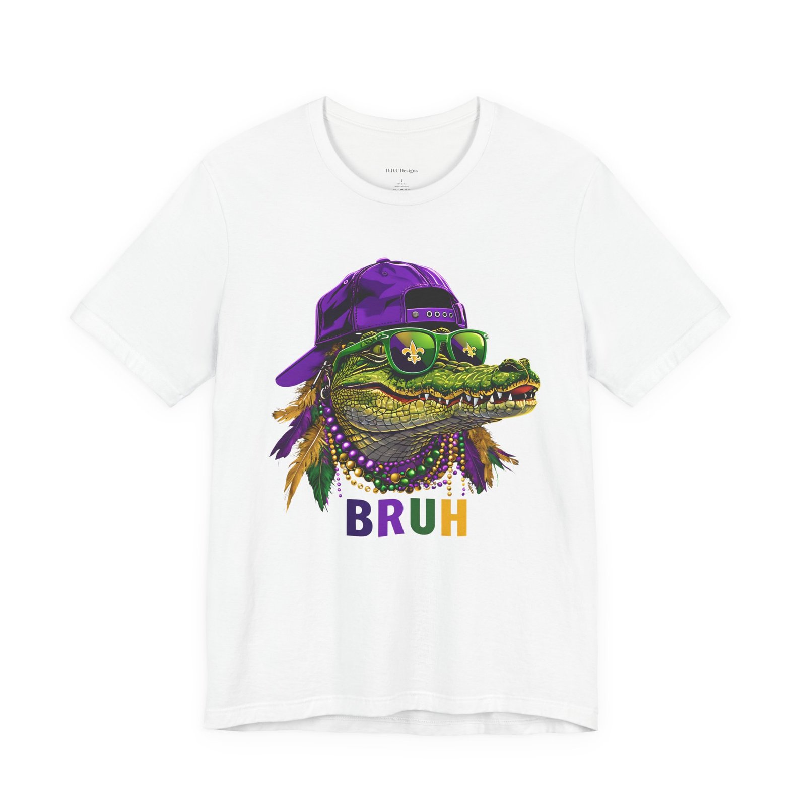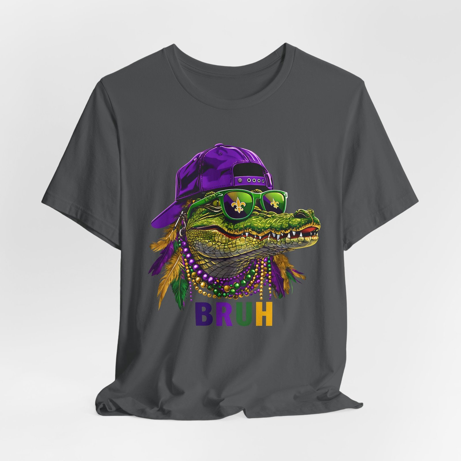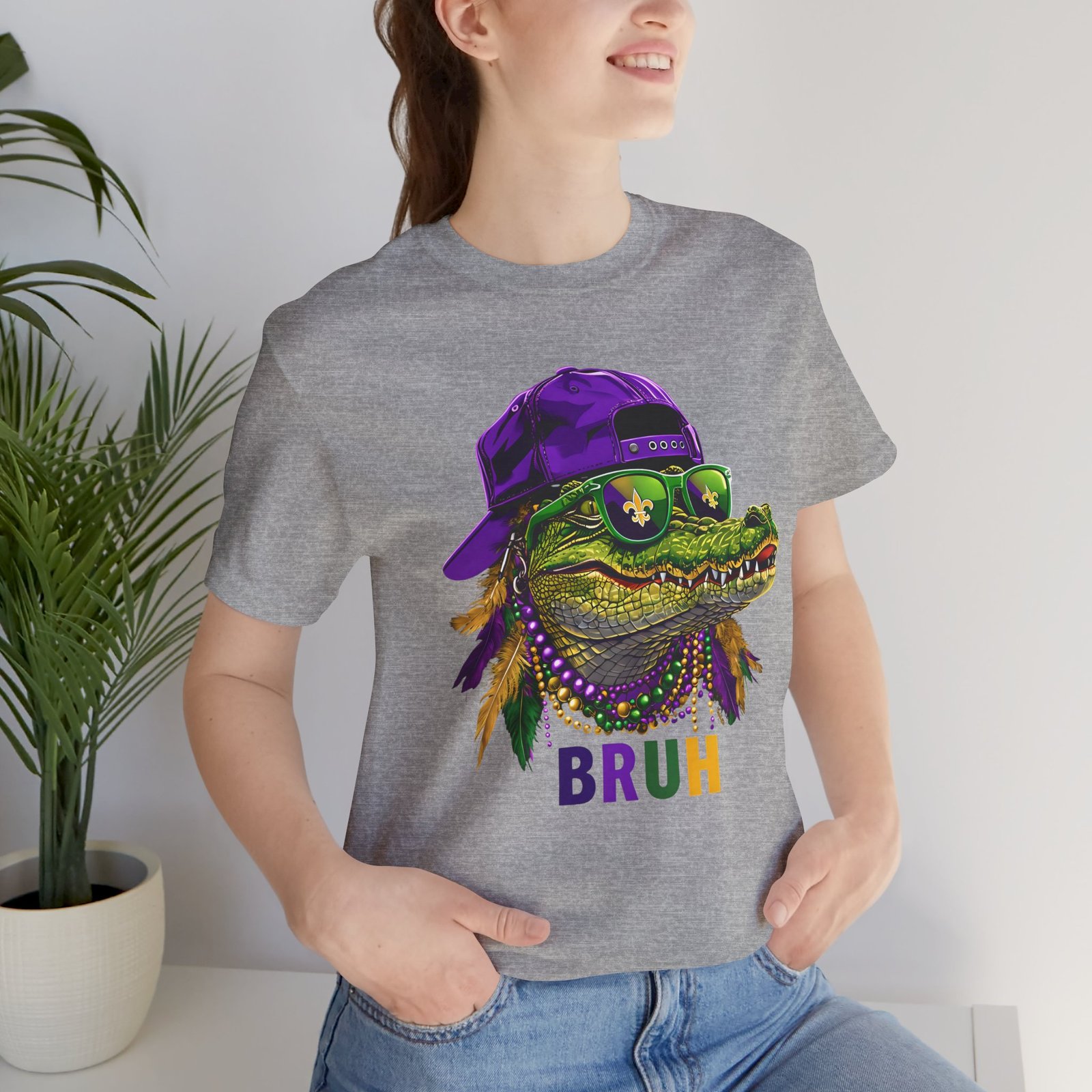 This lightweight jersey tee channels New Orleans swagger with a playful, Mardi Gras-ready alligator wearing purple, gold and green—complete with beads, a fleur-de-lis, and bold “BRUH” lettering. Soft Airlume combed and ring-spun cotton gives it a comfortable, broken-in feel from the first wear, while the retail fit and crew neckline keep the look tidy whether you’re on Bourbon Street or at a backyard crawfish boil. The graphic’s high-definition print stays bright through parades and wash cycles, and thoughtful construction—side seams, shoulder tape, and a tear-away label—makes it dependable for long days of celebrating. It’s a shirt that speaks straight to NOLA humor and parade culture: playful, durable, and built to move with you through the festivities.