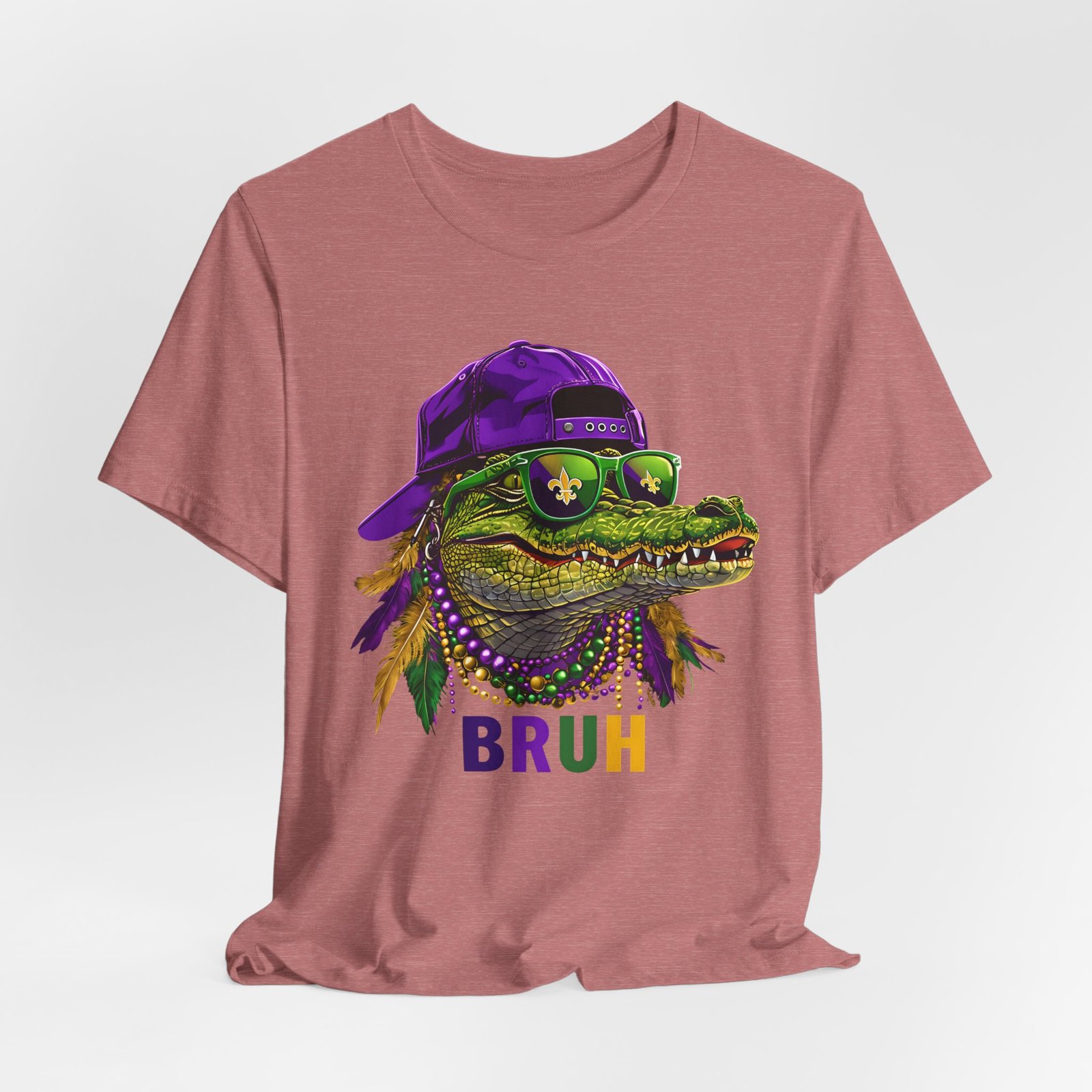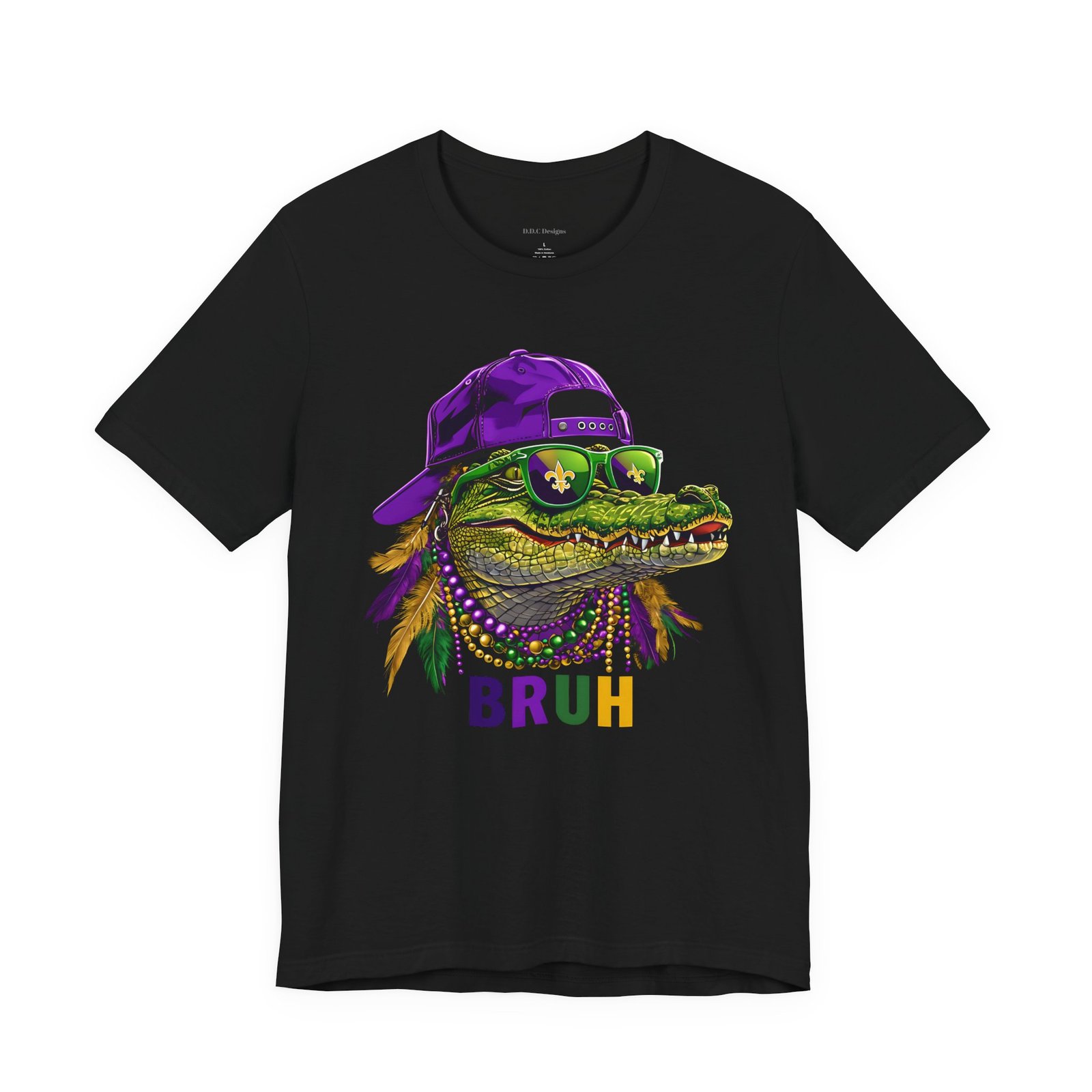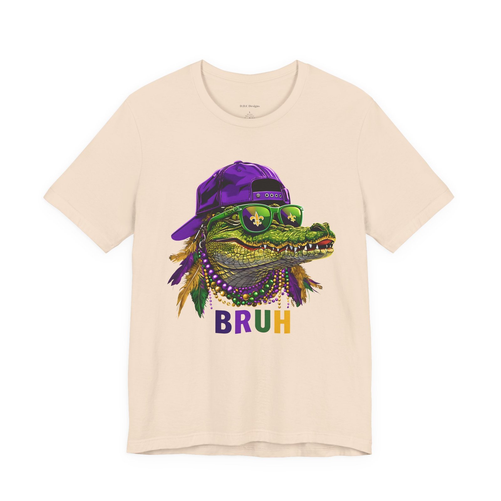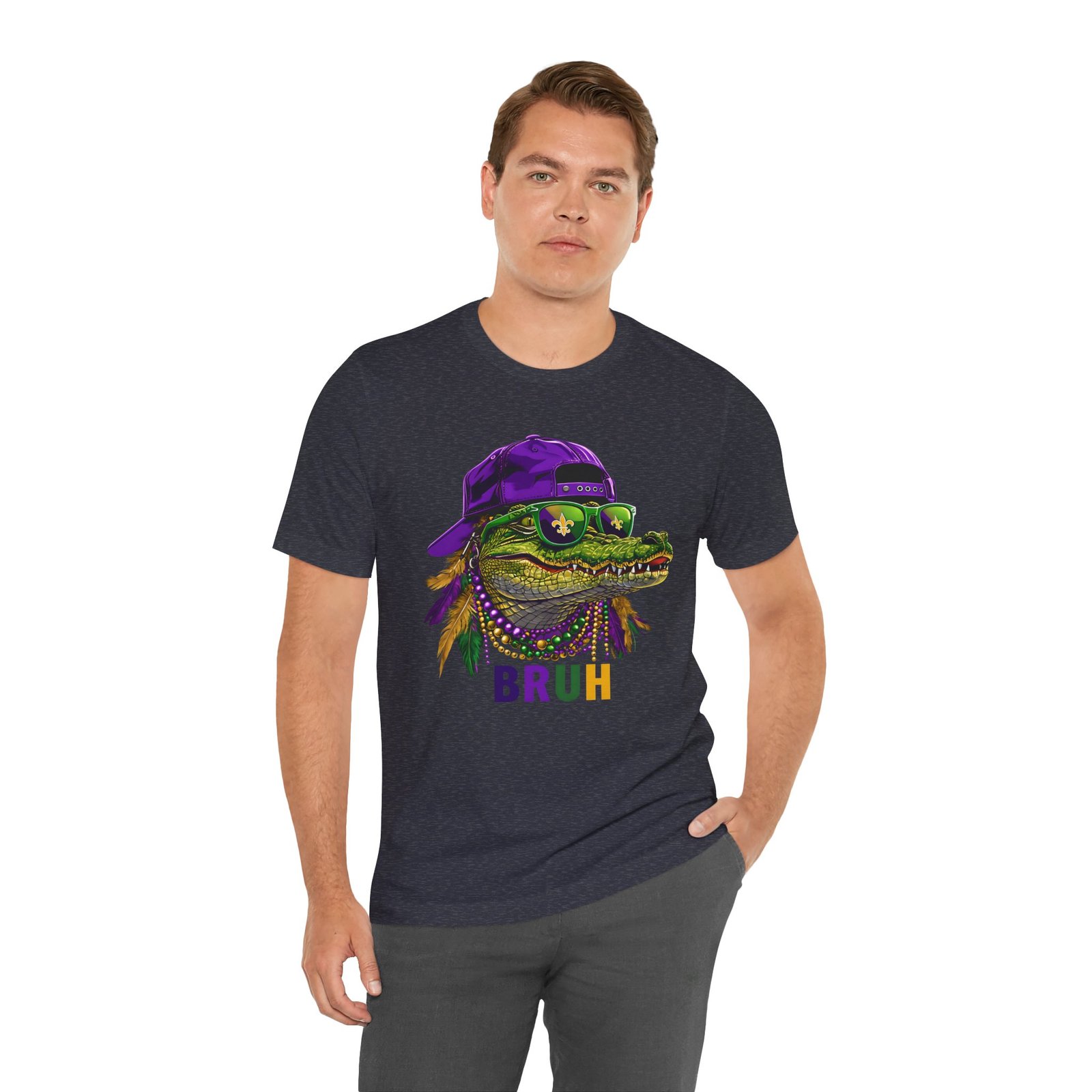 This lightweight jersey tee channels New Orleans swagger with a playful, Mardi Gras-ready alligator wearing purple, gold and green—complete with beads, a fleur-de-lis, and bold “BRUH” lettering. Soft Airlume combed and ring-spun cotton gives it a comfortable, broken-in feel from the first wear, while the retail fit and crew neckline keep the look tidy whether you’re on Bourbon Street or at a backyard crawfish boil. The graphic’s high-definition print stays bright through parades and wash cycles, and thoughtful construction—side seams, shoulder tape, and a tear-away label—makes it dependable for long days of celebrating. It’s a shirt that speaks straight to NOLA humor and parade culture: playful, durable, and built to move with you through the festivities.