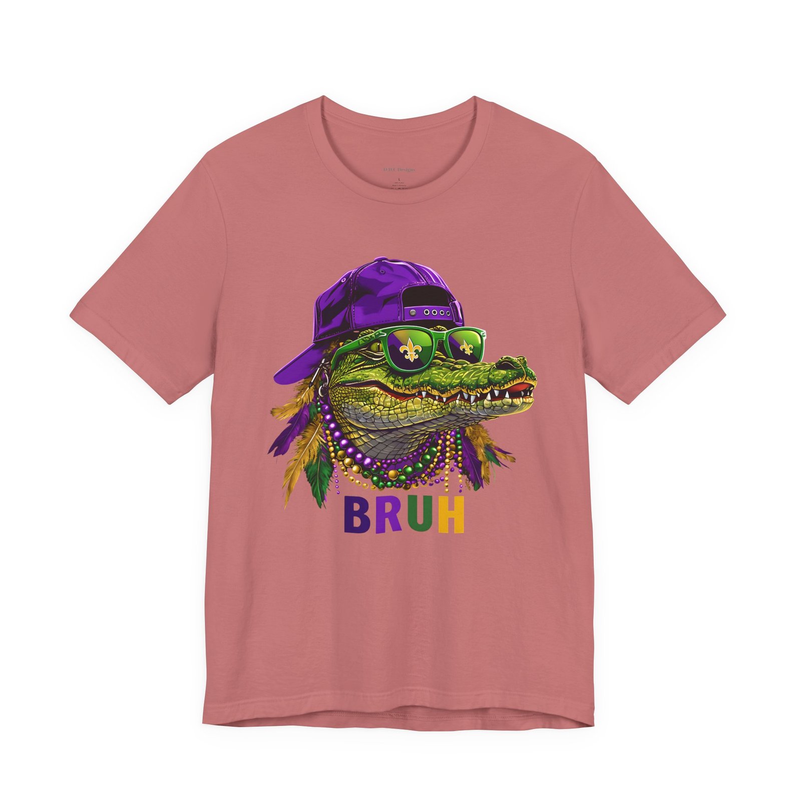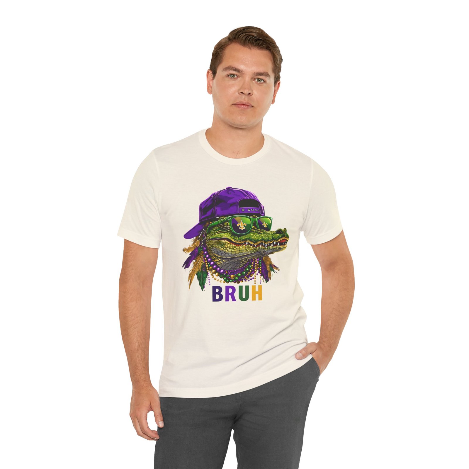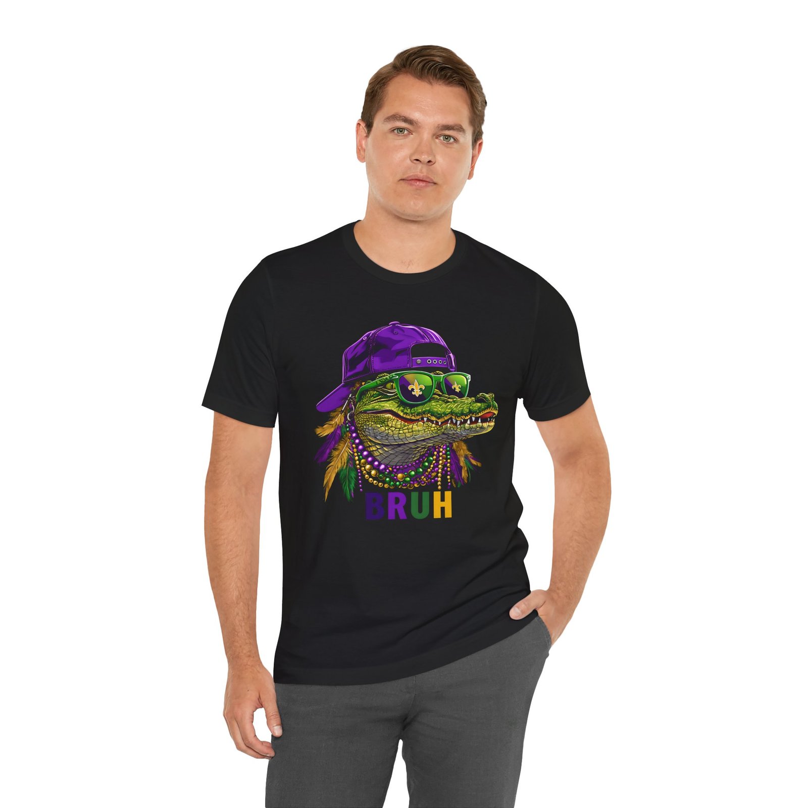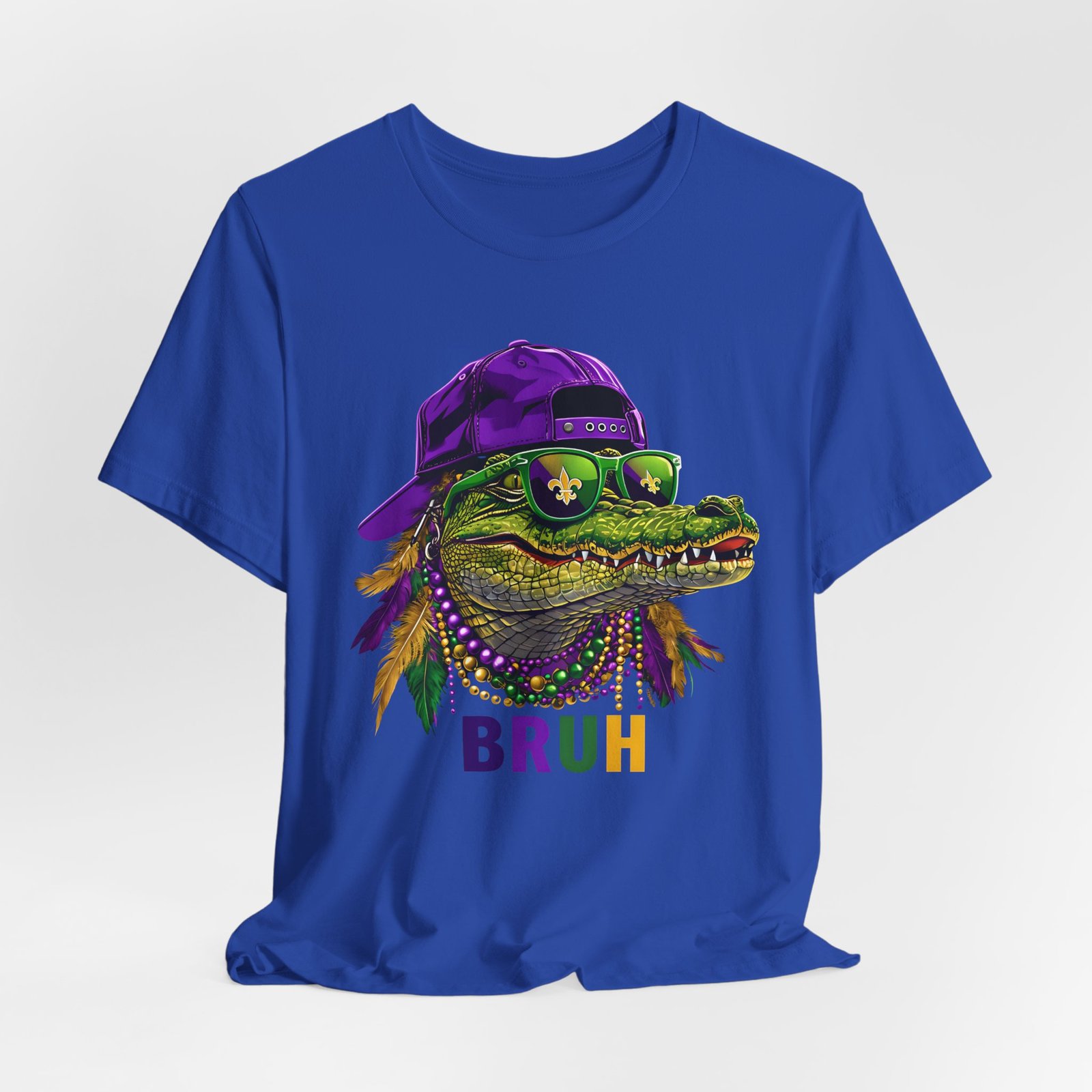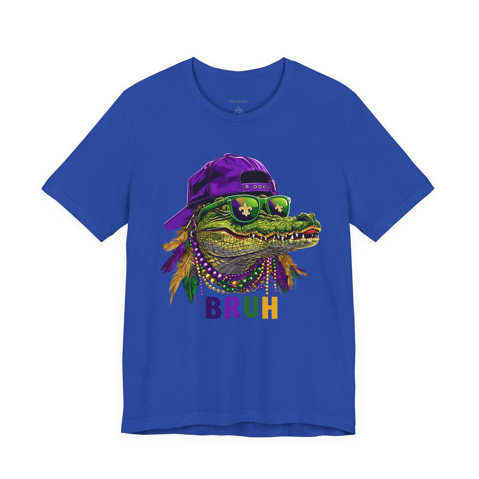 This lightweight jersey tee channels New Orleans swagger with a playful, Mardi Gras-ready alligator wearing purple, gold and green—complete with beads, a fleur-de-lis, and bold “BRUH” lettering. Soft Airlume combed and ring-spun cotton gives it a comfortable, broken-in feel from the first wear, while the retail fit and crew neckline keep the look tidy whether you’re on Bourbon Street or at a backyard crawfish boil. The graphic’s high-definition print stays bright through parades and wash cycles, and thoughtful construction—side seams, shoulder tape, and a tear-away label—makes it dependable for long days of celebrating. It’s a shirt that speaks straight to NOLA humor and parade culture: playful, durable, and built to move with you through the festivities.