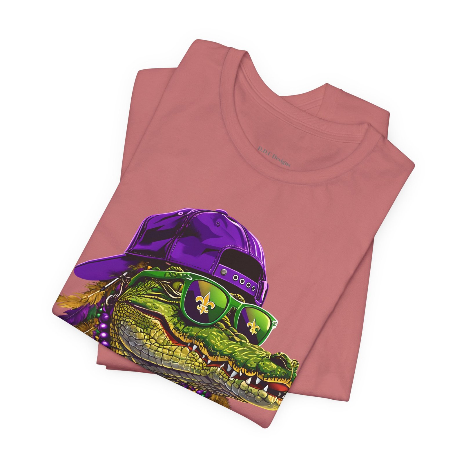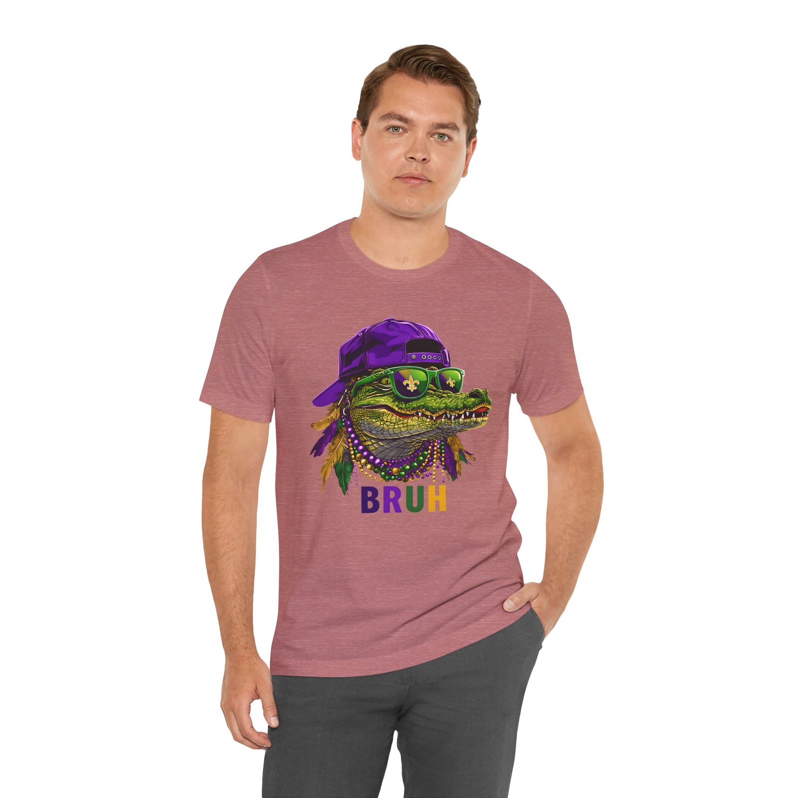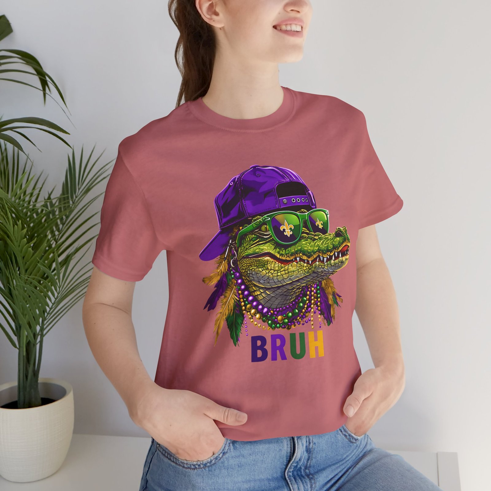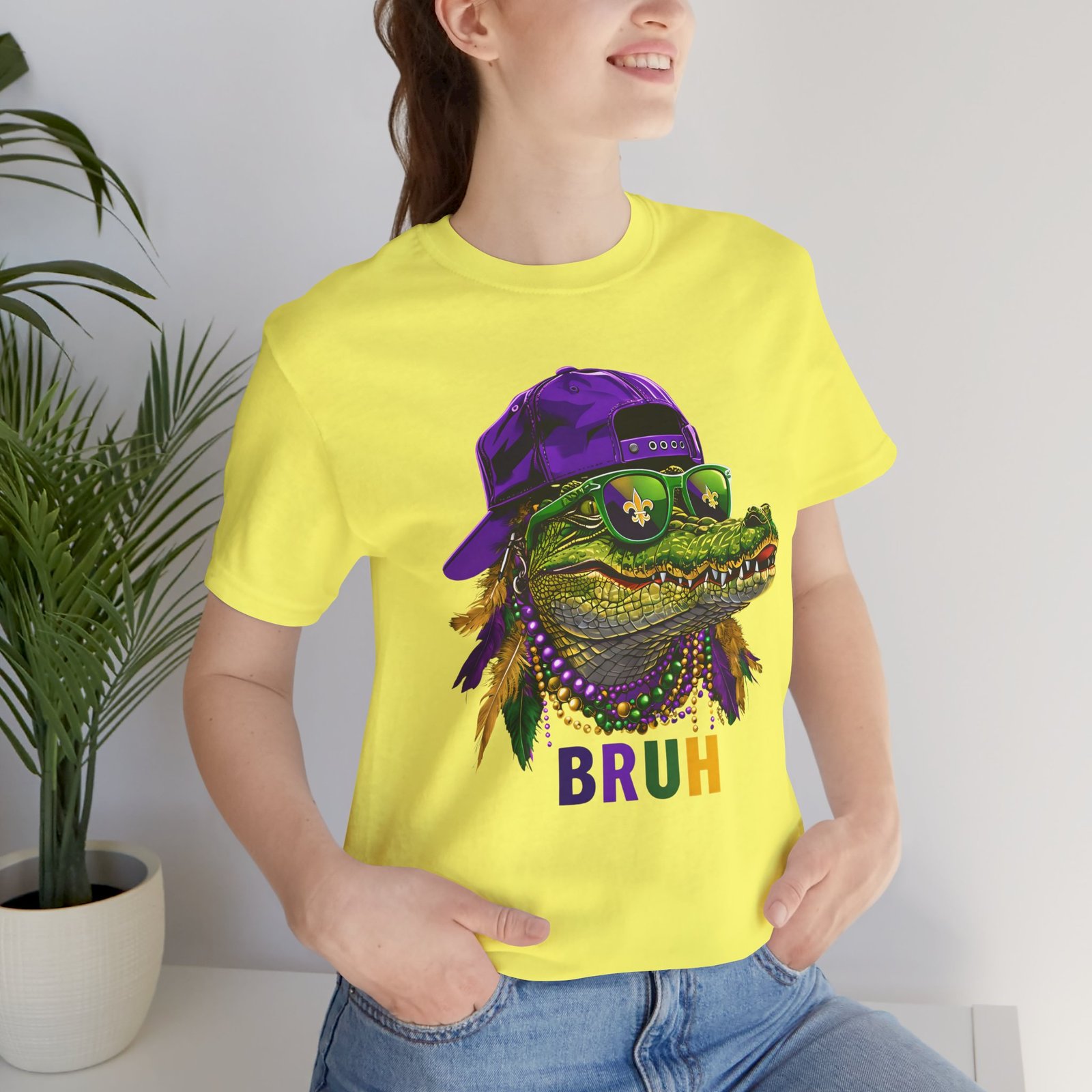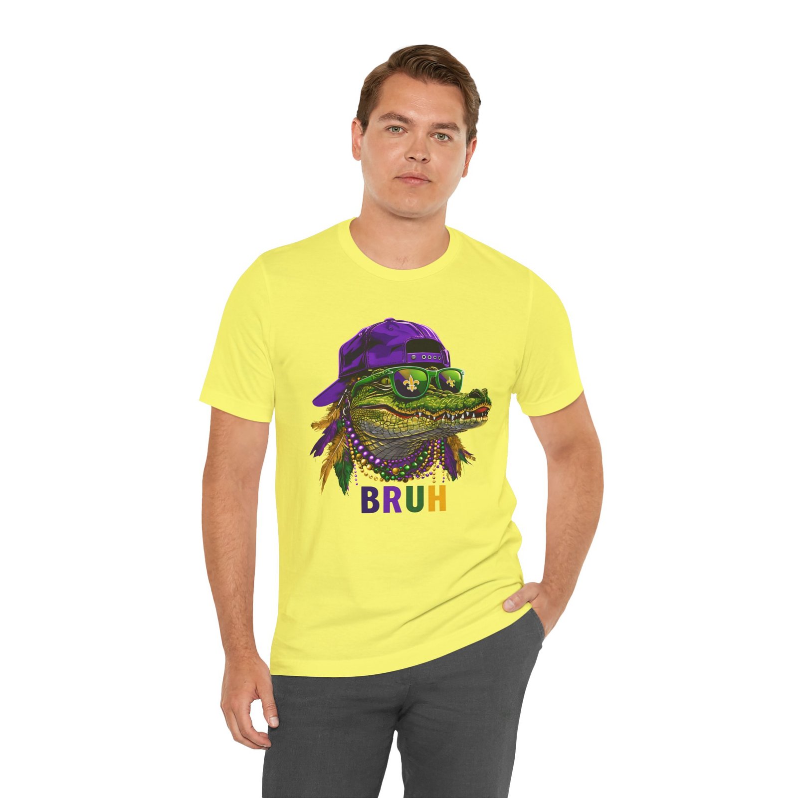 This lightweight jersey tee channels New Orleans swagger with a playful, Mardi Gras-ready alligator wearing purple, gold and green—complete with beads, a fleur-de-lis, and bold “BRUH” lettering. Soft Airlume combed and ring-spun cotton gives it a comfortable, broken-in feel from the first wear, while the retail fit and crew neckline keep the look tidy whether you’re on Bourbon Street or at a backyard crawfish boil. The graphic’s high-definition print stays bright through parades and wash cycles, and thoughtful construction—side seams, shoulder tape, and a tear-away label—makes it dependable for long days of celebrating. It’s a shirt that speaks straight to NOLA humor and parade culture: playful, durable, and built to move with you through the festivities.