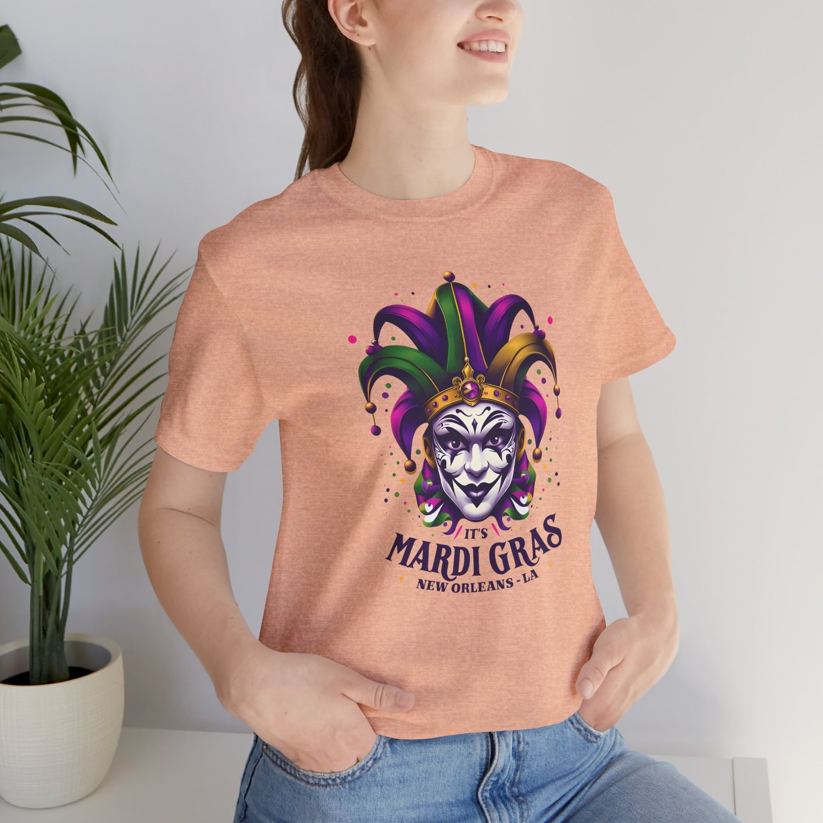 Be the first to review “Mardi Gras Jester T-Shirt | New Orleans, LA carnival purple green gold”