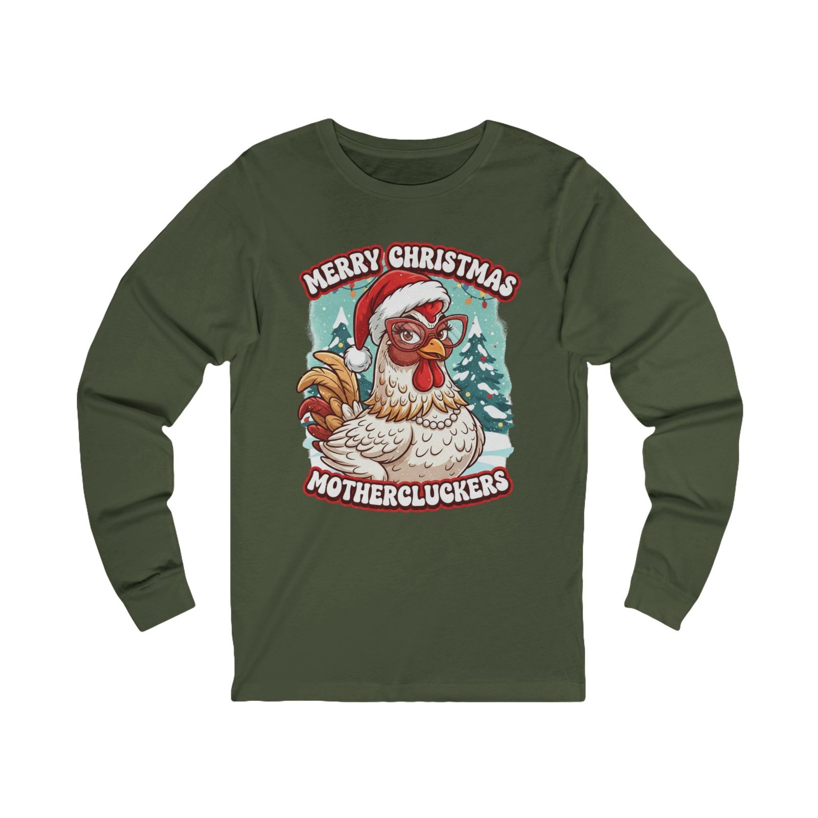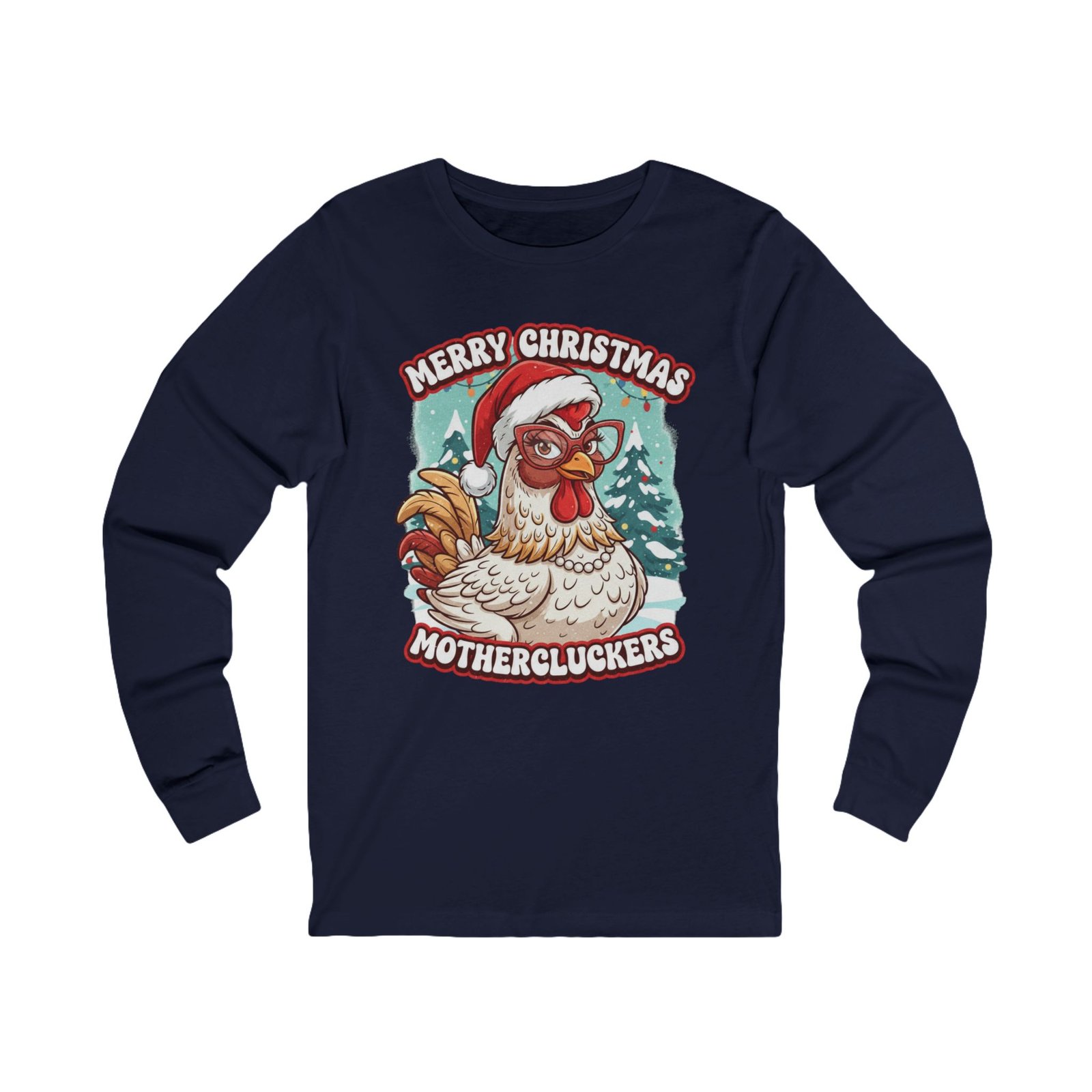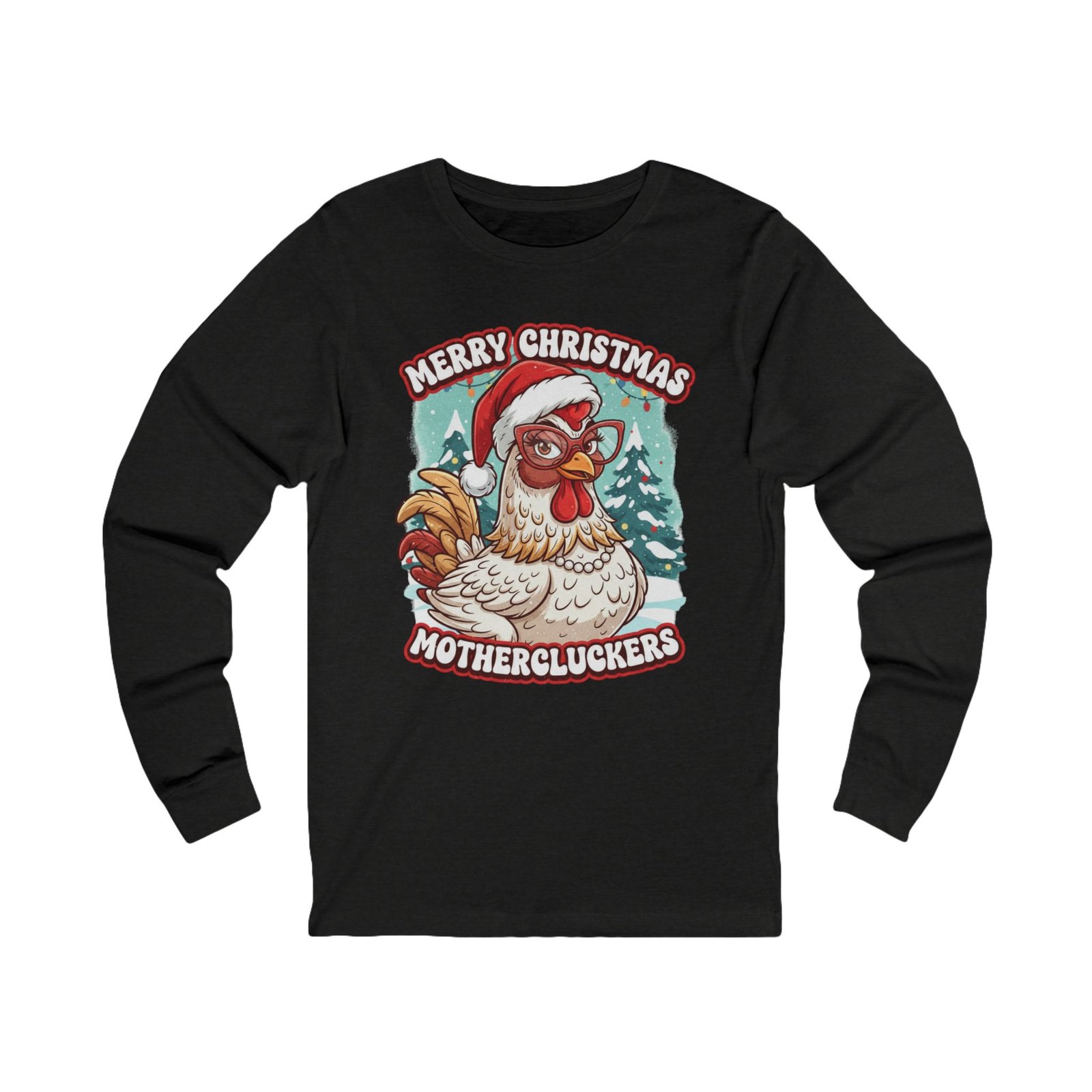 Make a hilarious and festive statement this holiday season with the “Merry Christmas Mothercluckers” long sleeve shirt!