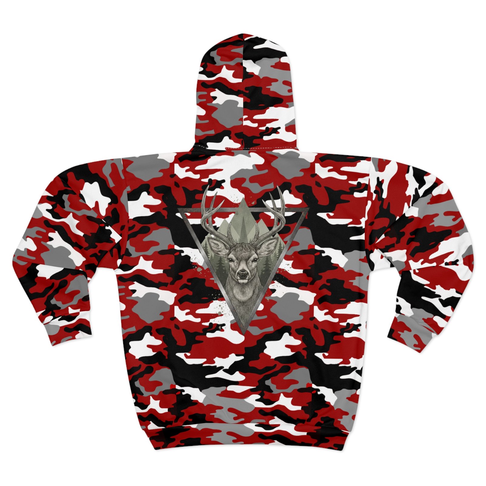 Red Black Camo Deer Skull Hoodie | All-Over Print Zip Hoodie