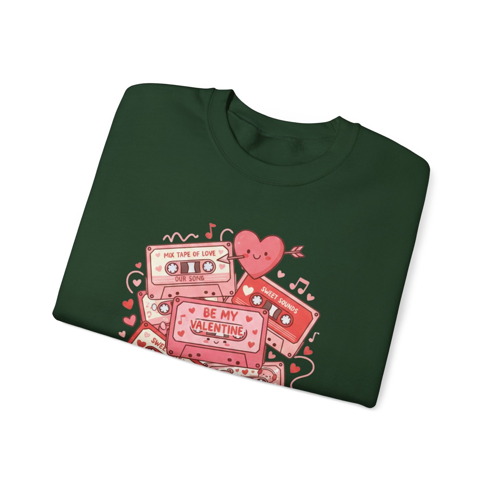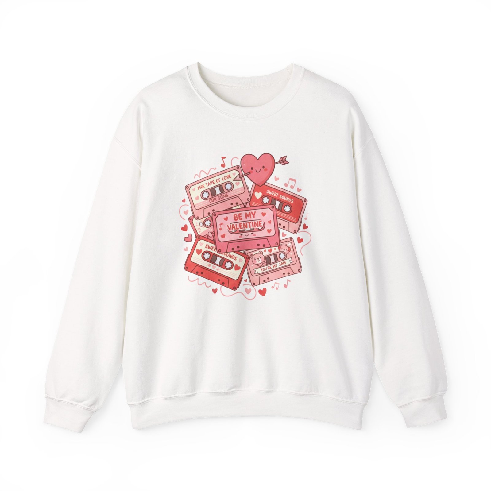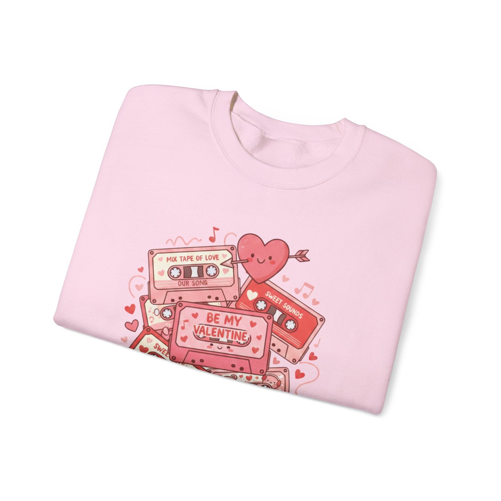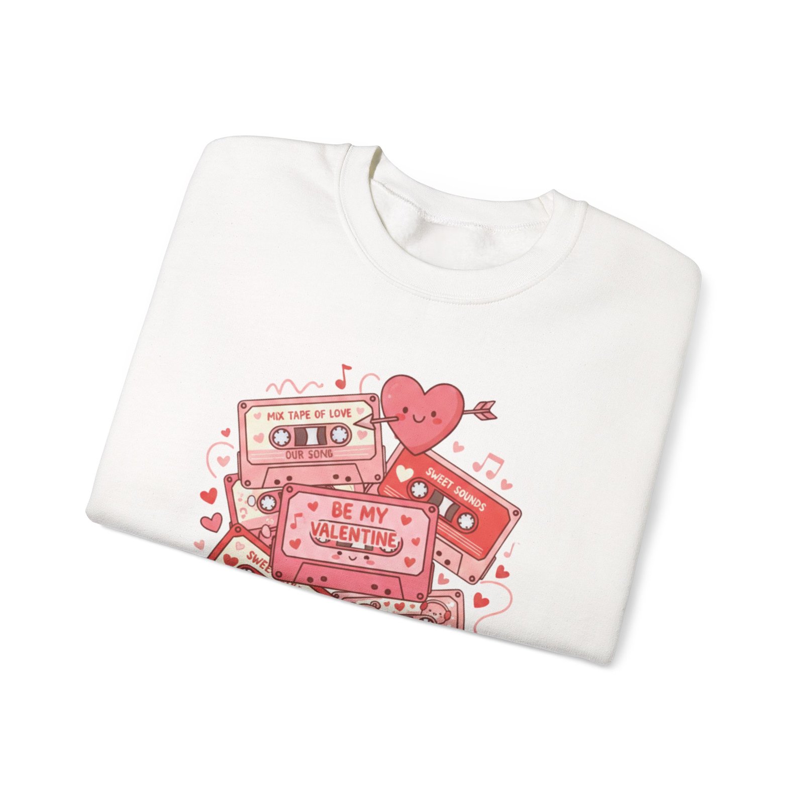 Throw this sweatshirt on and relive mixtape nights and handwritten valentines. The retro cassette stack, scattered hearts, and floating notes feel like a weathered love letter from the 80s/90s — warm, slightly worn, and entirely sincere. It settles around your shoulders with the same comfort as a living-room couch and keeps conversation light and nostalgic on Galentine nights or low-key date evenings. Soft fabric, thoughtful stitching, and a clean crewneck silhouette let the design speak: playful, familiar, and quietly romantic. Whether you’re swapping stories over cocoa or walking under string lights, this sweatshirt layers in personality without shouting. It’s for people who treasure analog memories and want their everyday comfort to echo them.