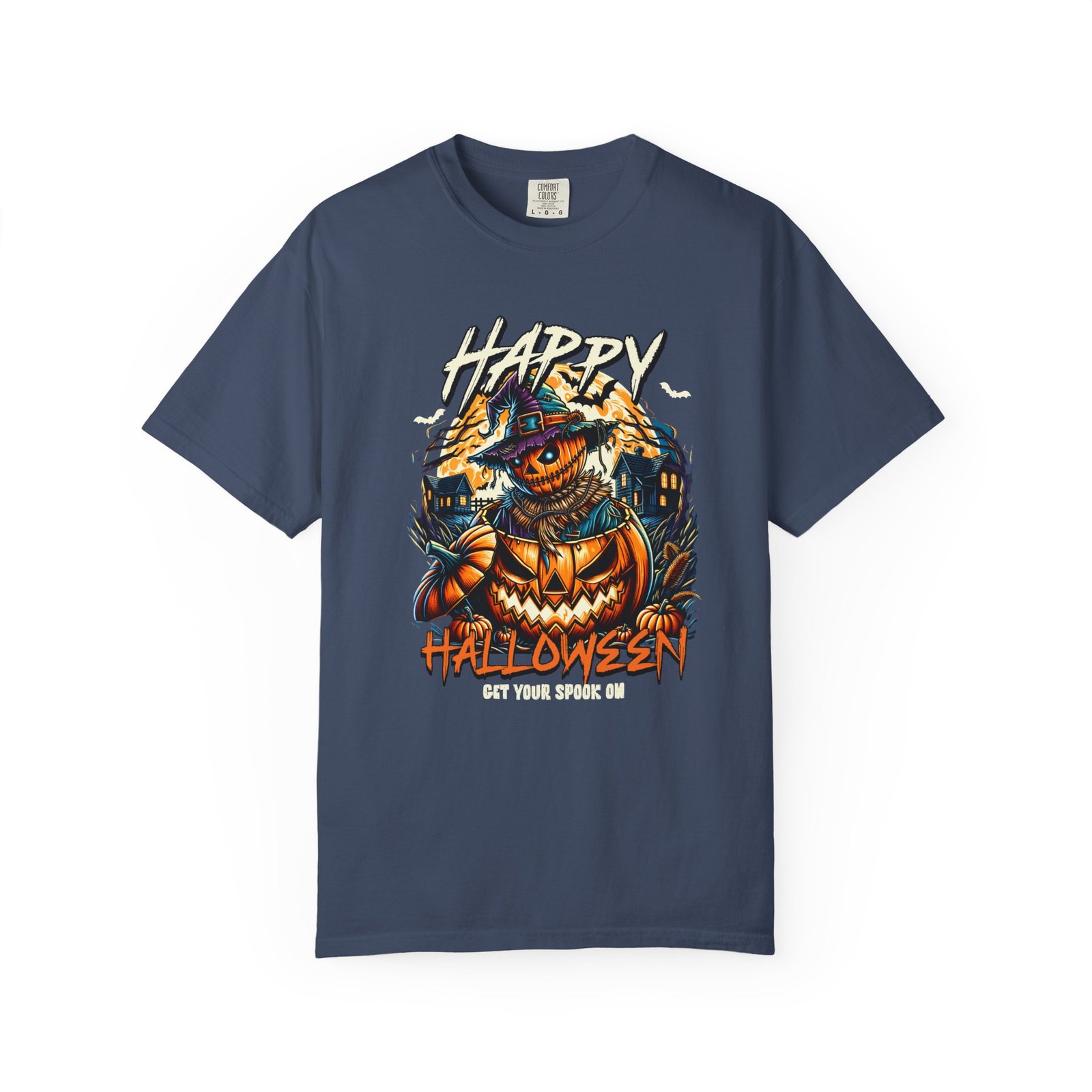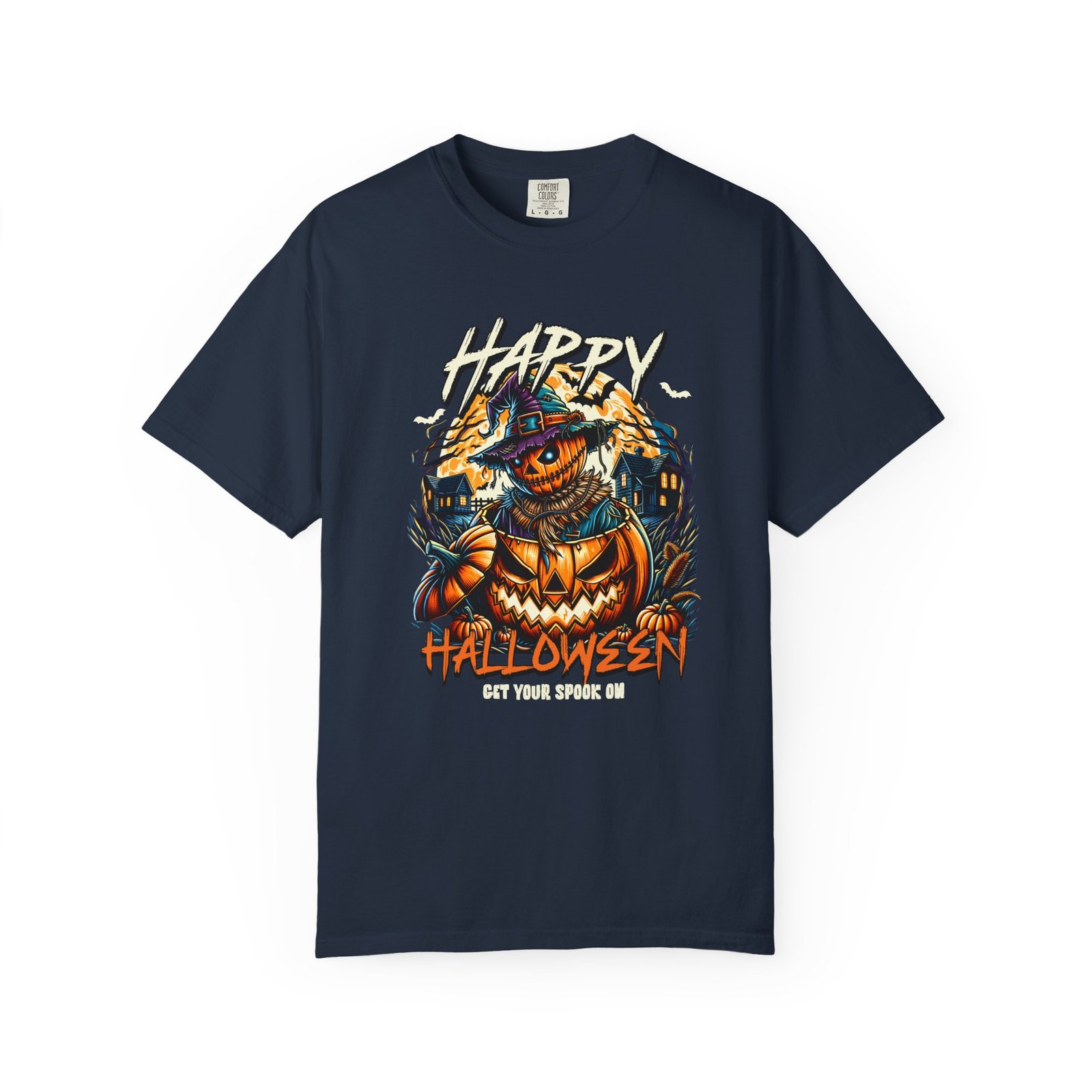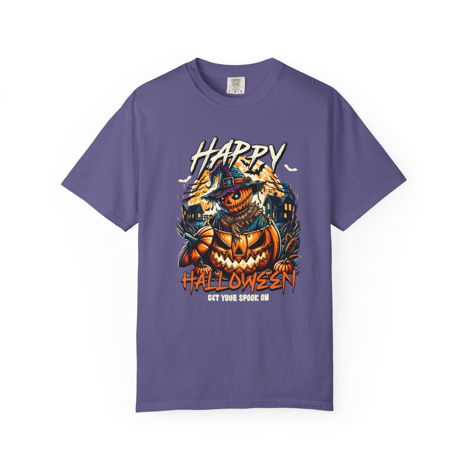 Get ready to spook with this Happy Halloween themed comfort colors unisex tee featuring a spooky pumpkin design. Perfect for Halloween enthusiasts looking for a fun and festive way to celebrate the holiday. This garment-dyed t-shirt is made with high-quality, 100% ring-spun US cotton for lasting comfort and is available in sizes S to 4XL for the perfect fit. With double-needle stitching, pre-shrunk fabric, and a relaxed fit, this tee is ideal for casual and semi-formal settings alike. Product features – Available in sizes S to 4XL – Double-needle stitching for durability – Garment-dyed fabric for a soft color and texture – Made with 100% US cotton – Relaxed fit and pre-shrunk fabric for consistent sizing Care instructions – Machine wash: cold (max 30C or 90F) – Do not bleach – Tumble dry: low heat – Iron, steam or dry: low heat – Do not dryclean