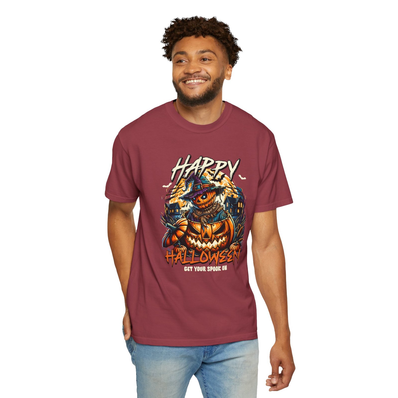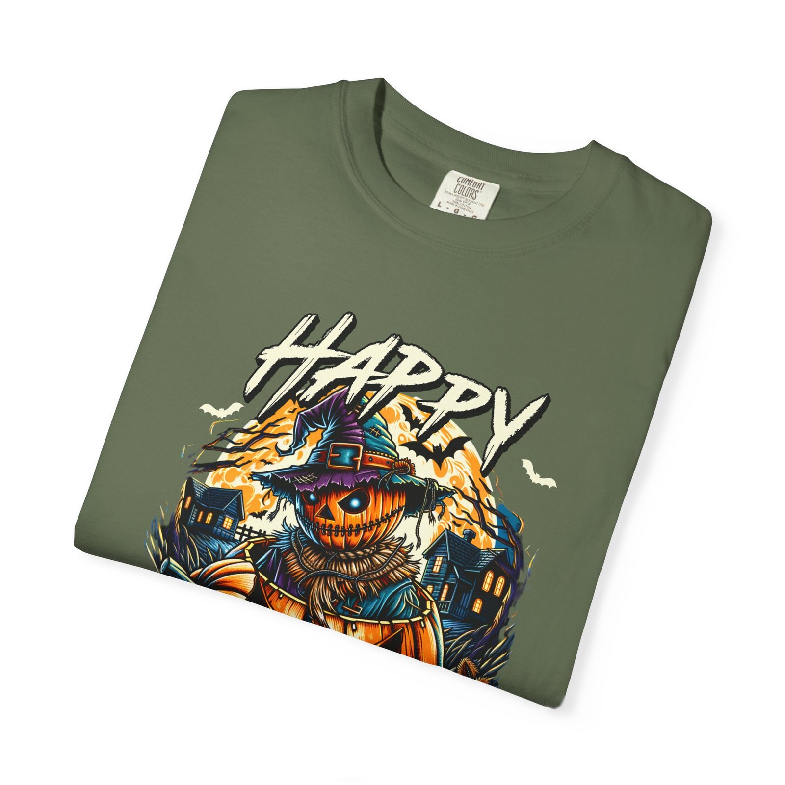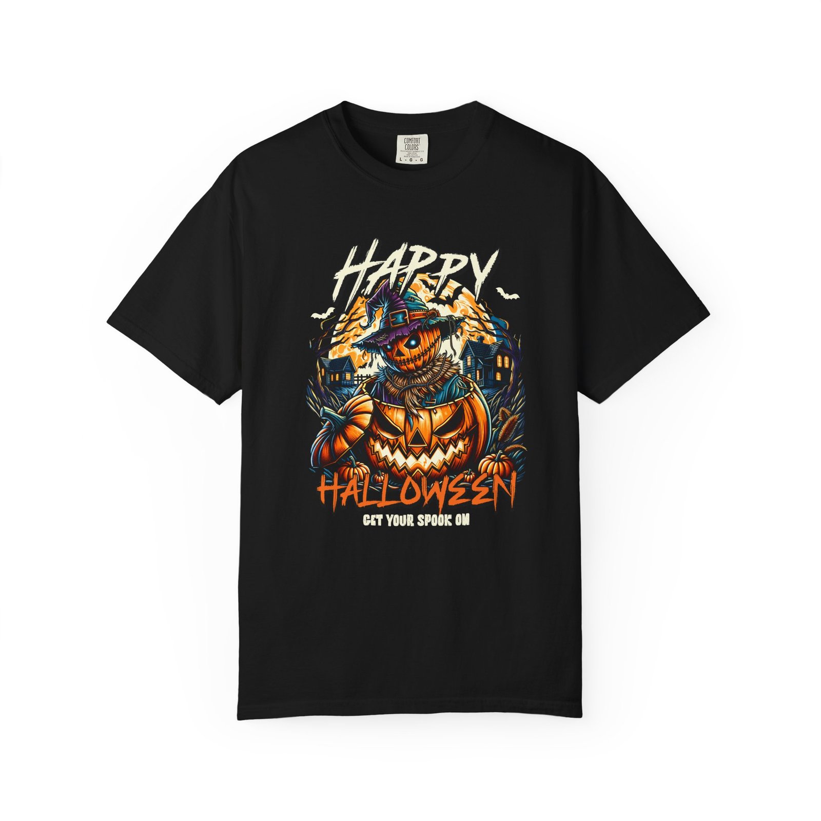 Get ready to spook with this Happy Halloween themed comfort colors unisex tee featuring a spooky pumpkin design. Perfect for Halloween enthusiasts looking for a fun and festive way to celebrate the holiday. This garment-dyed t-shirt is made with high-quality, 100% ring-spun US cotton for lasting comfort and is available in sizes S to 4XL for the perfect fit. With double-needle stitching, pre-shrunk fabric, and a relaxed fit, this tee is ideal for casual and semi-formal settings alike. Product features – Available in sizes S to 4XL – Double-needle stitching for durability – Garment-dyed fabric for a soft color and texture – Made with 100% US cotton – Relaxed fit and pre-shrunk fabric for consistent sizing Care instructions – Machine wash: cold (max 30C or 90F) – Do not bleach – Tumble dry: low heat – Iron, steam or dry: low heat – Do not dryclean