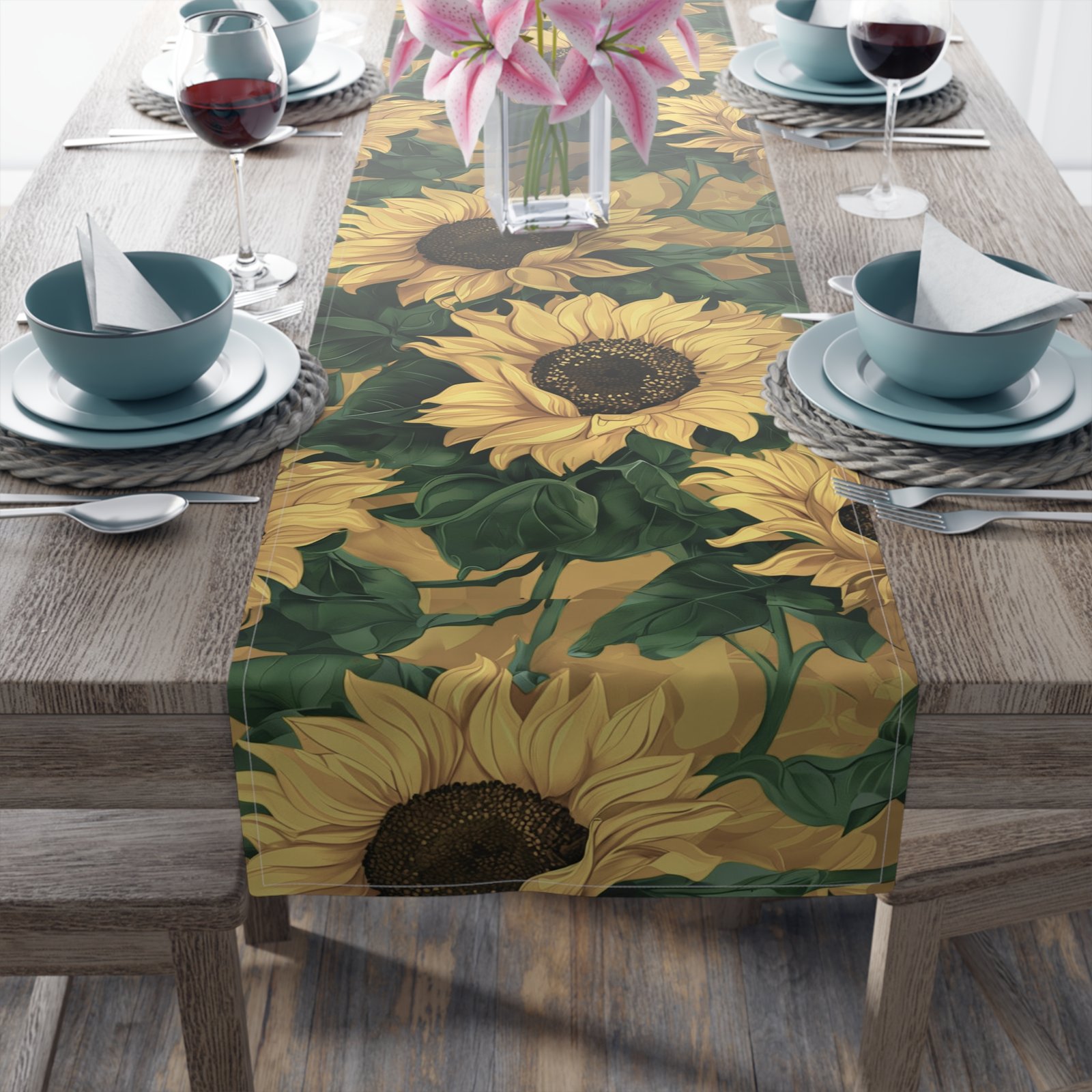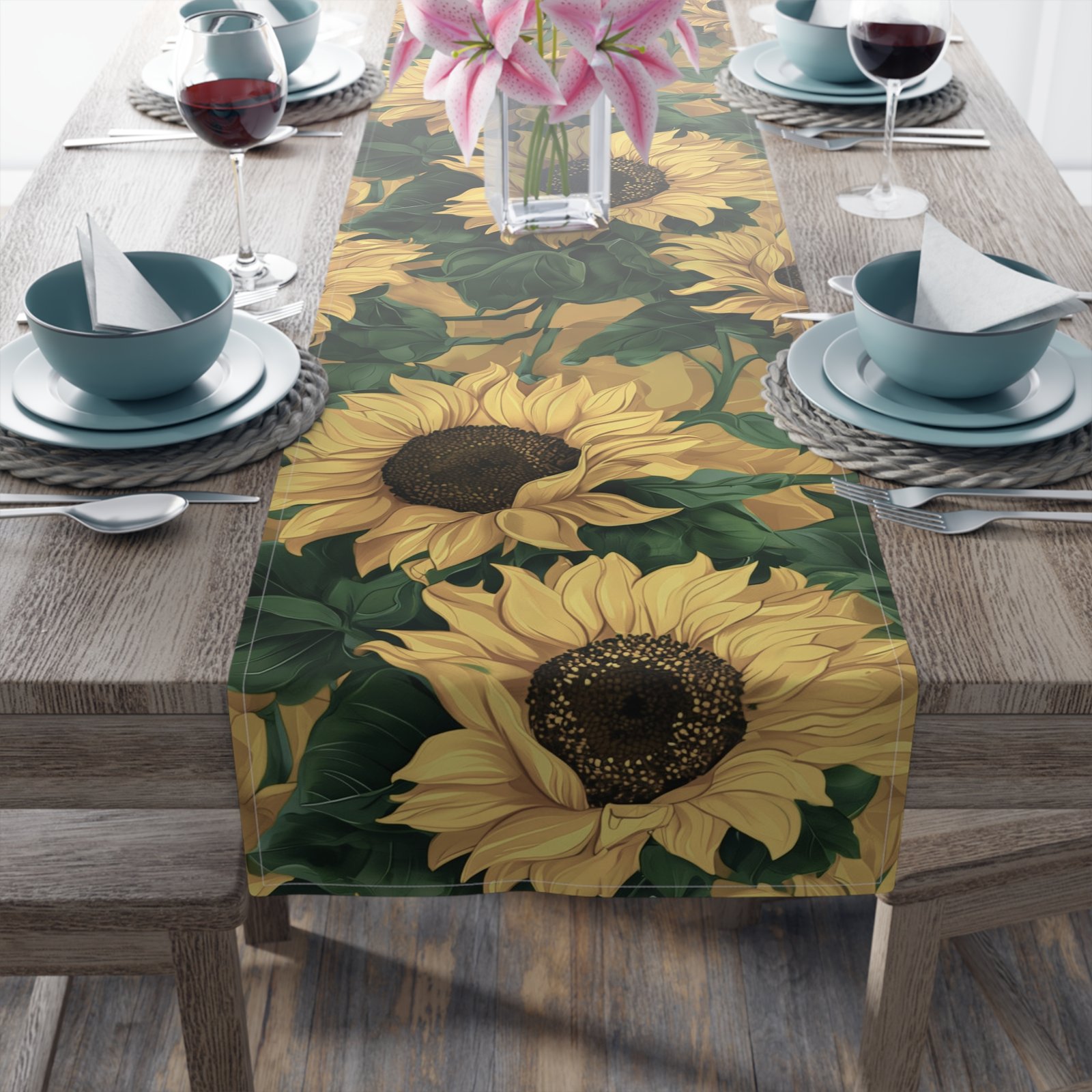 Sunflower Table Runner (Cotton, Poly) – Rustic Floral Dining Decor for Everyday, Parties, and Seasonal Celebrations – Available in Multiple