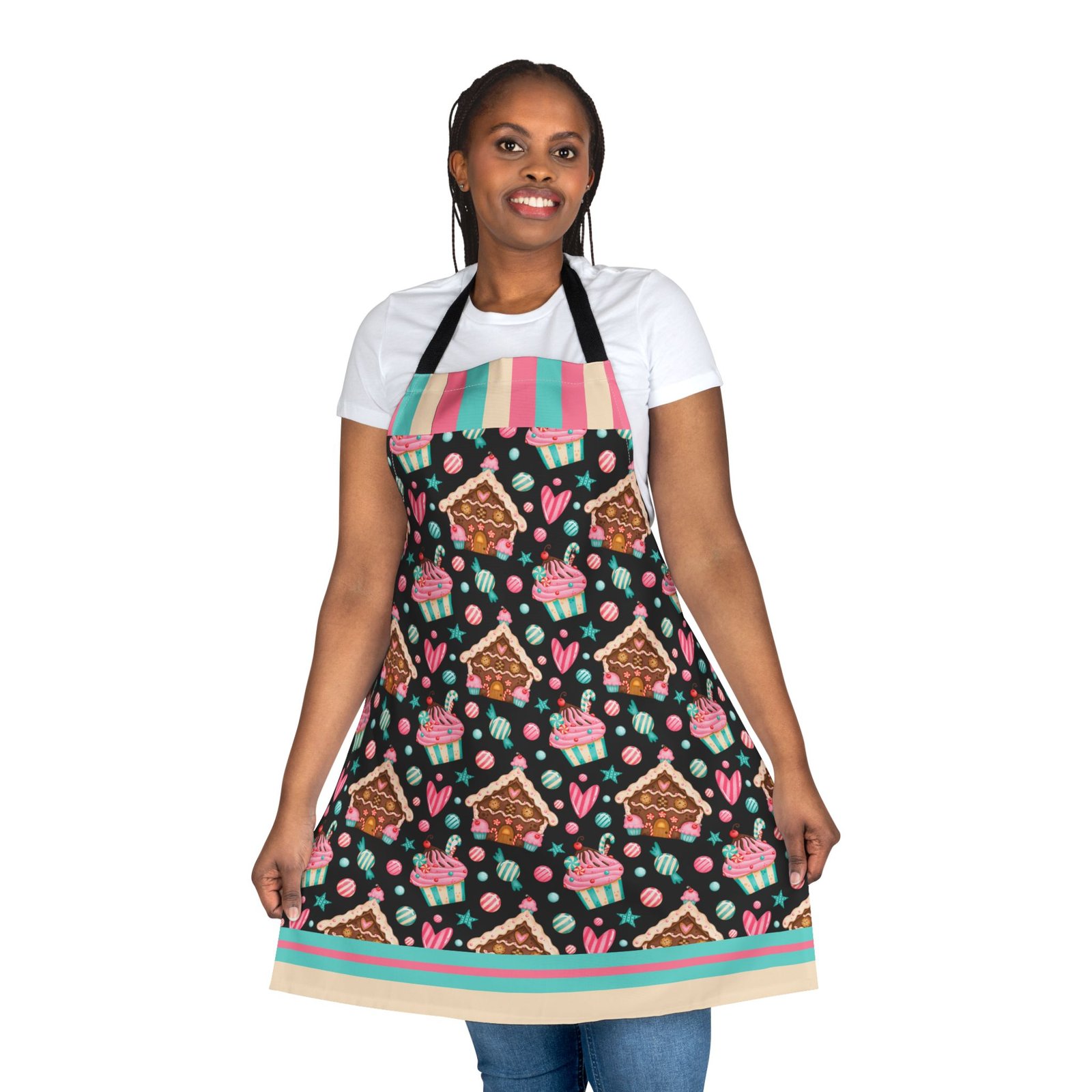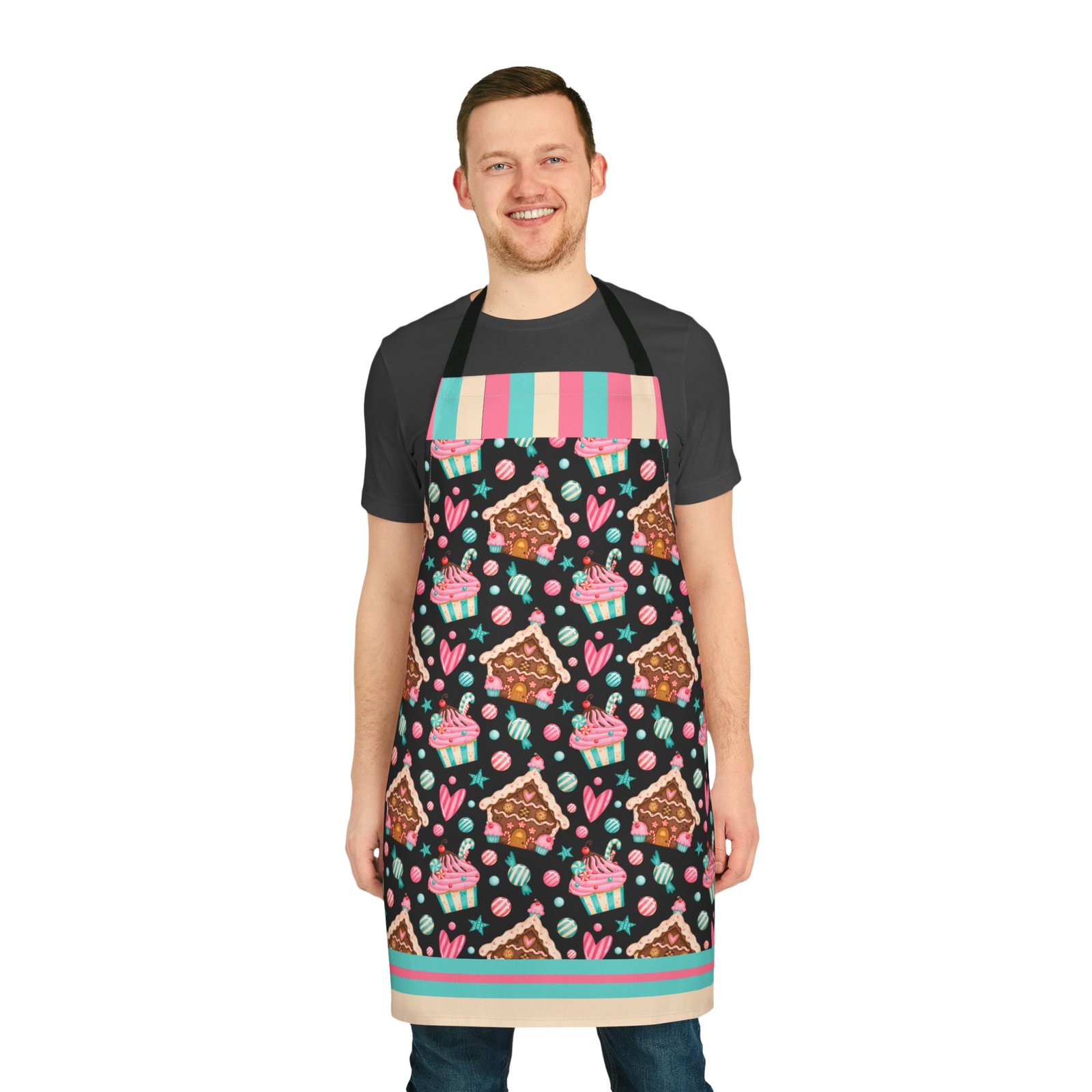 This whimsical apron is perfect for home bakers and professional cooks alike, featuring a charming ‘Sweet Treat’ pattern with bright, playful graphics. The adjustable neck strap and long waist ties ensure a comfortable and secure fit for a variety of body types. Ideal for running a bake sale, hosting a fun dessert-themed party, or simply baking in style.
