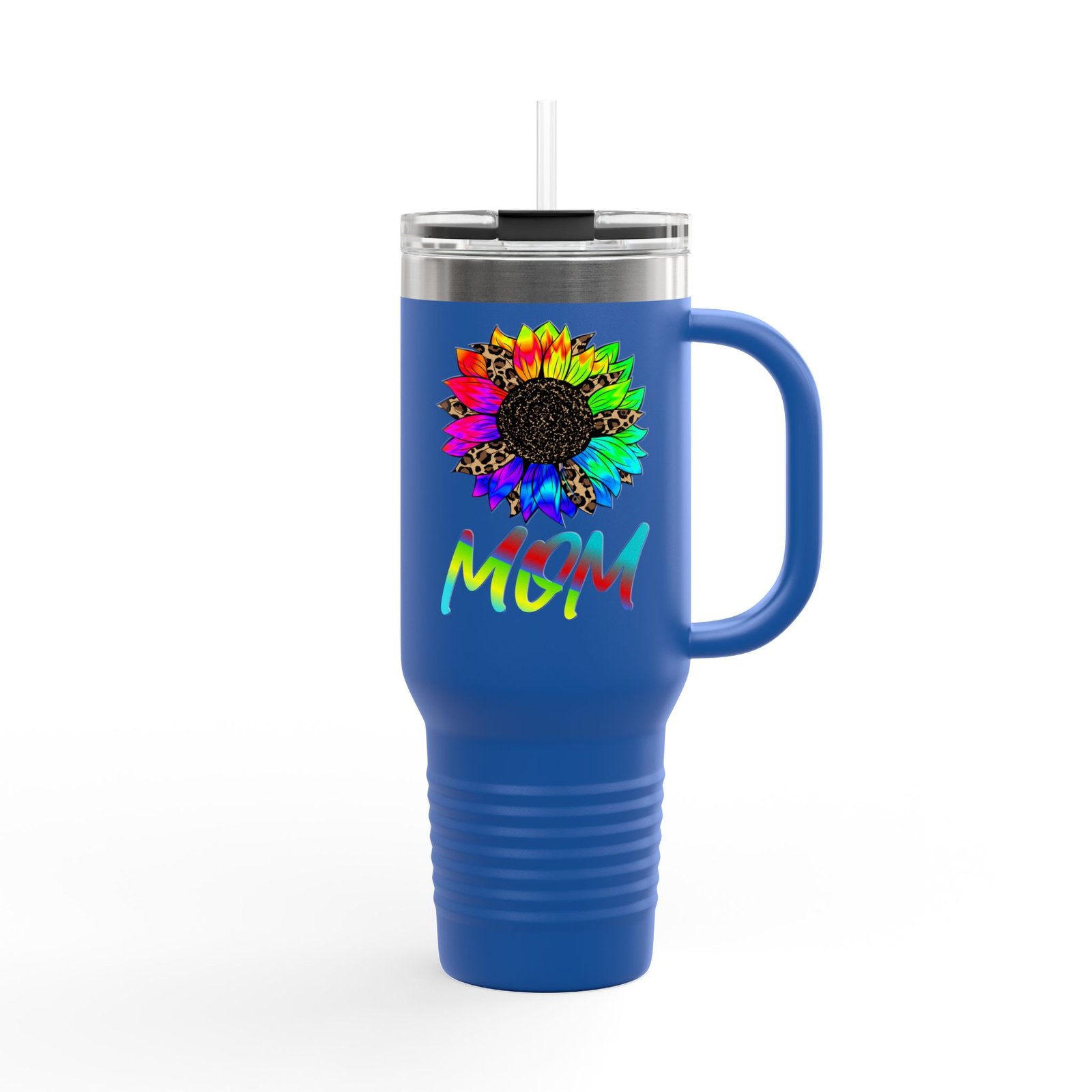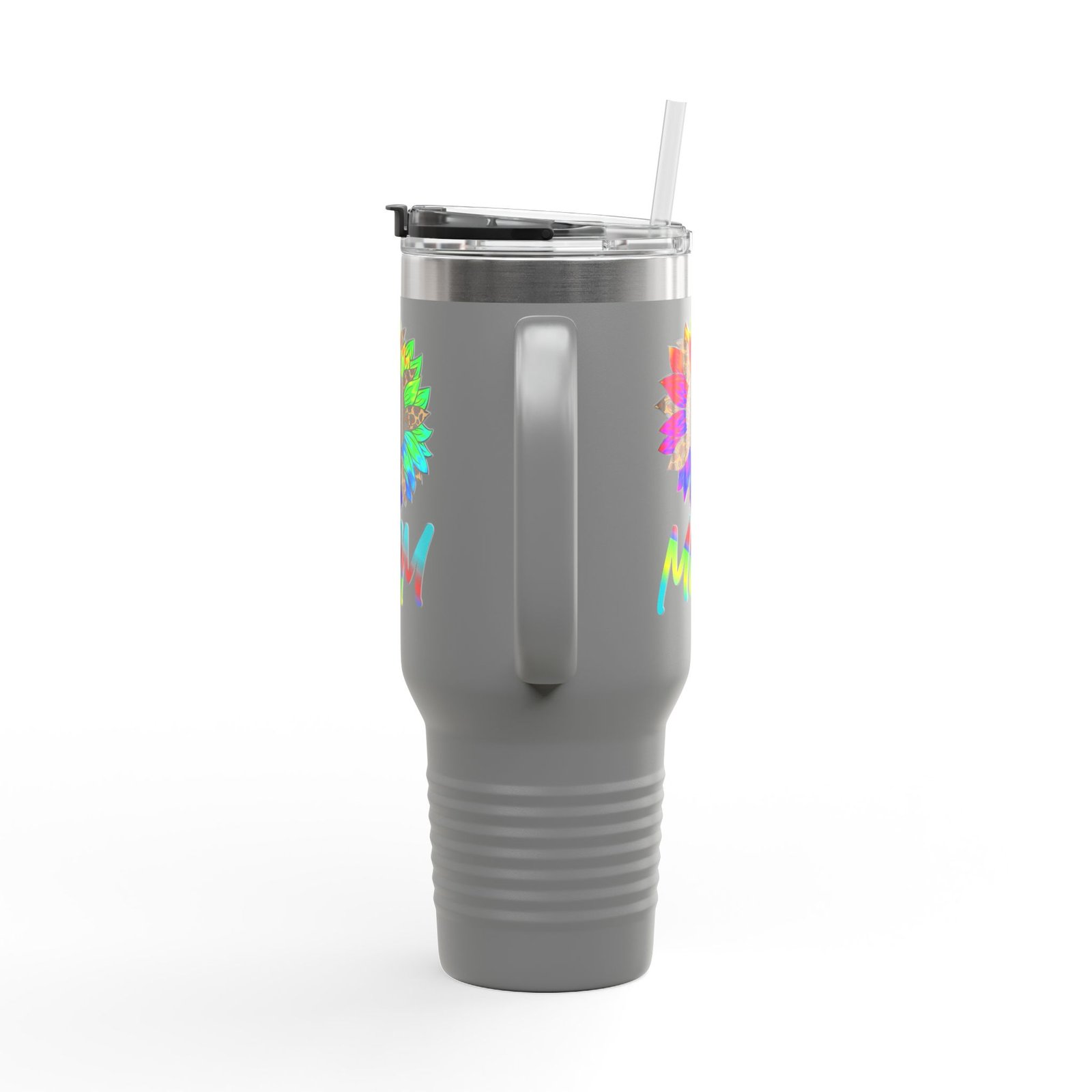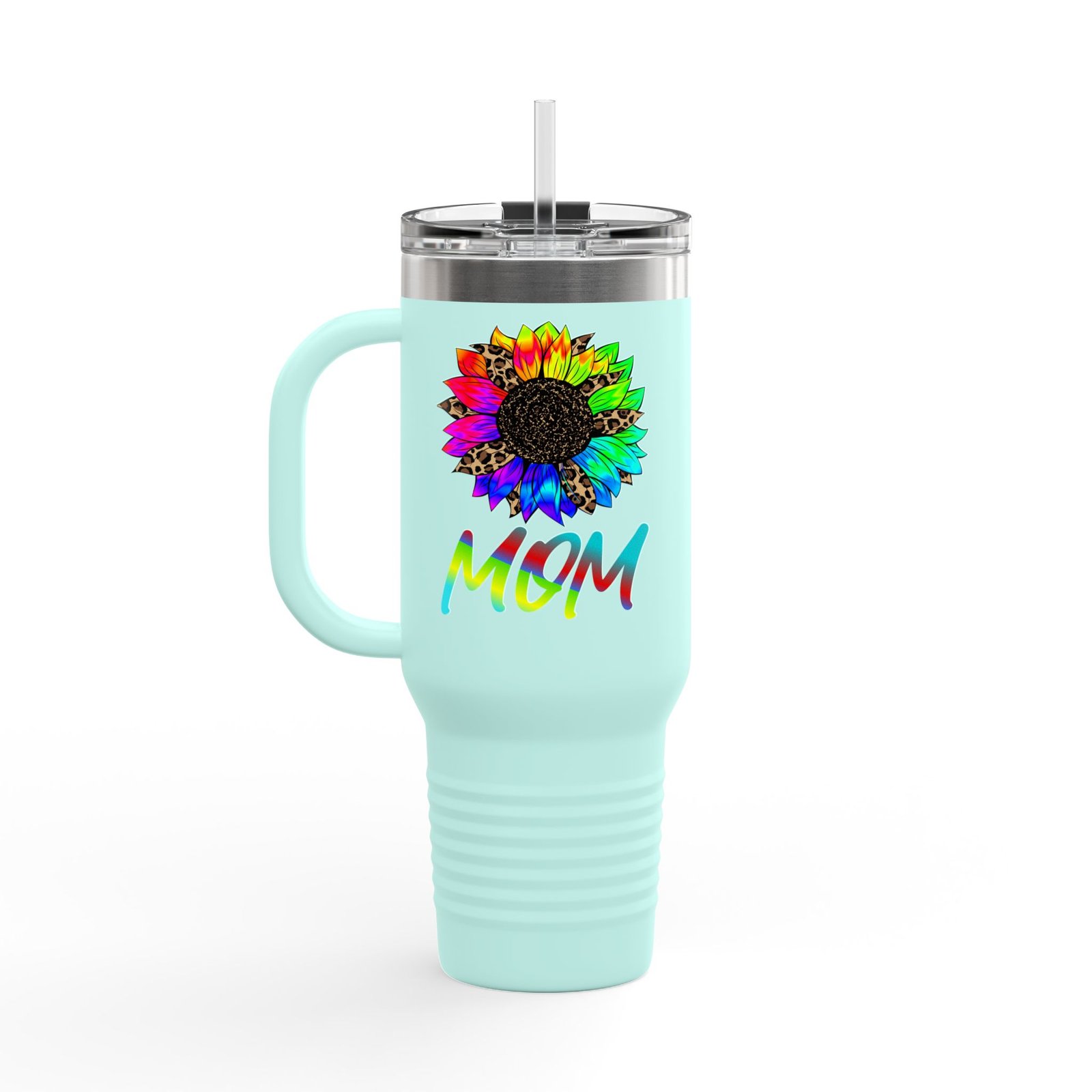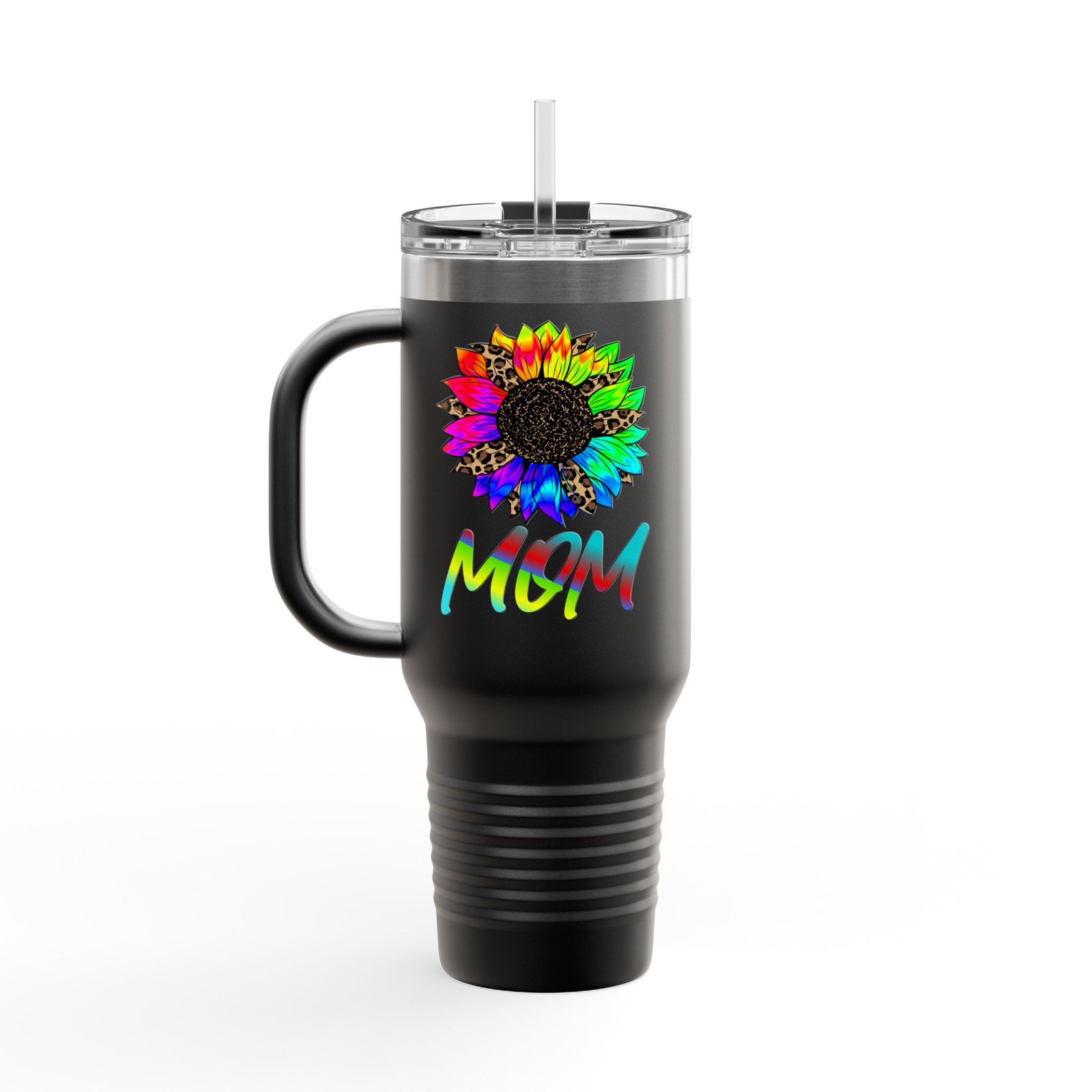 Tumbler, Tie Dye Flower Mother’s Day Gift, Bright Colored Insulated Travel Mug, 40oz. Alternative: Floral Mug, Large Cup, Gift for Mom,