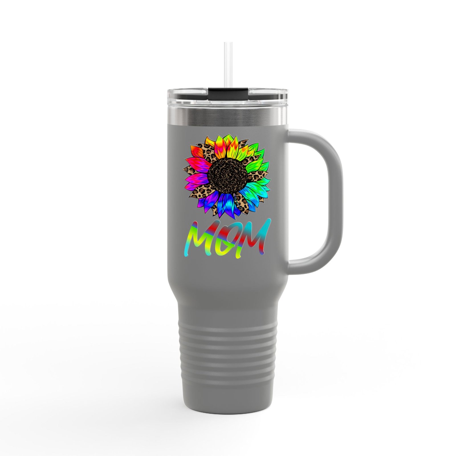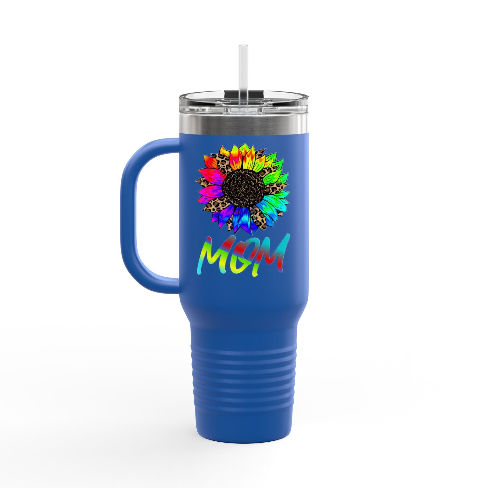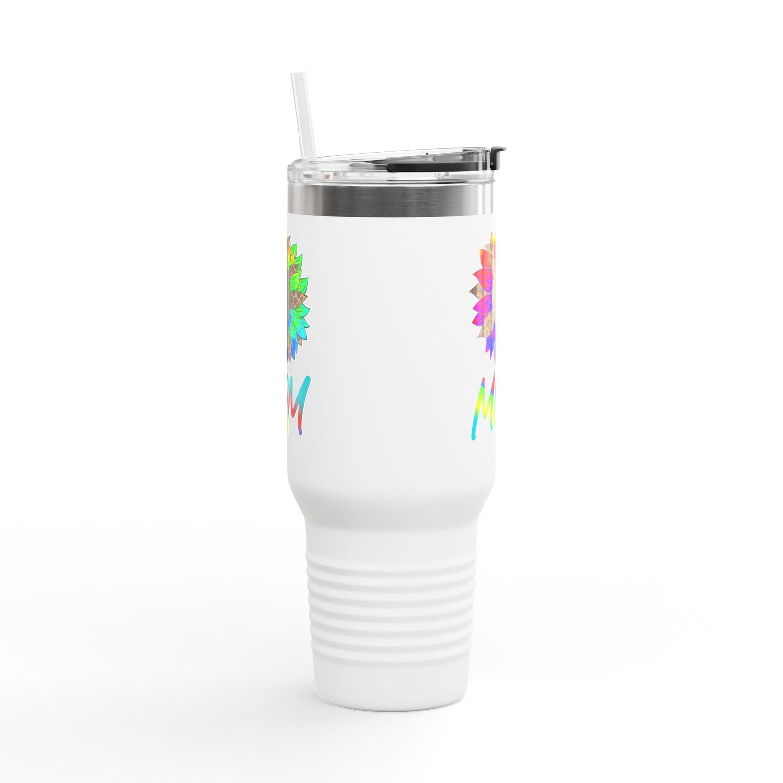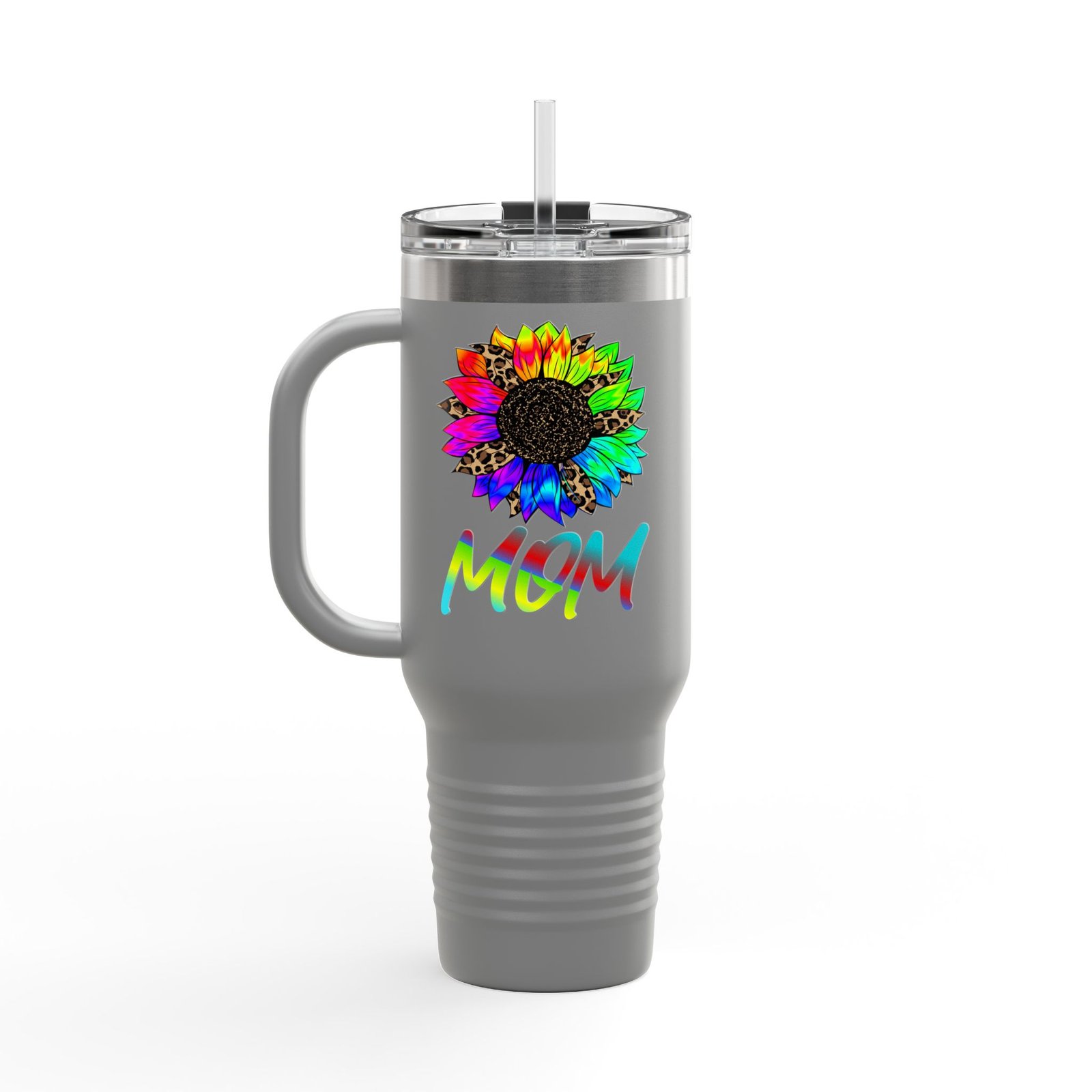 Tumbler, Tie Dye Flower Mother’s Day Gift, Bright Colored Insulated Travel Mug, 40oz. Alternative: Floral Mug, Large Cup, Gift for Mom,