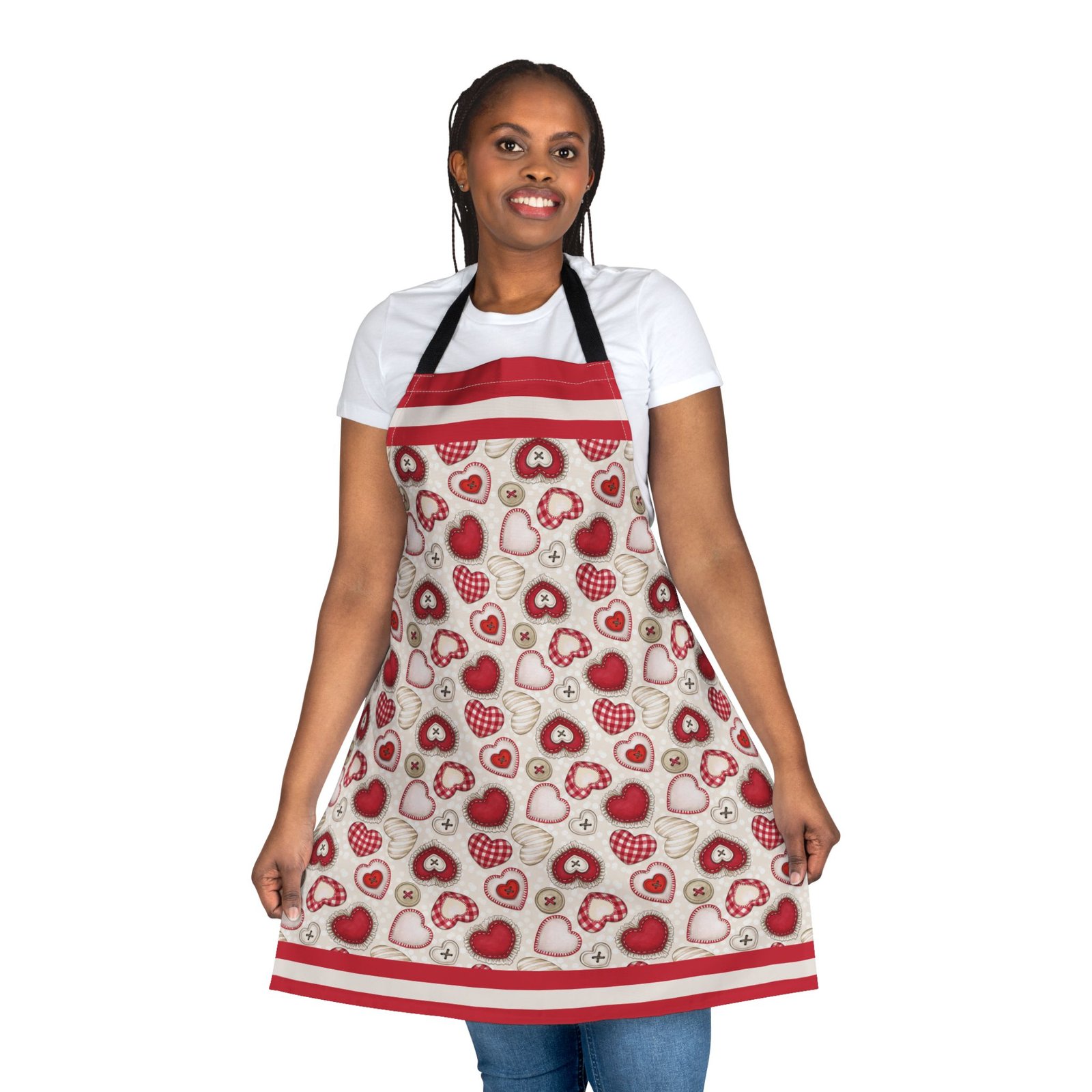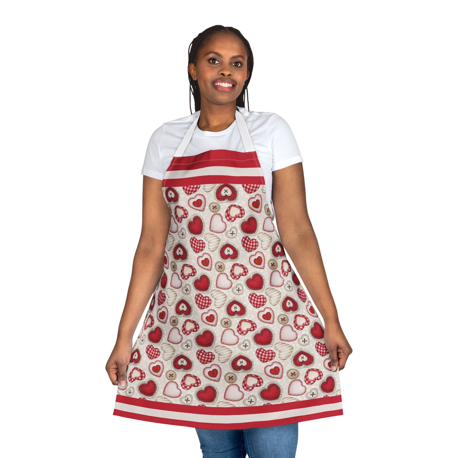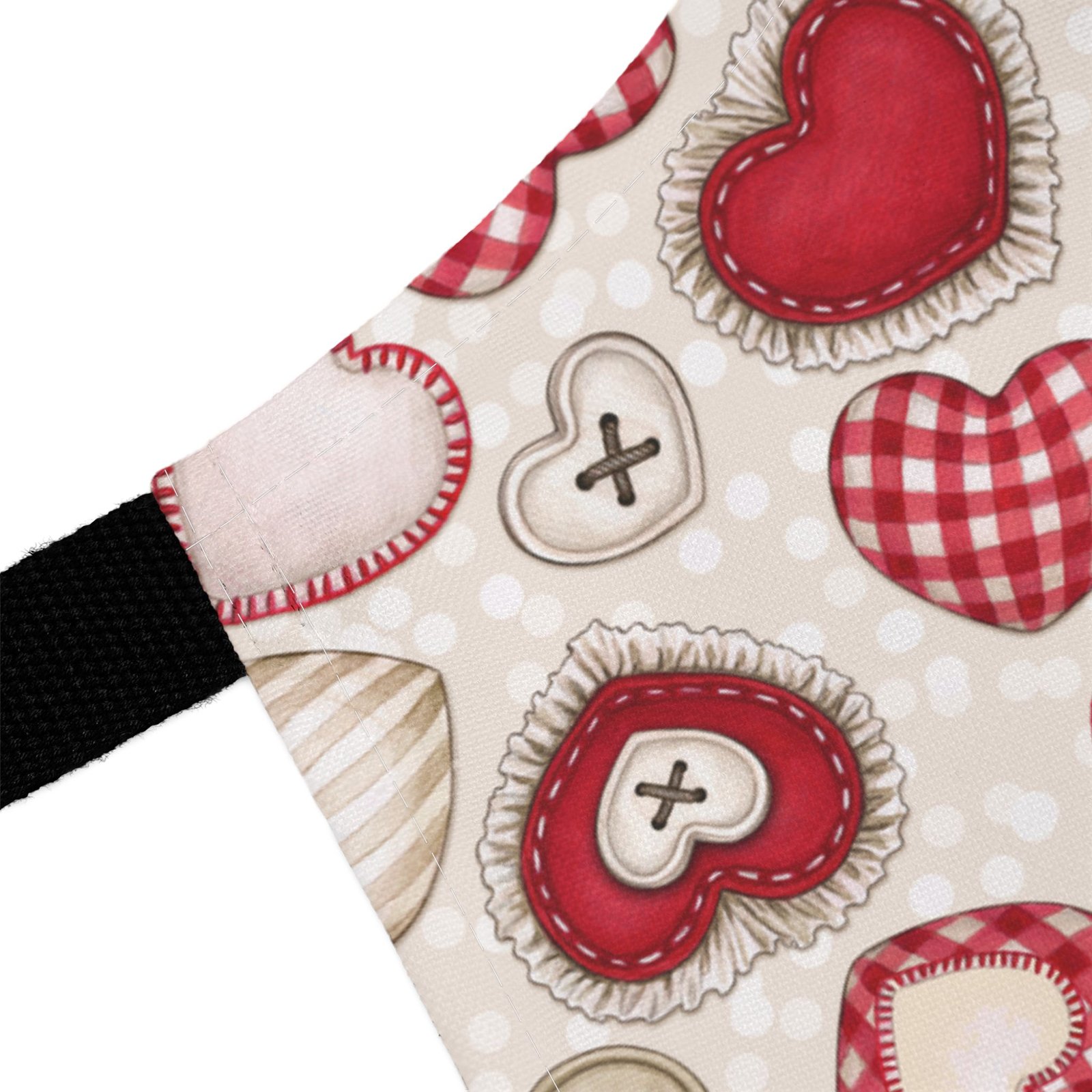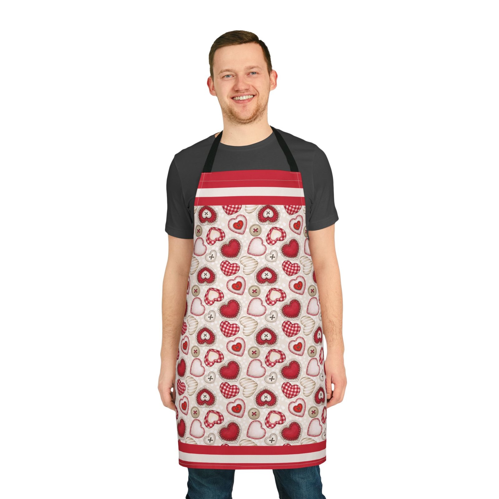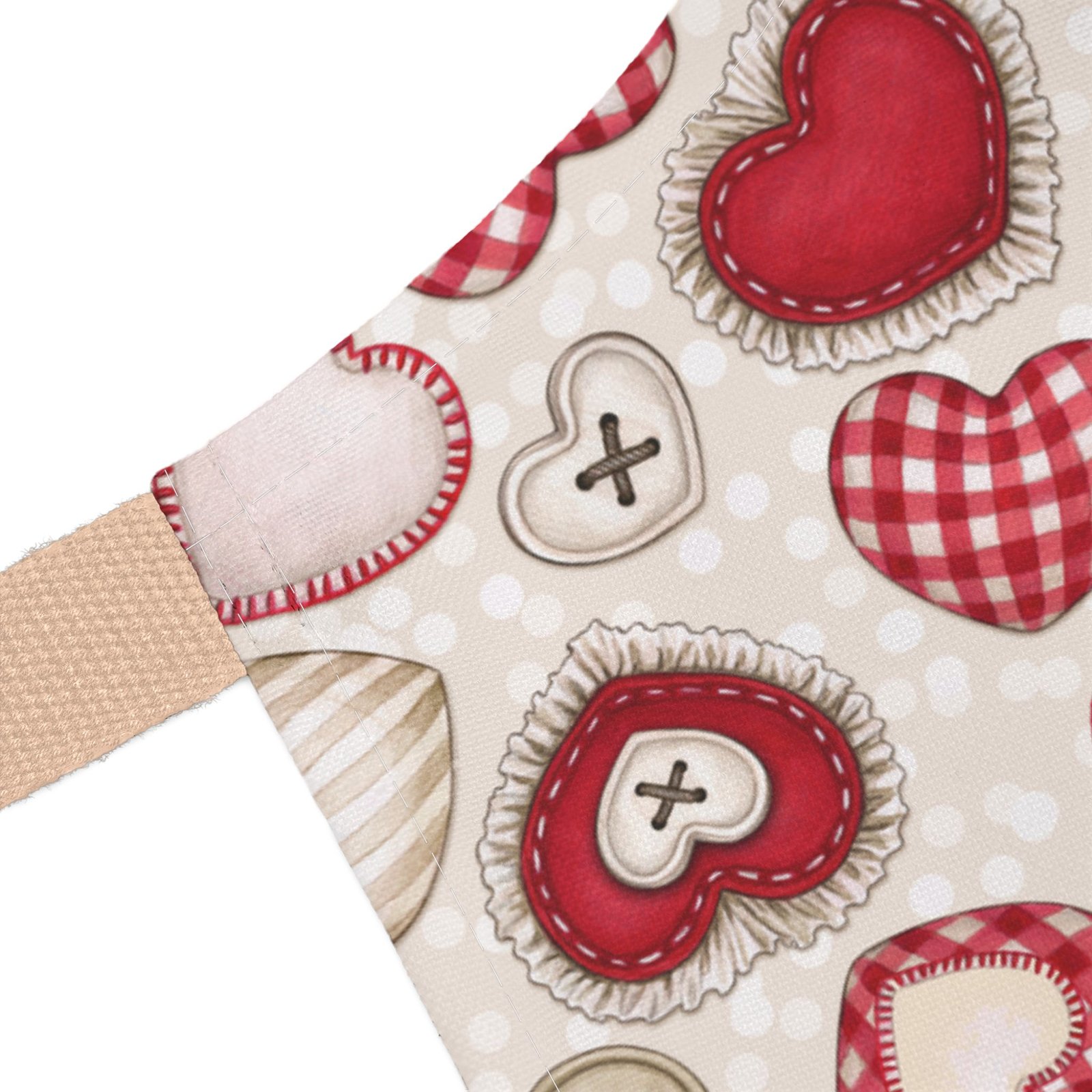 This apron brings a soft, handcrafted romance to the kitchen. Heart motifs in rich reds and blushing pinks sit alongside tiny “button” and stitched details, like a pocketable love note pinned to your waist. It feels gentle against skin and stays vibrant wash after wash, so you can knead dough for Valentine’s cookies, paint a card for someone special, or slow-cook a cozy dinner while the straps add a subtle pop of personality. The tie-back closure lets you adjust the fit quickly between tasks. It’s the kind of apron that makes everyday rituals—baking, crafting, or plating—feel a little more considered and quietly joyful.